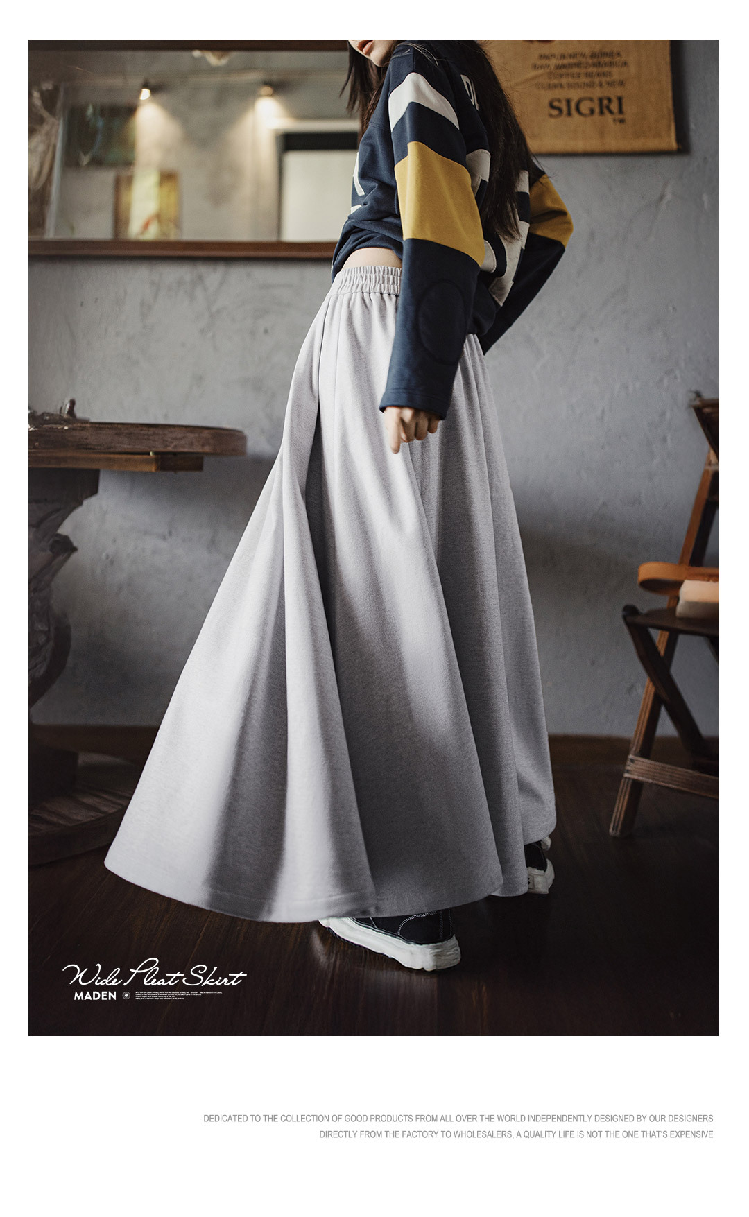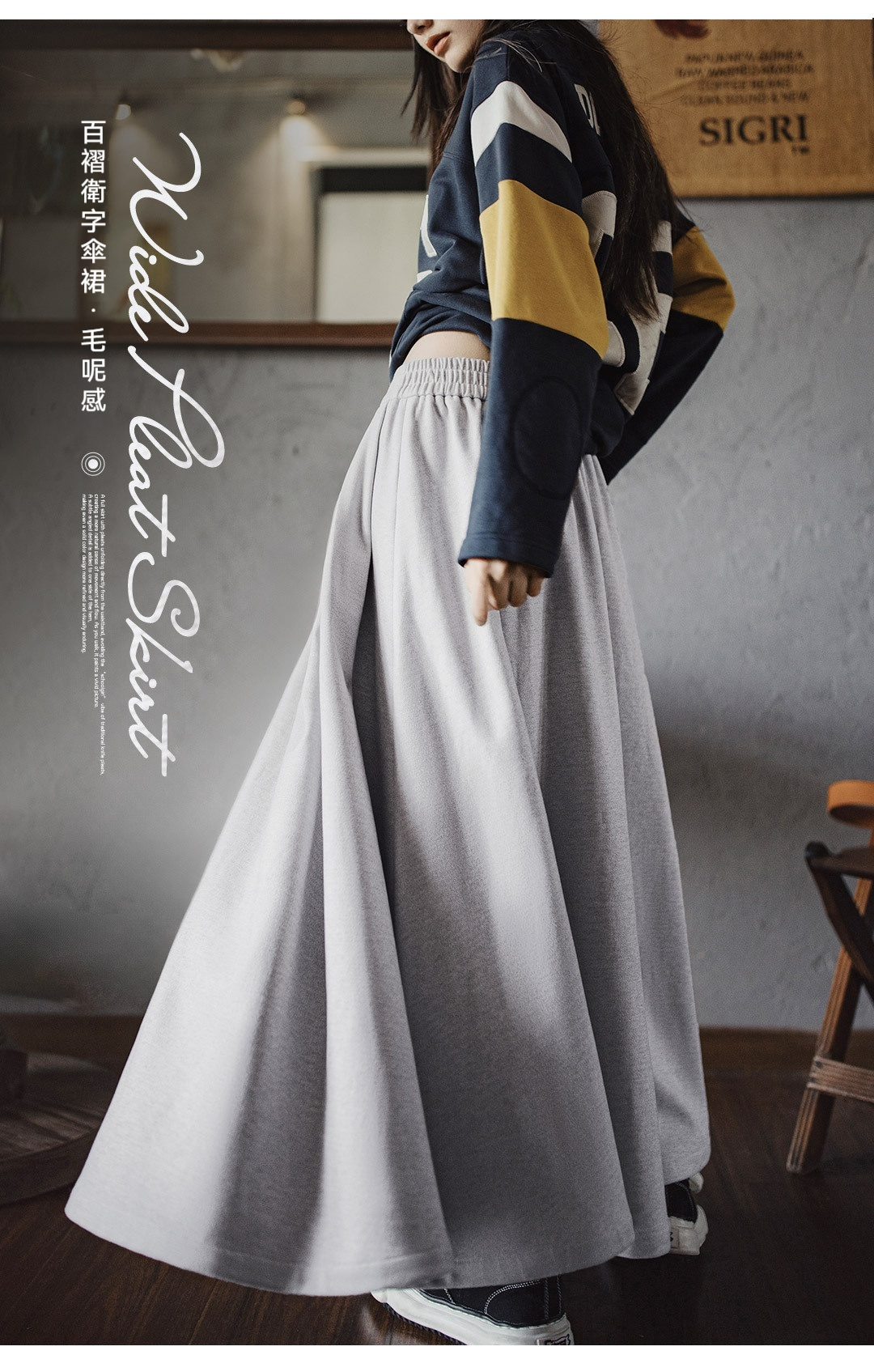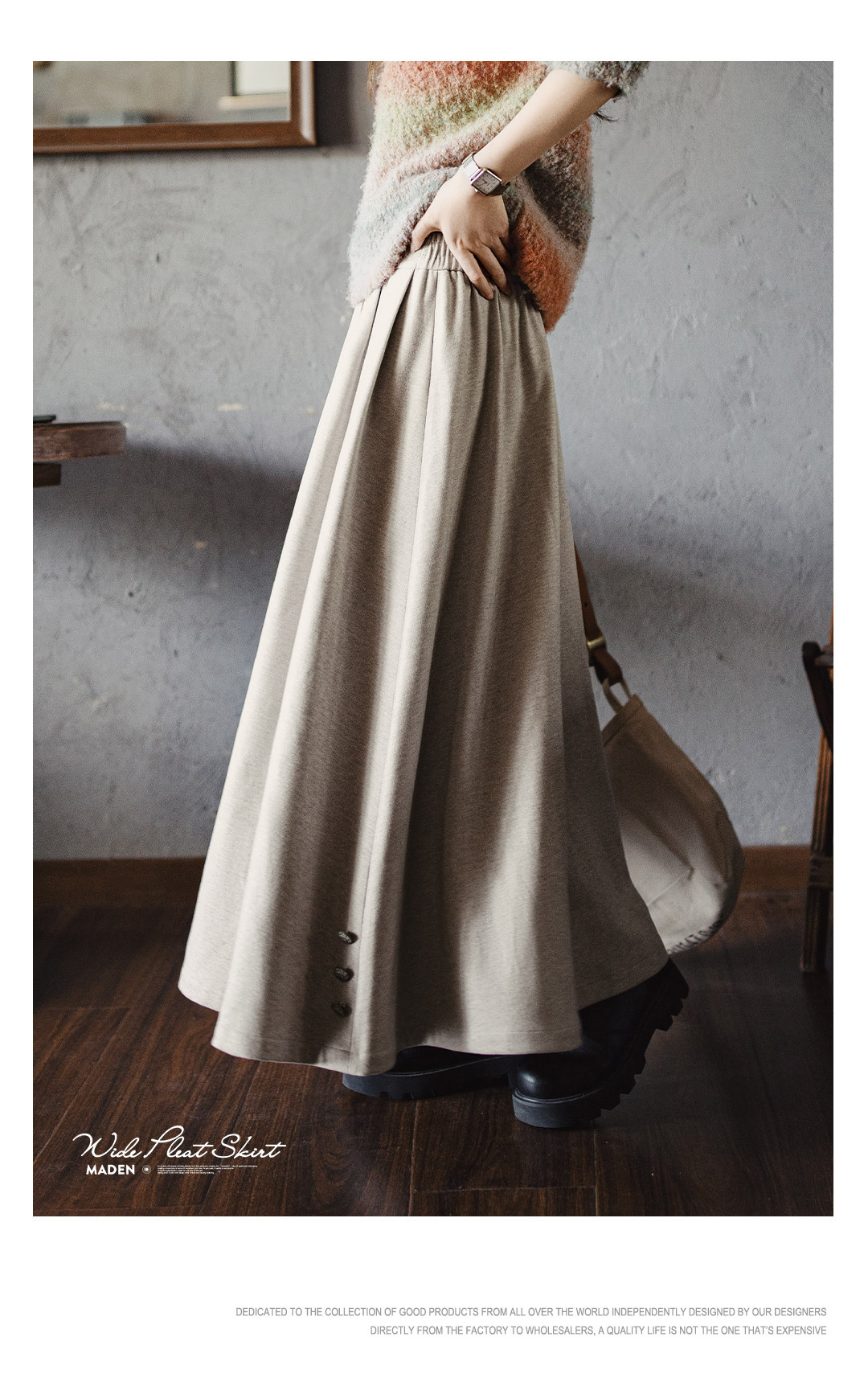 馬登女裝 毛呢大擺半身長裙針織鬆緊腰垂墜感百褶A字傘裙秋冬