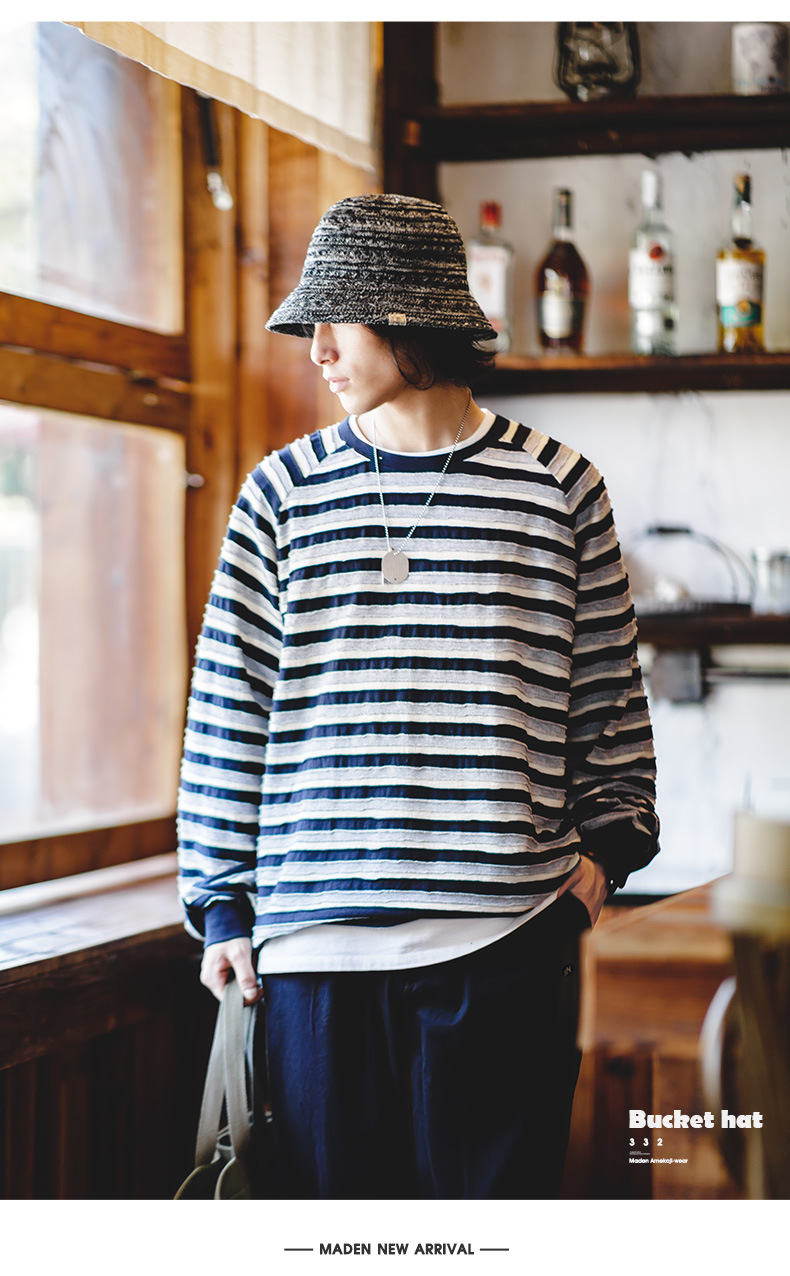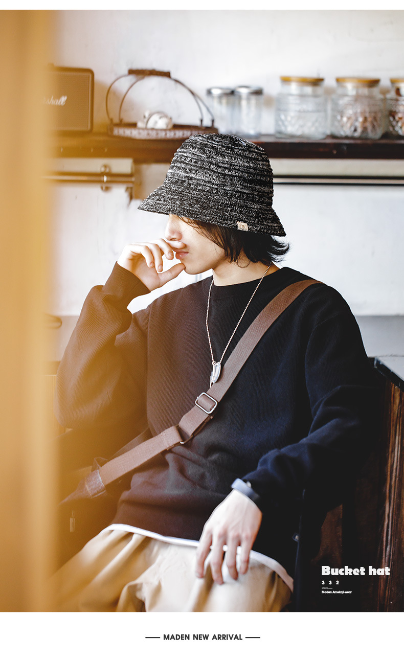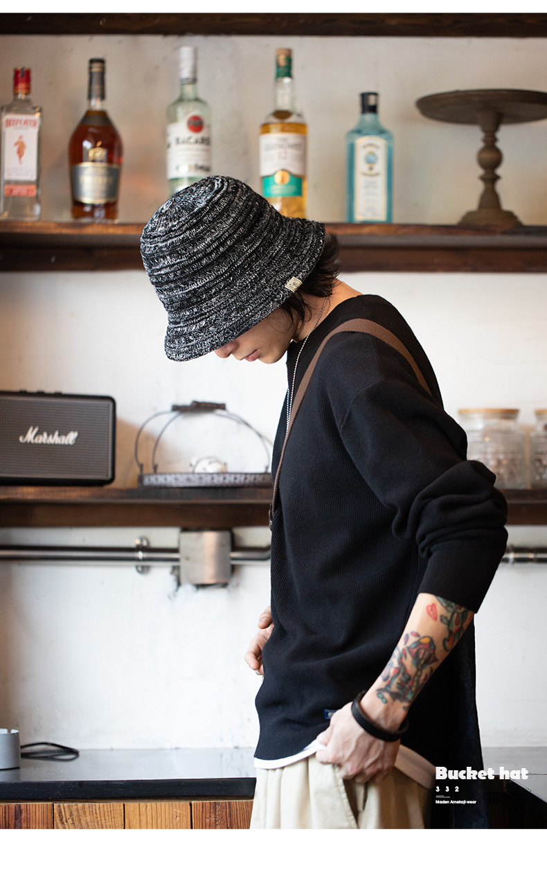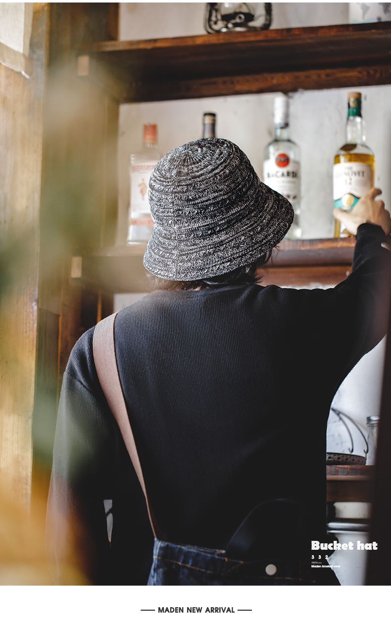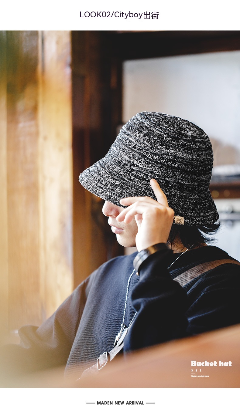 馬登工裝 山系戶外針織透氣漁夫帽防曬遮陽圓頂帽子男女春夏