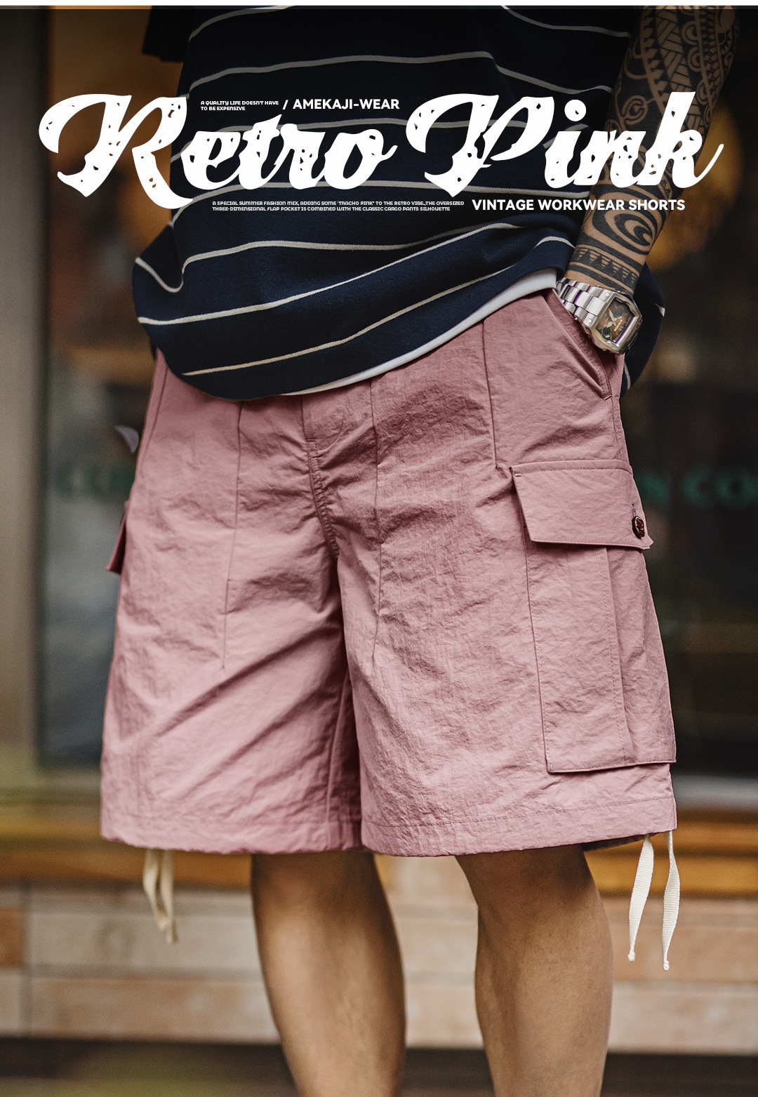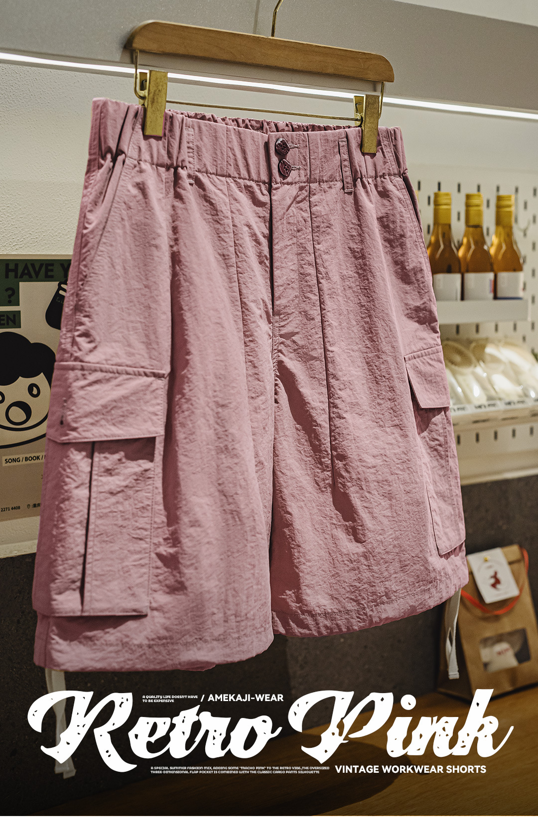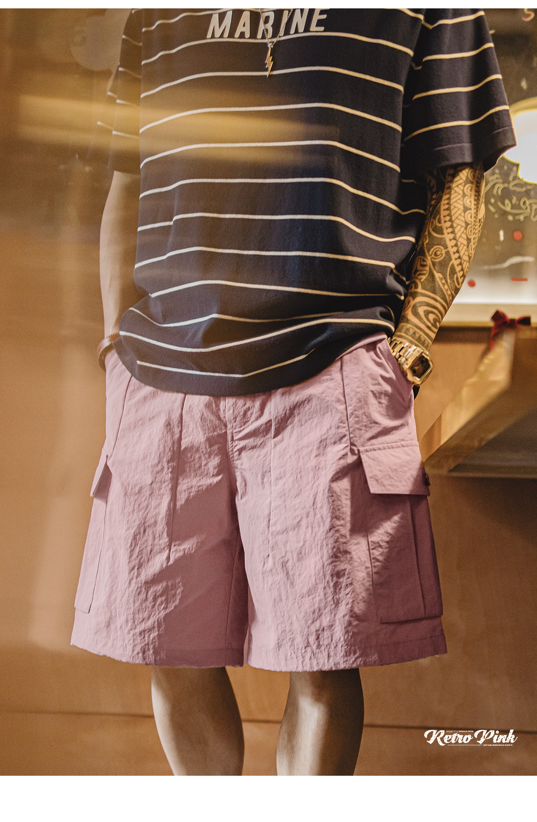 馬登工裝 山系速幹短褲美式大口袋梭織寬鬆直筒粉色薄款短褲男夏季