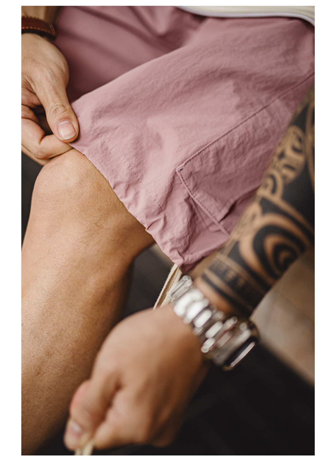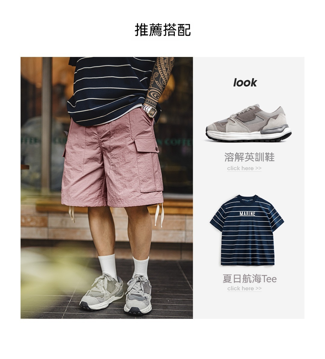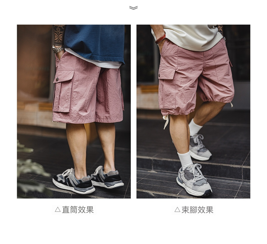 馬登工裝 山系速幹短褲美式大口袋梭織寬鬆直筒粉色薄款短褲男夏季