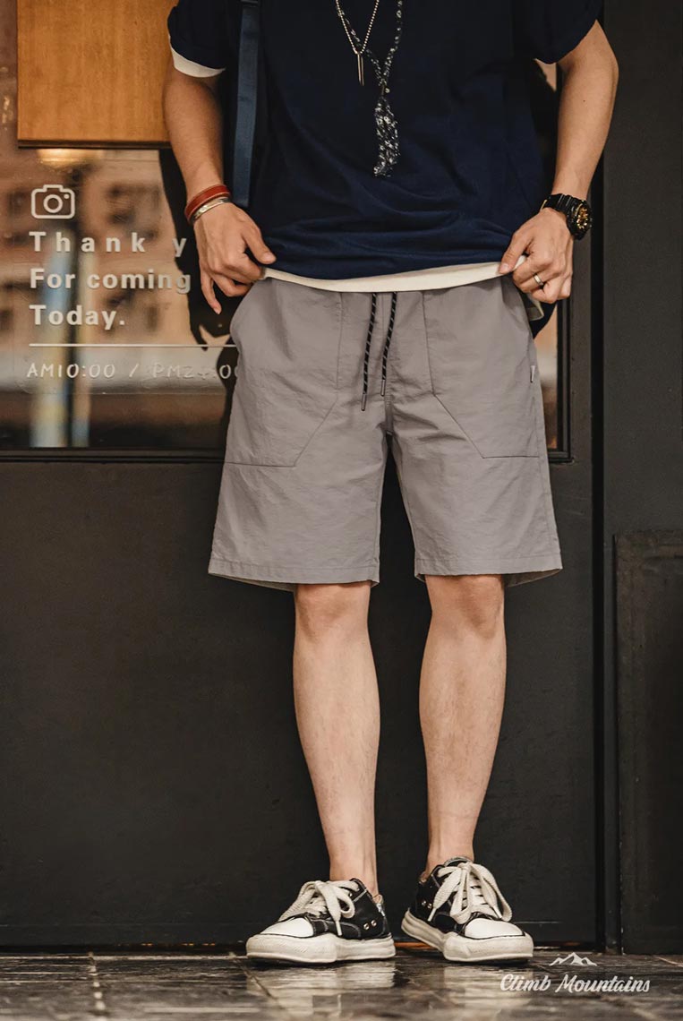 馬登工裝 戶外休閑梭織短褲大口袋褶皺寬松直筒抽繩尼龍五分褲