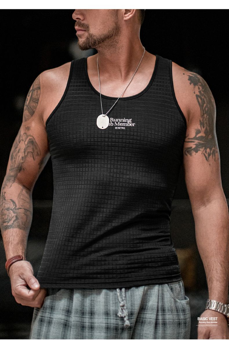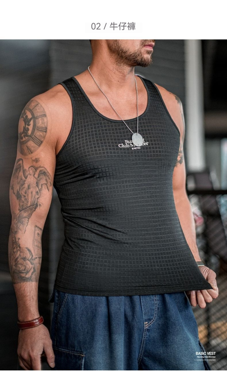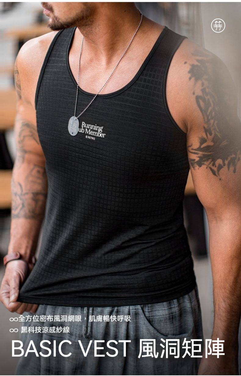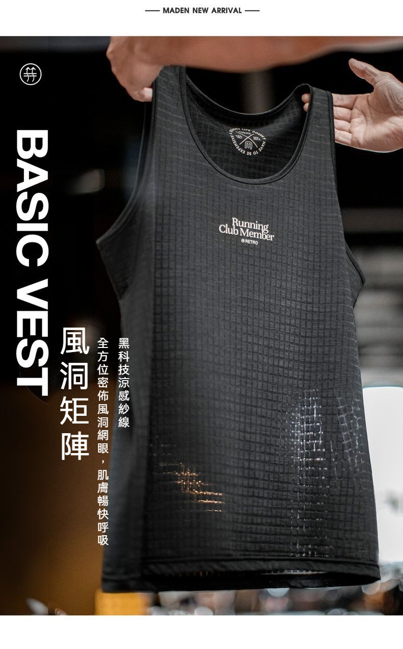 馬登工裝 美式復古黑色風洞背心跑步運動透氣速幹凉感寬鬆汗衫男夏
