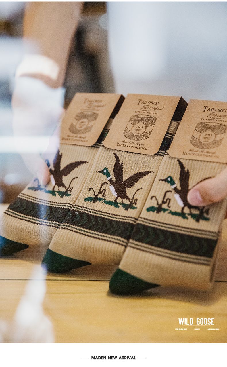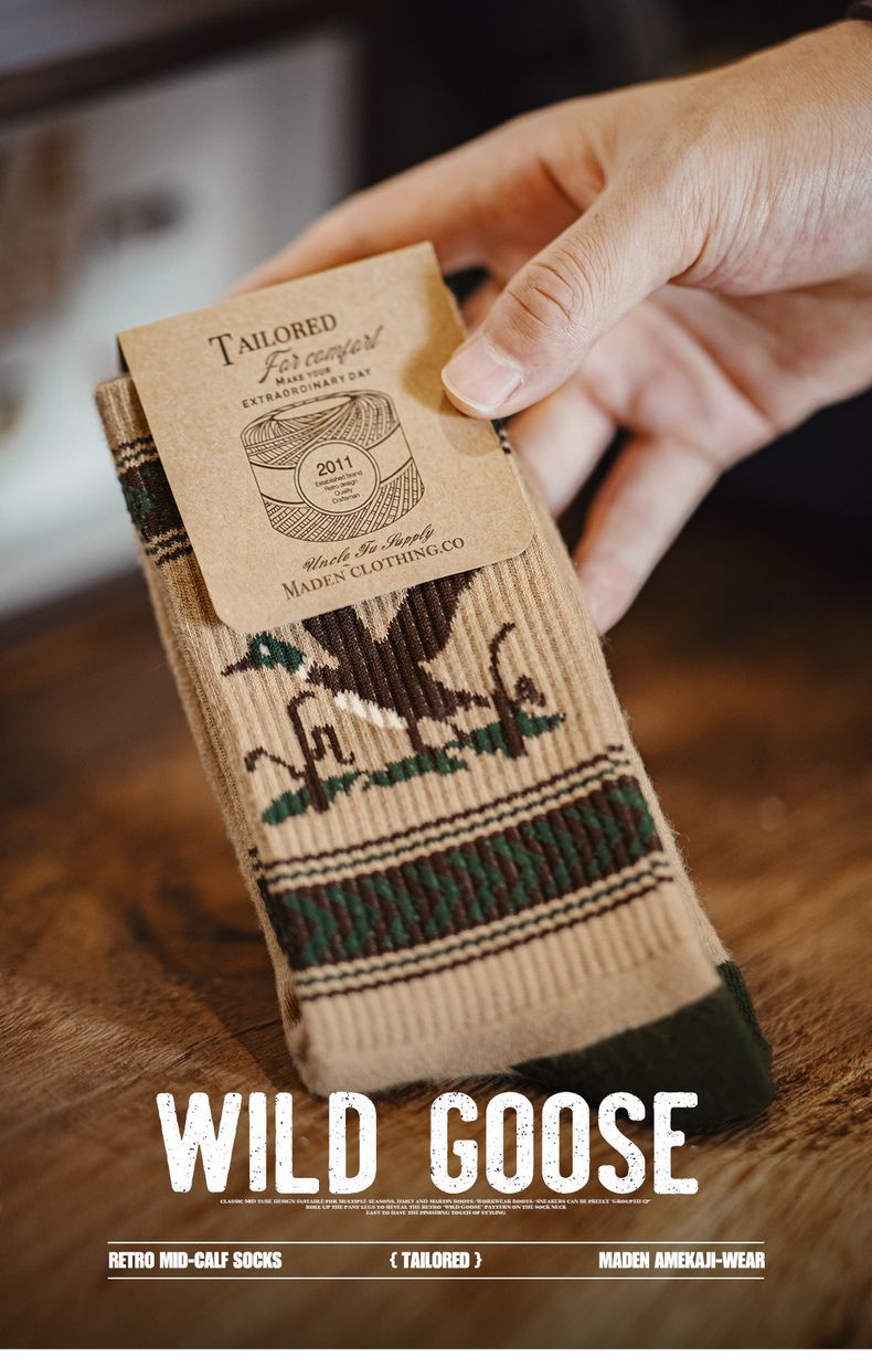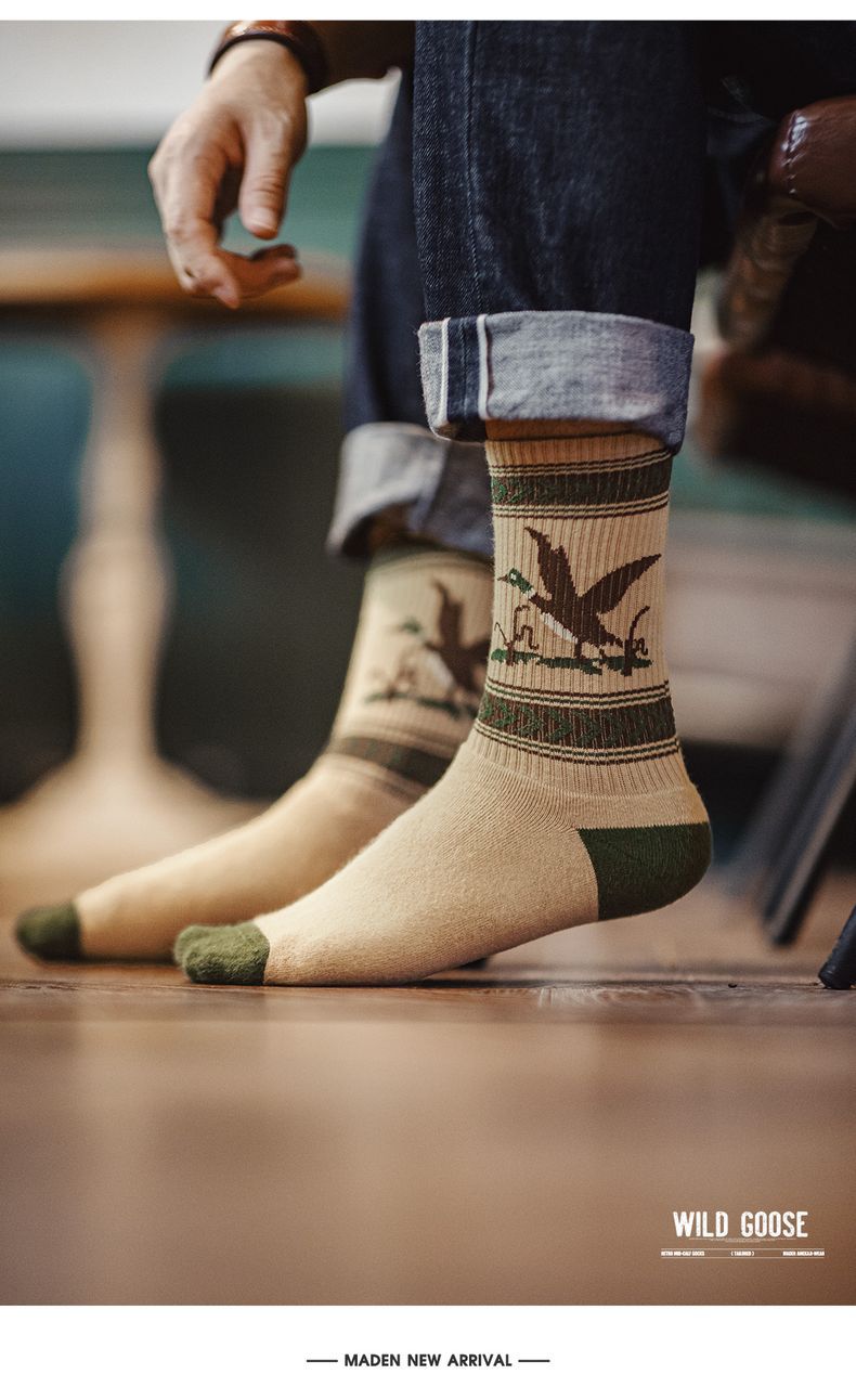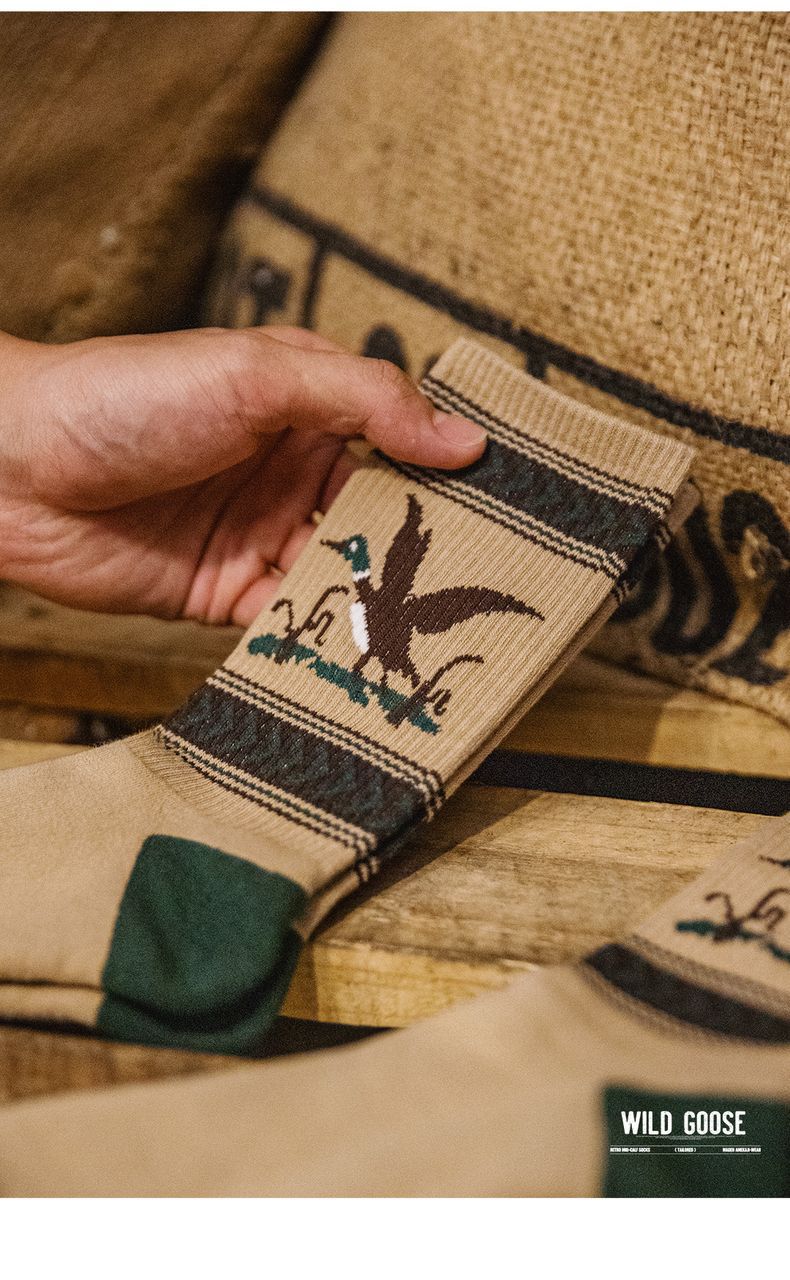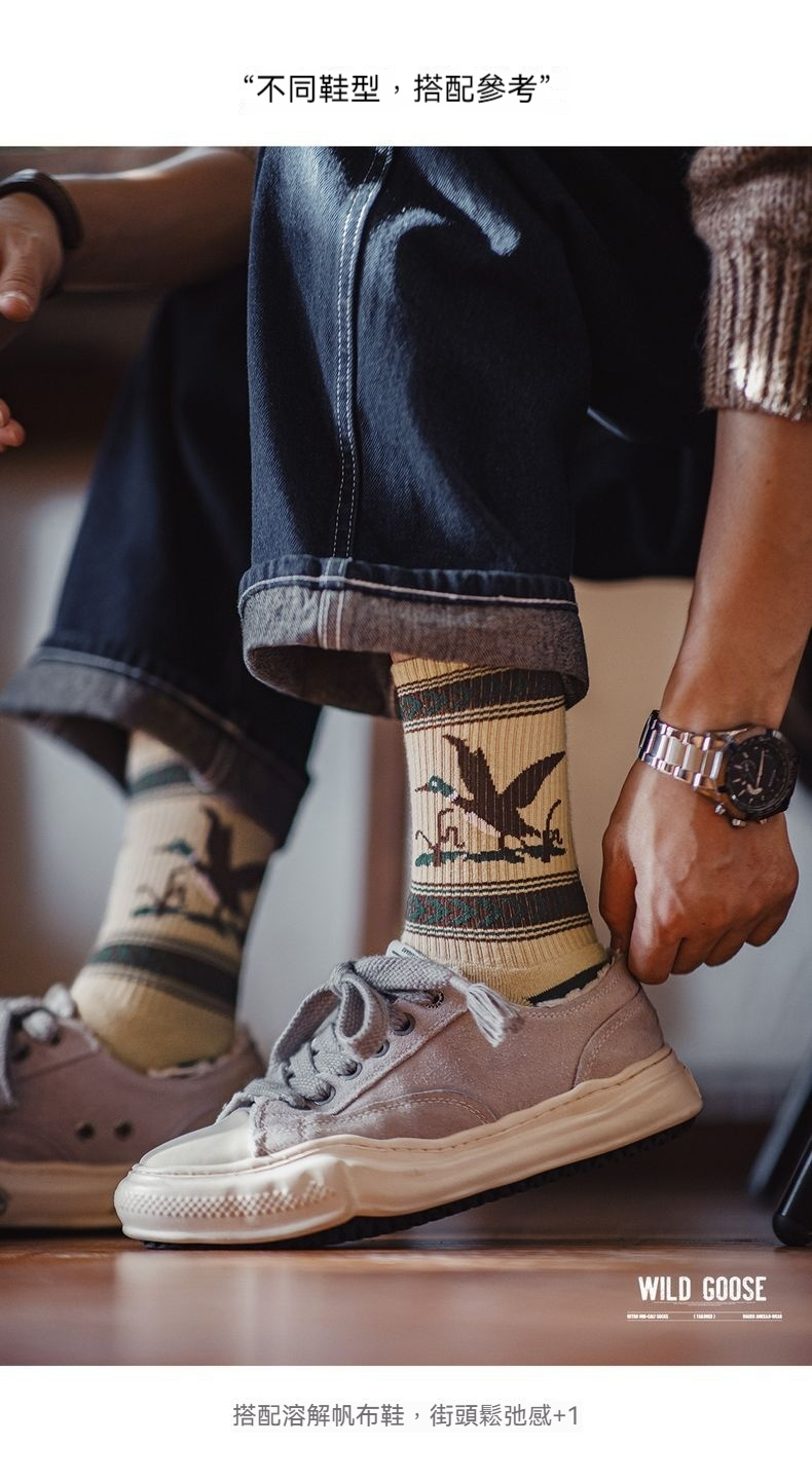 馬登工裝 復古卡通撞色針織中筒襪彈力毛圈棉襪透氣耐磨長襪子秋冬
