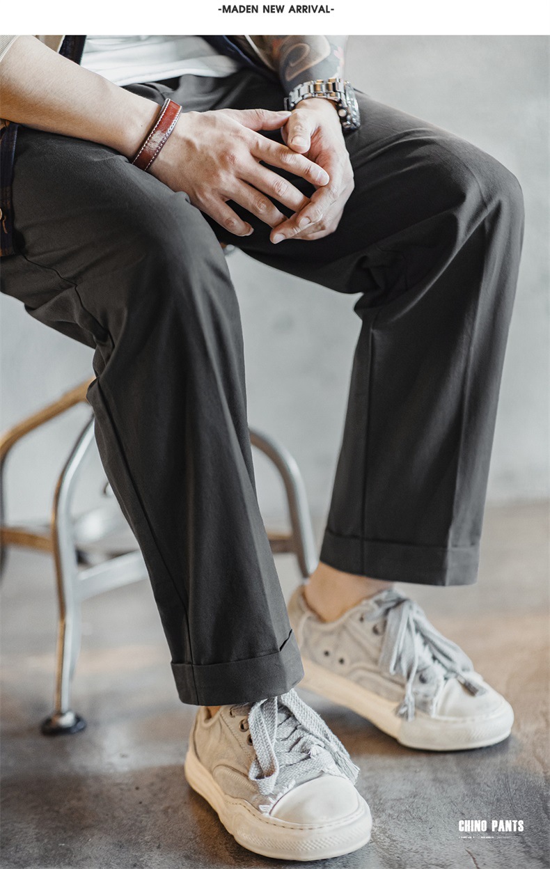 馬登工裝 美式復古Chino奇諾休閒褲Vintage錐形純棉直筒褲男秋