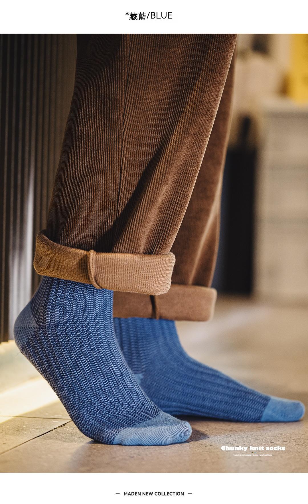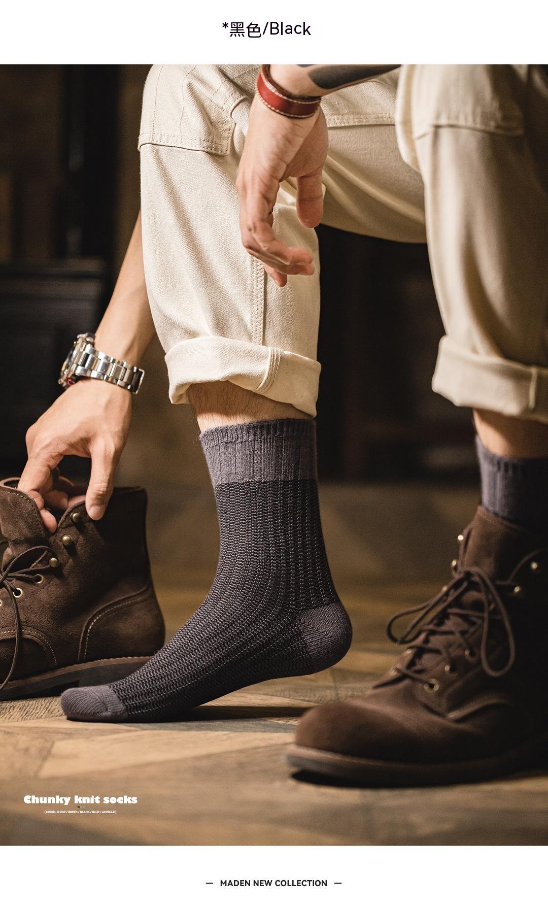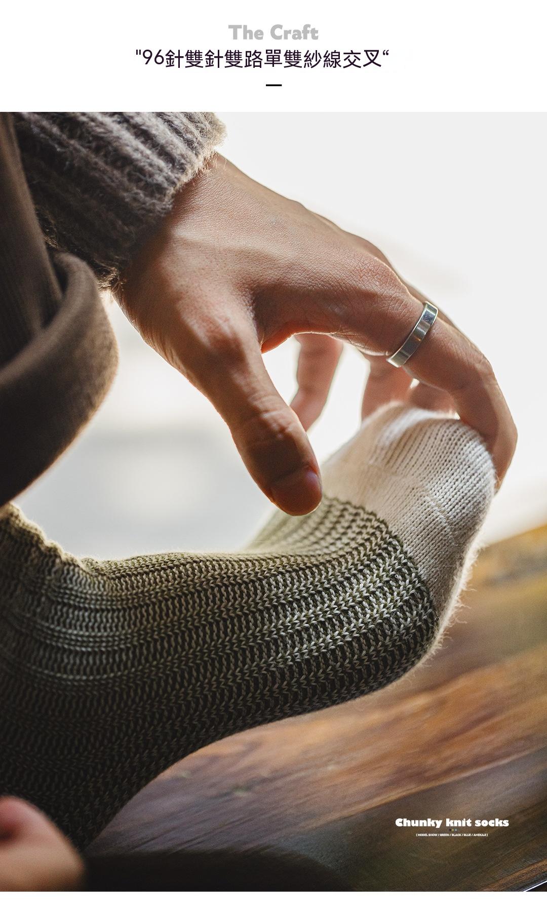 馬登工裝 美式復古粗針撞色針織襪子透氣保暖個性休閒長襪