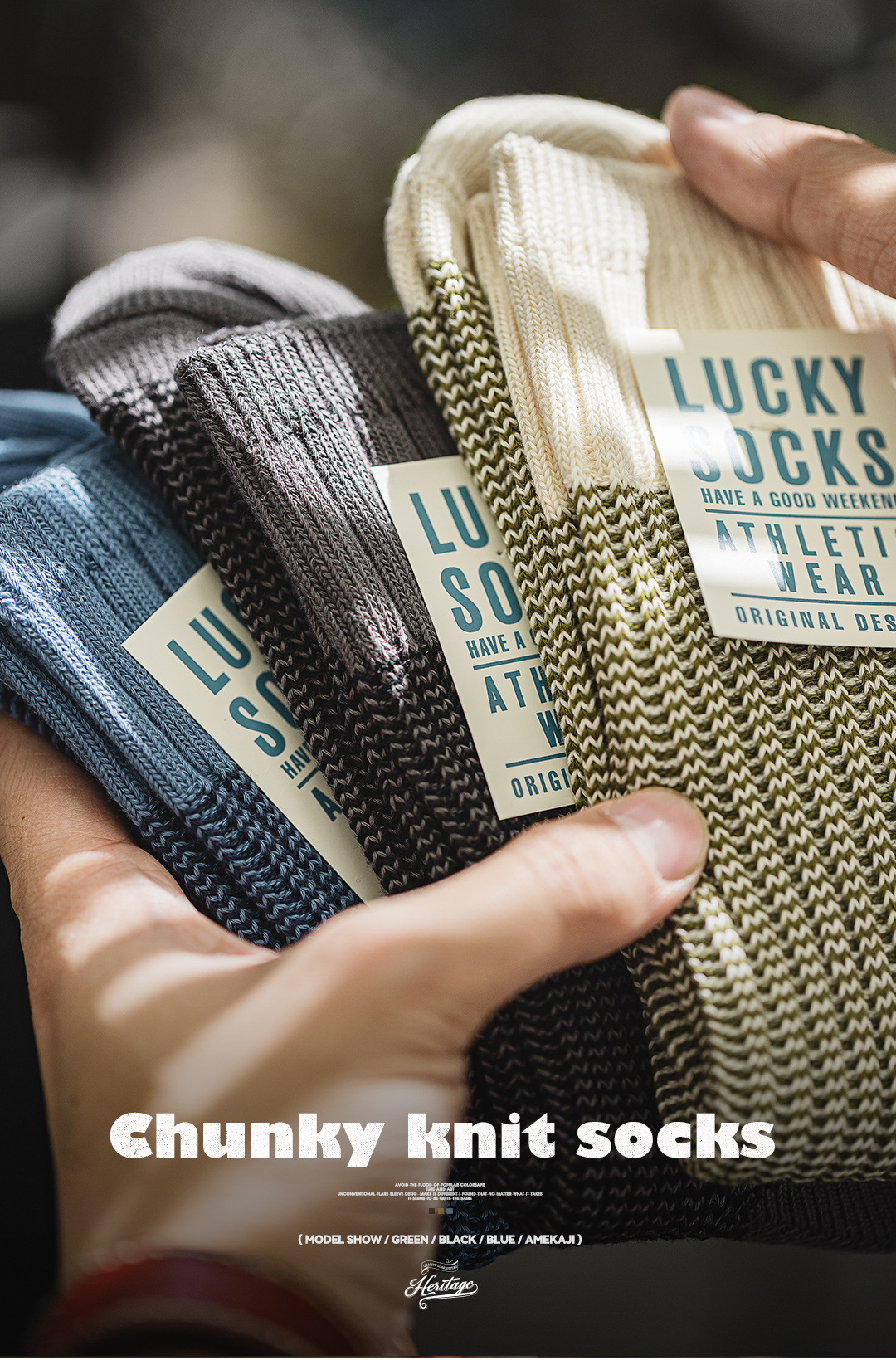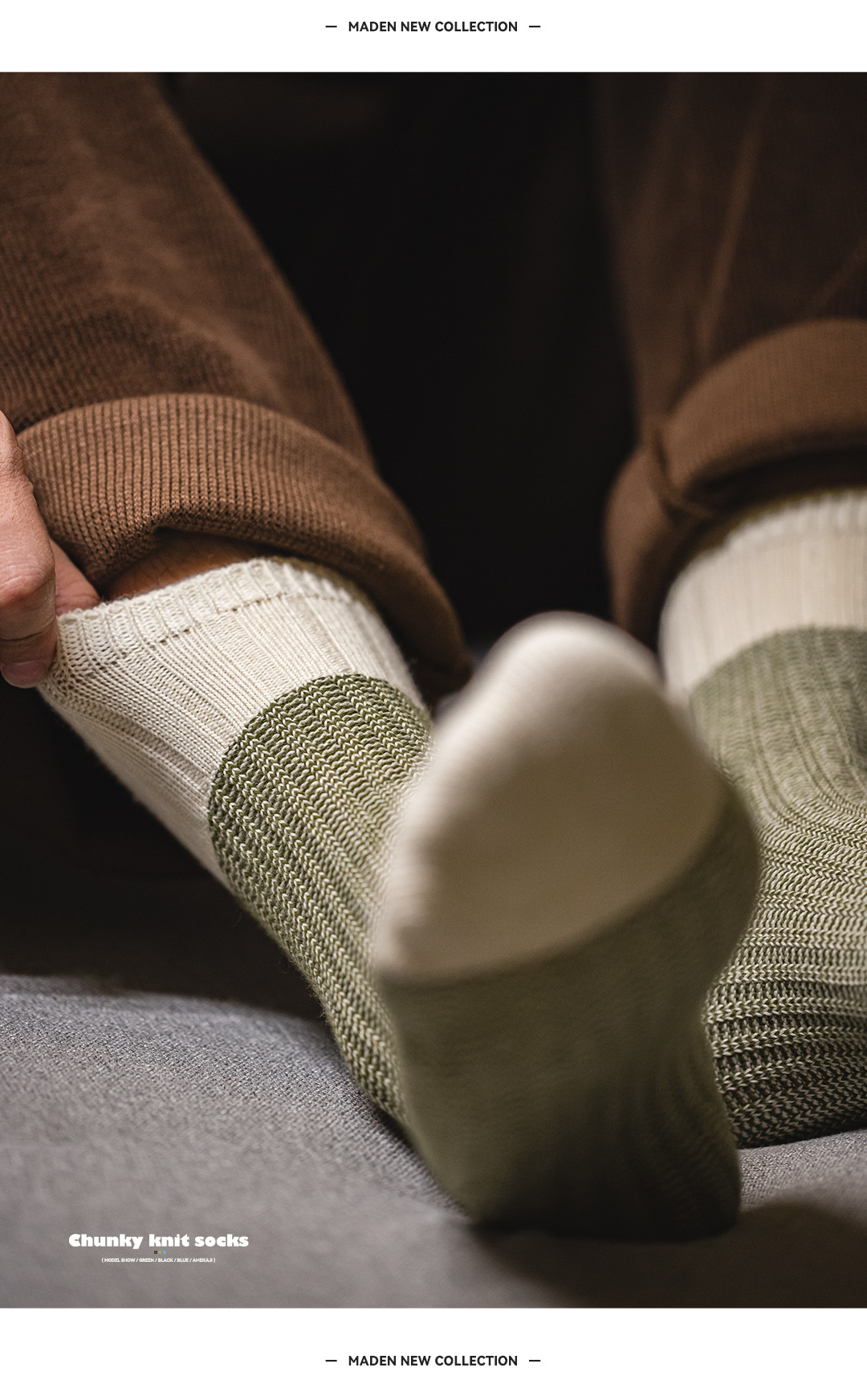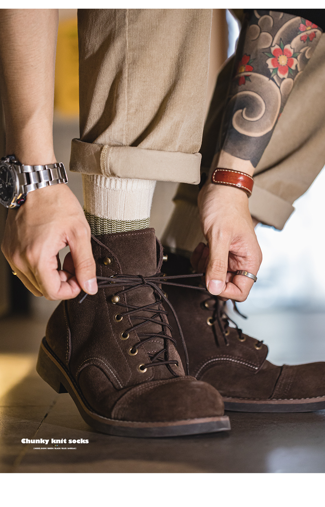 馬登工裝 美式復古粗針撞色針織襪子透氣保暖個性休閒長襪