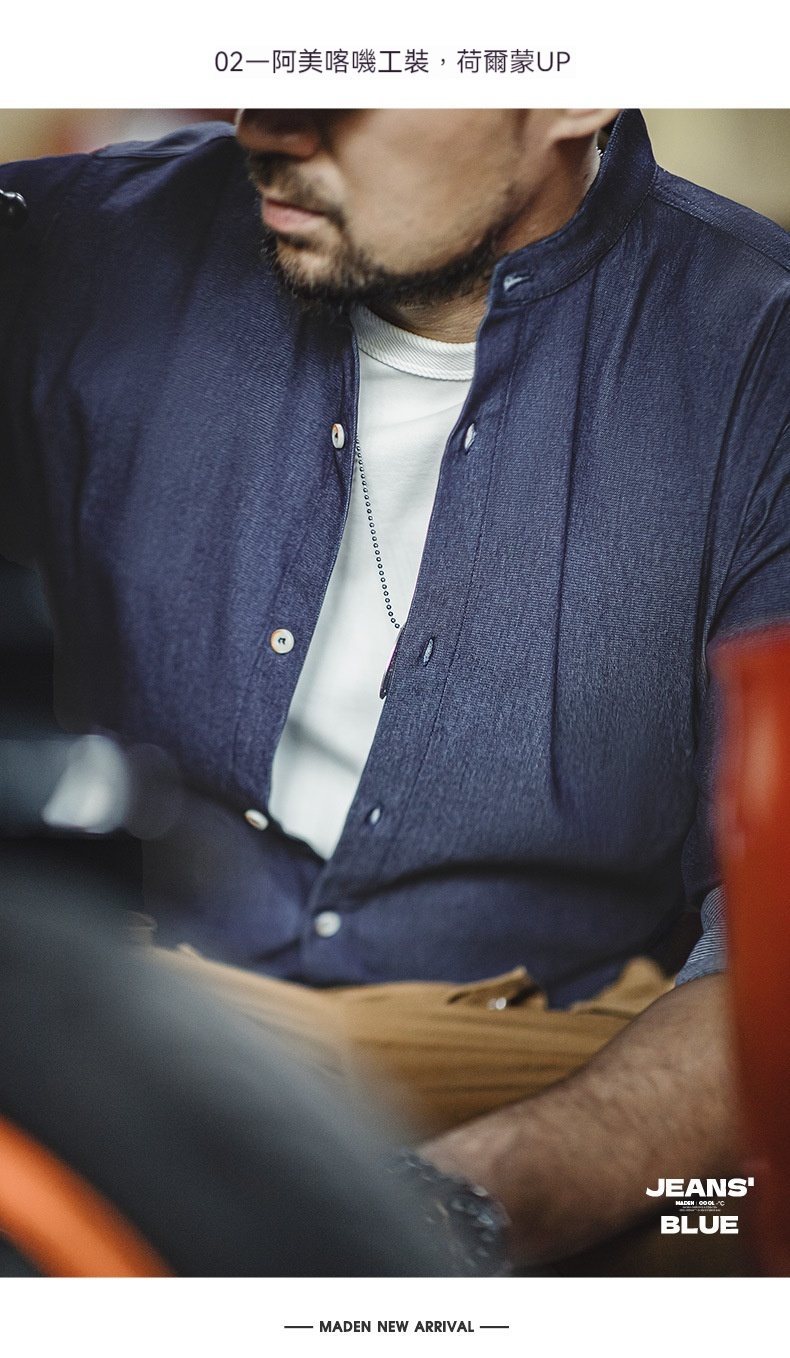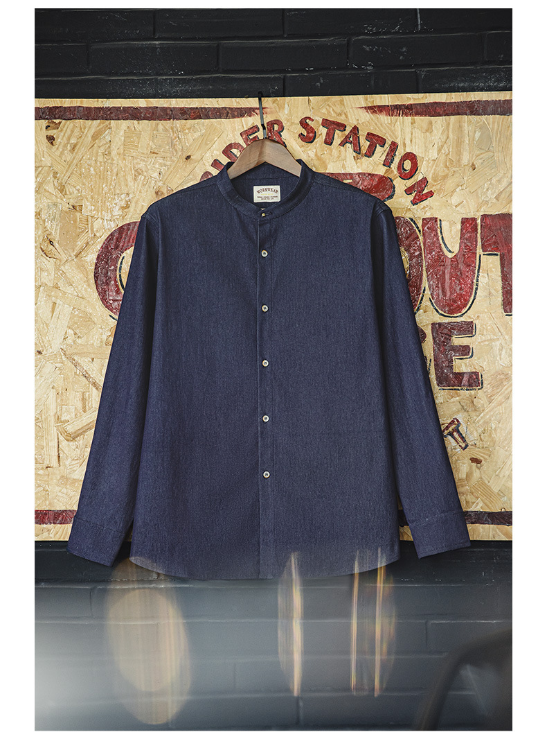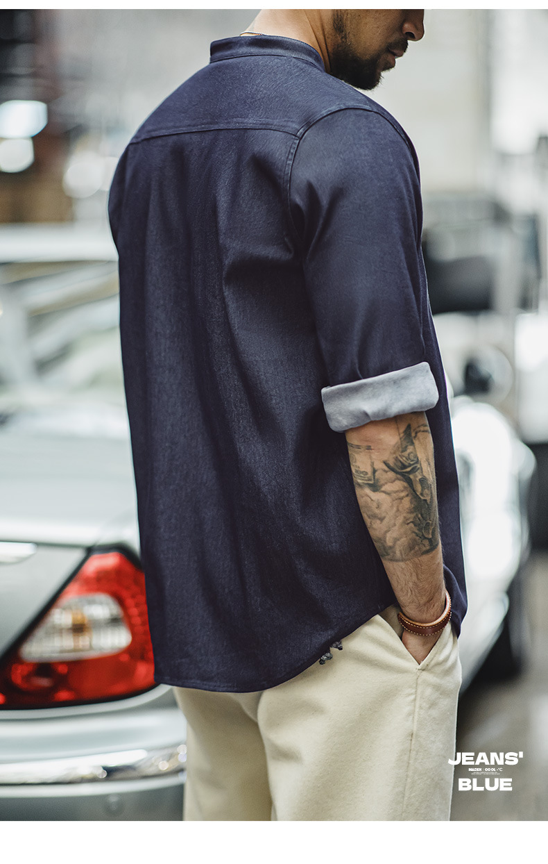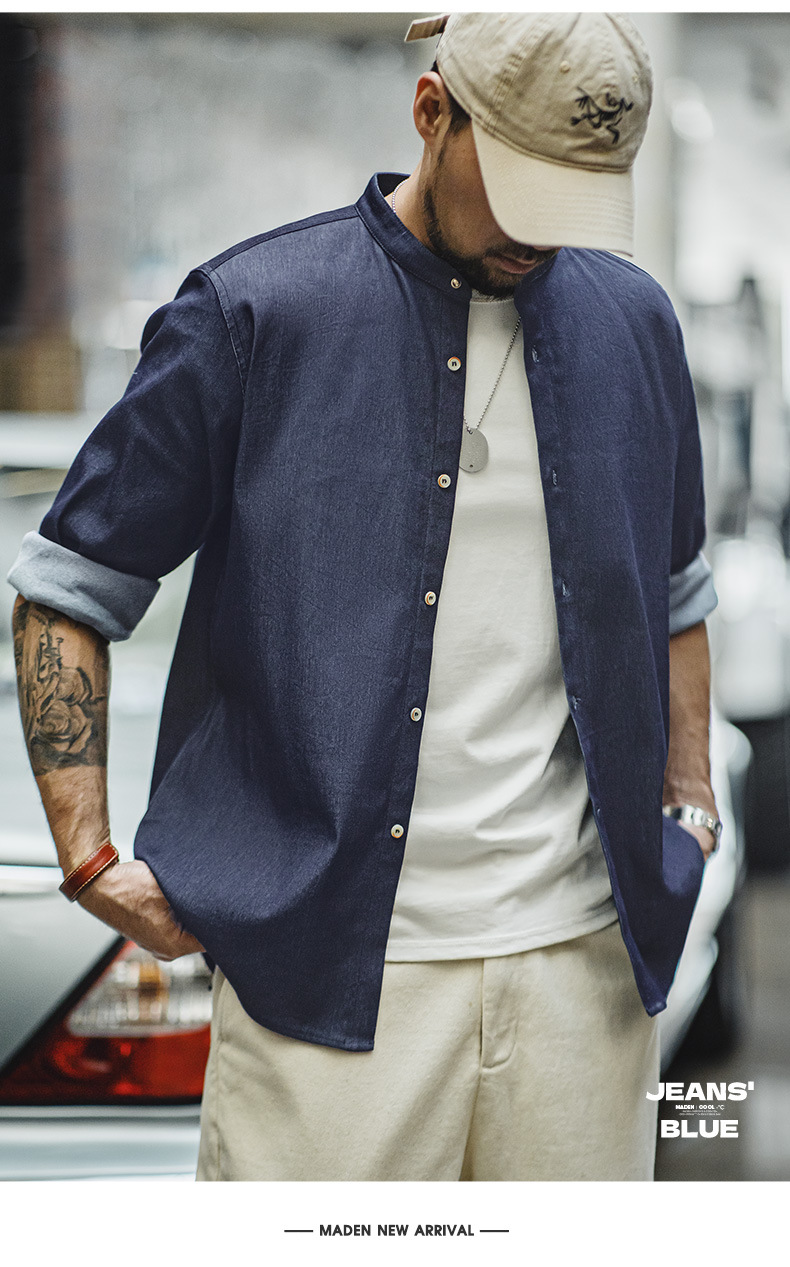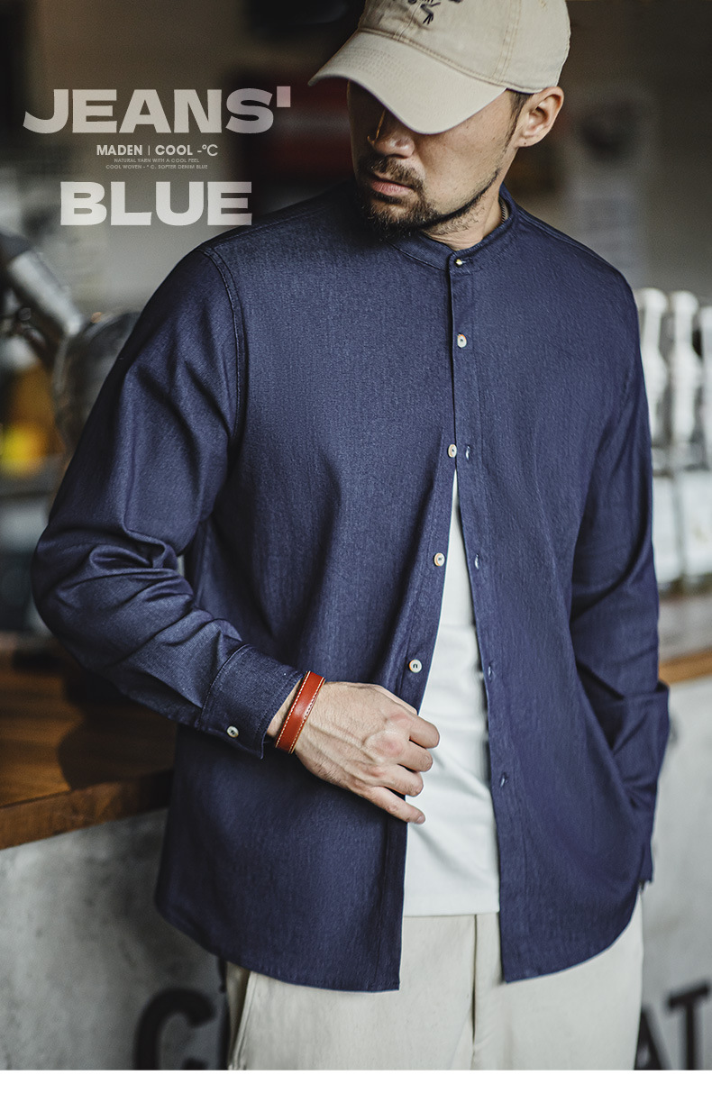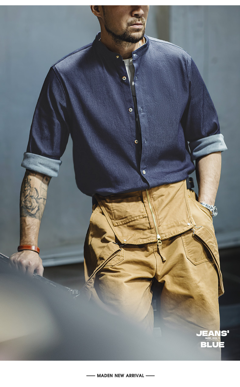 馬登工裝 美式復古凉感冰絲牛仔襯衫水洗休閒長袖襯衣外套男秋