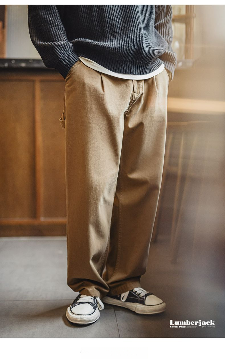 馬登工裝 美式復古做舊伐木工休閒褲寬鬆直筒純棉斜紋長褲子男