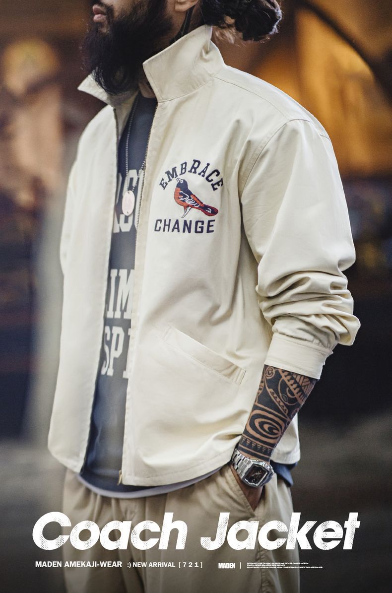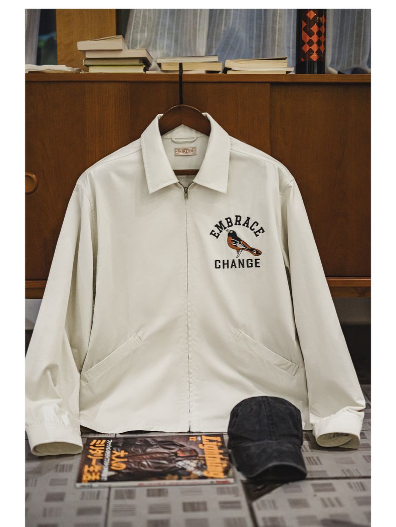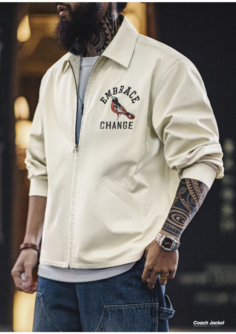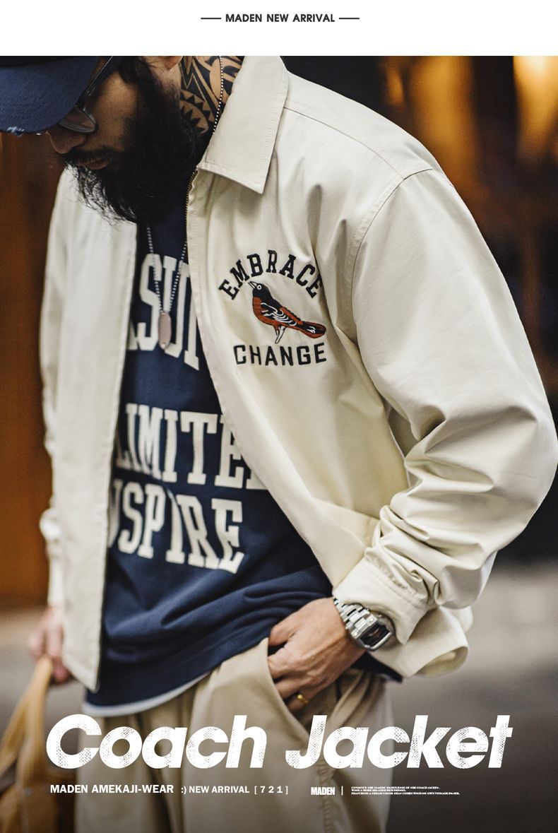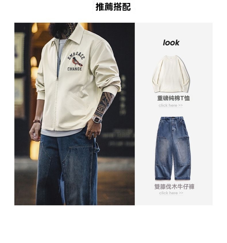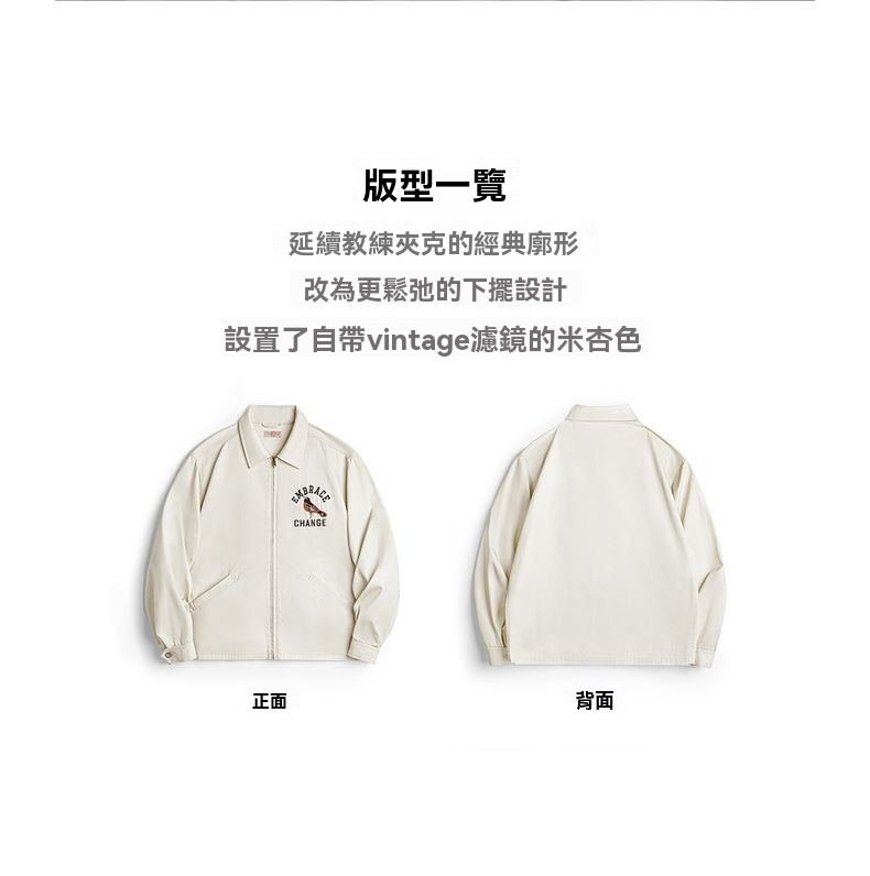 馬登工裝 美式復古刺繡教練夾克寬鬆翻領外套vintage廓形上衣男春