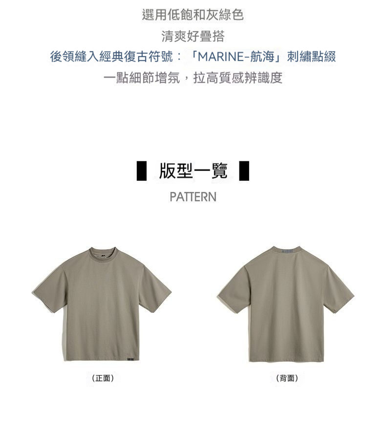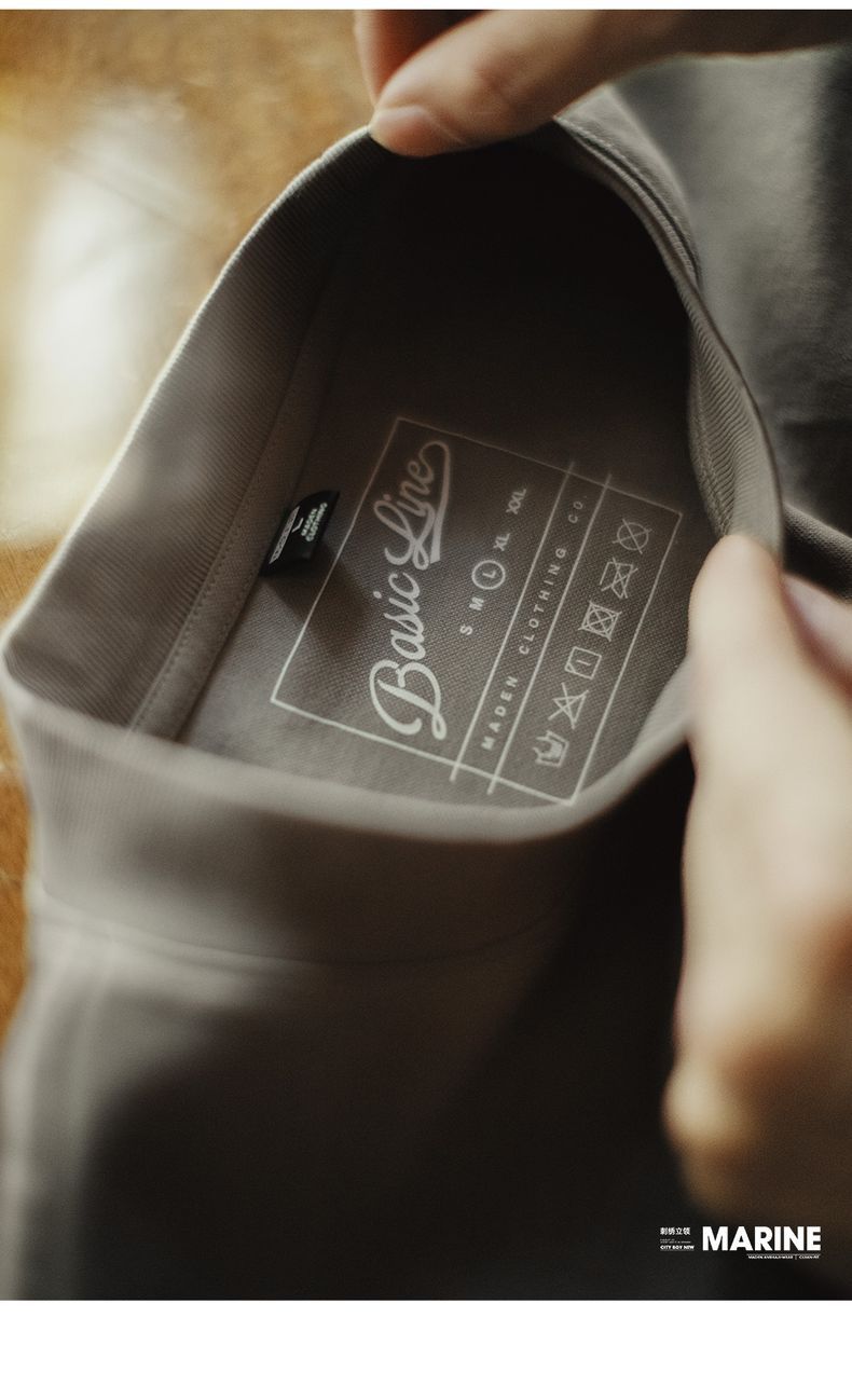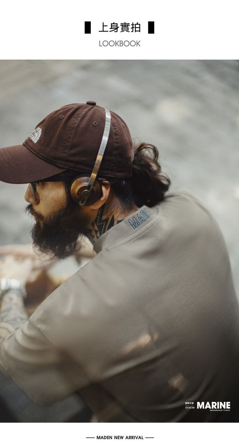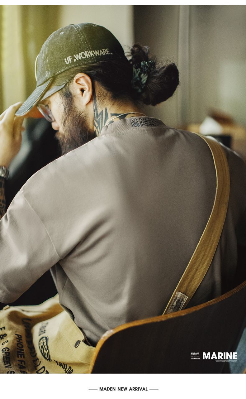 馬登工裝 美式半高小領口落肩短袖老錢風重磅寬鬆半袖T恤男春夏