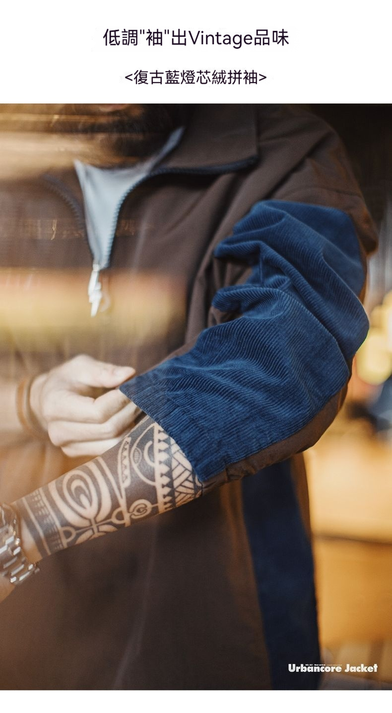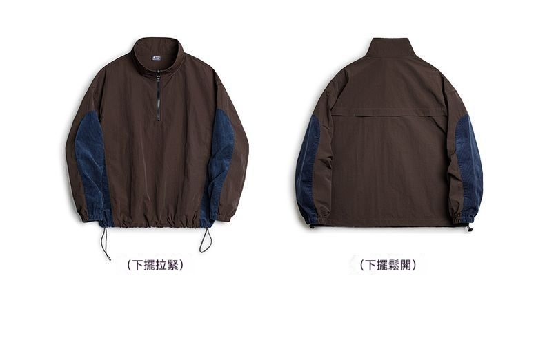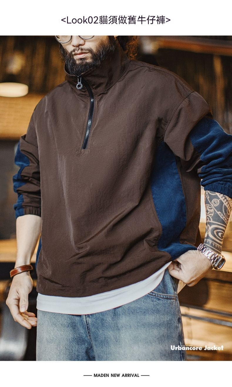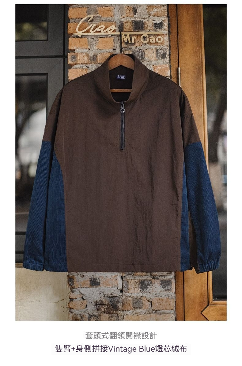 元素: 拼接燈芯絨袖子, 半拉鏈領
