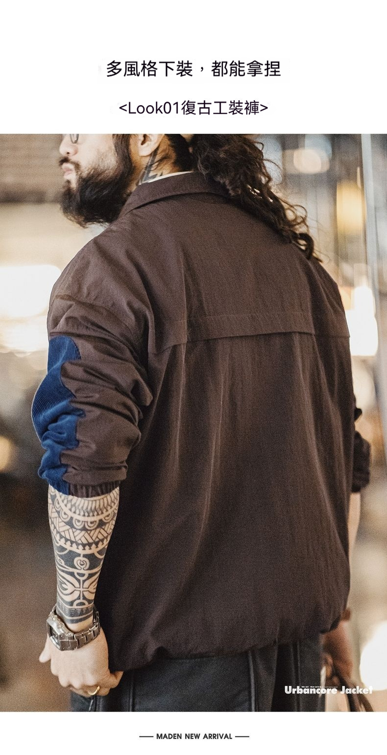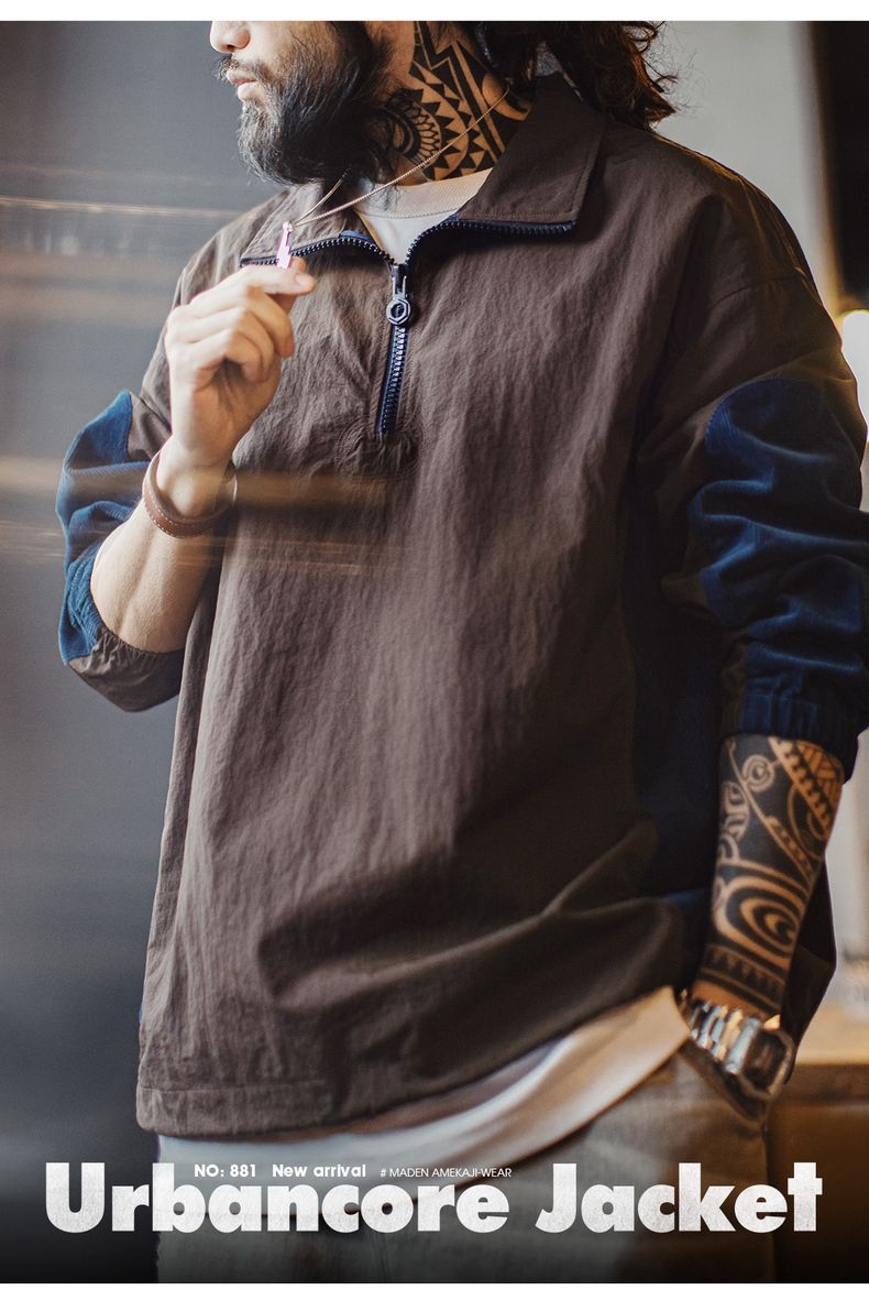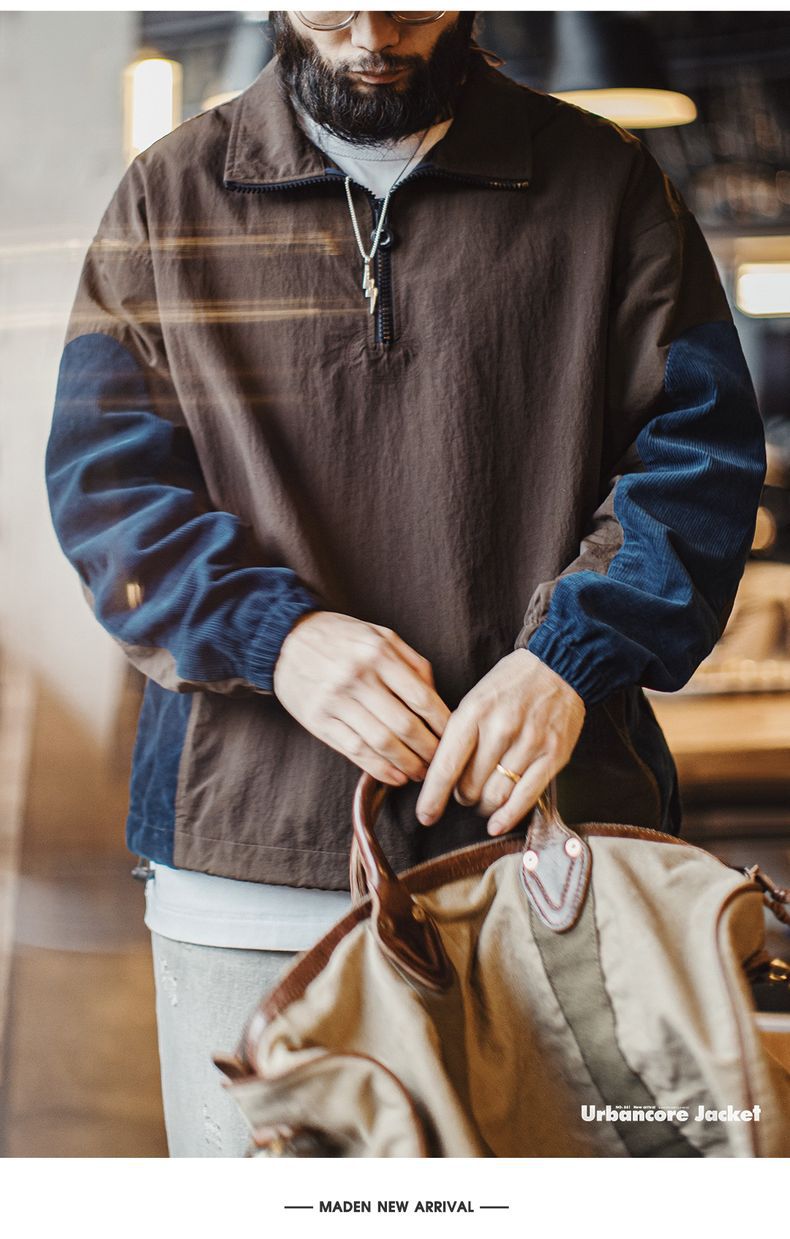 元素: 拼接燈芯絨袖子, 半拉鏈領