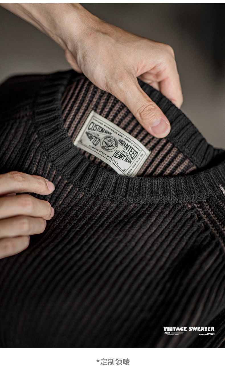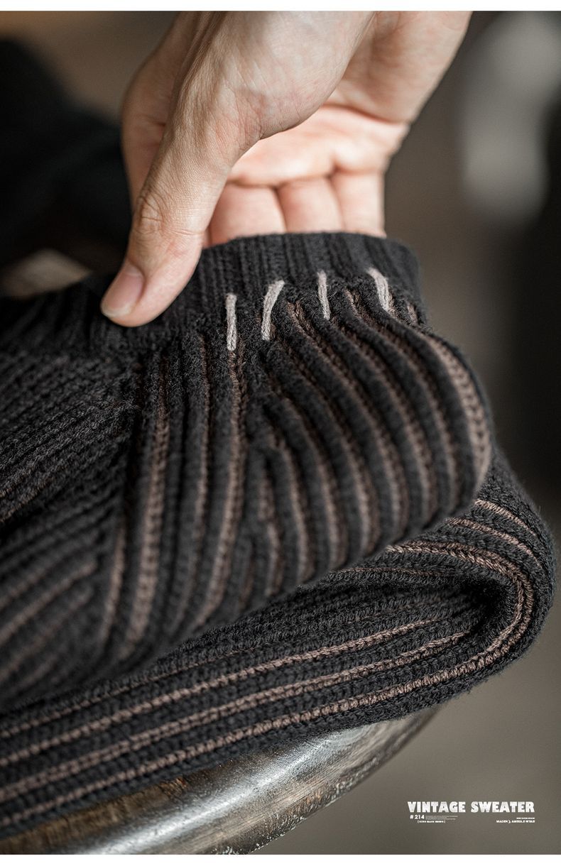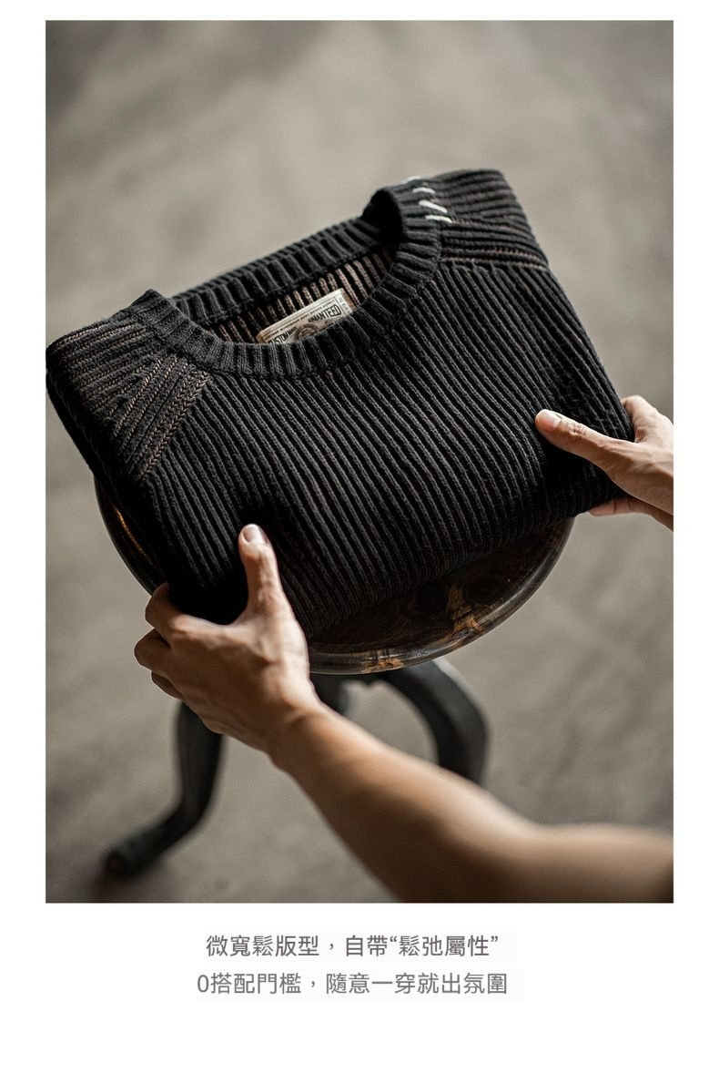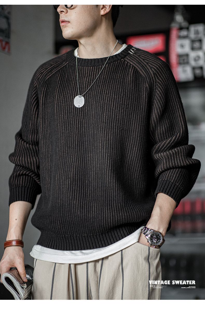 馬登工裝 美式復古豎條紋編織毛衣圓領加厚打底針織衫男秋冬