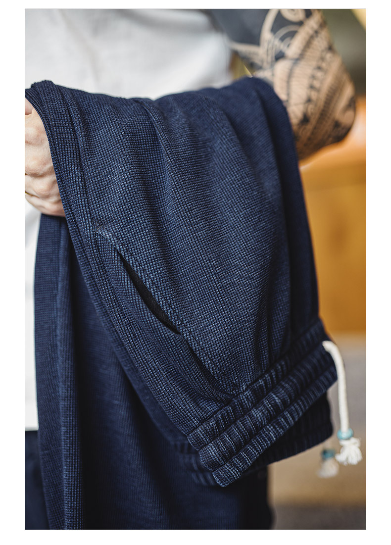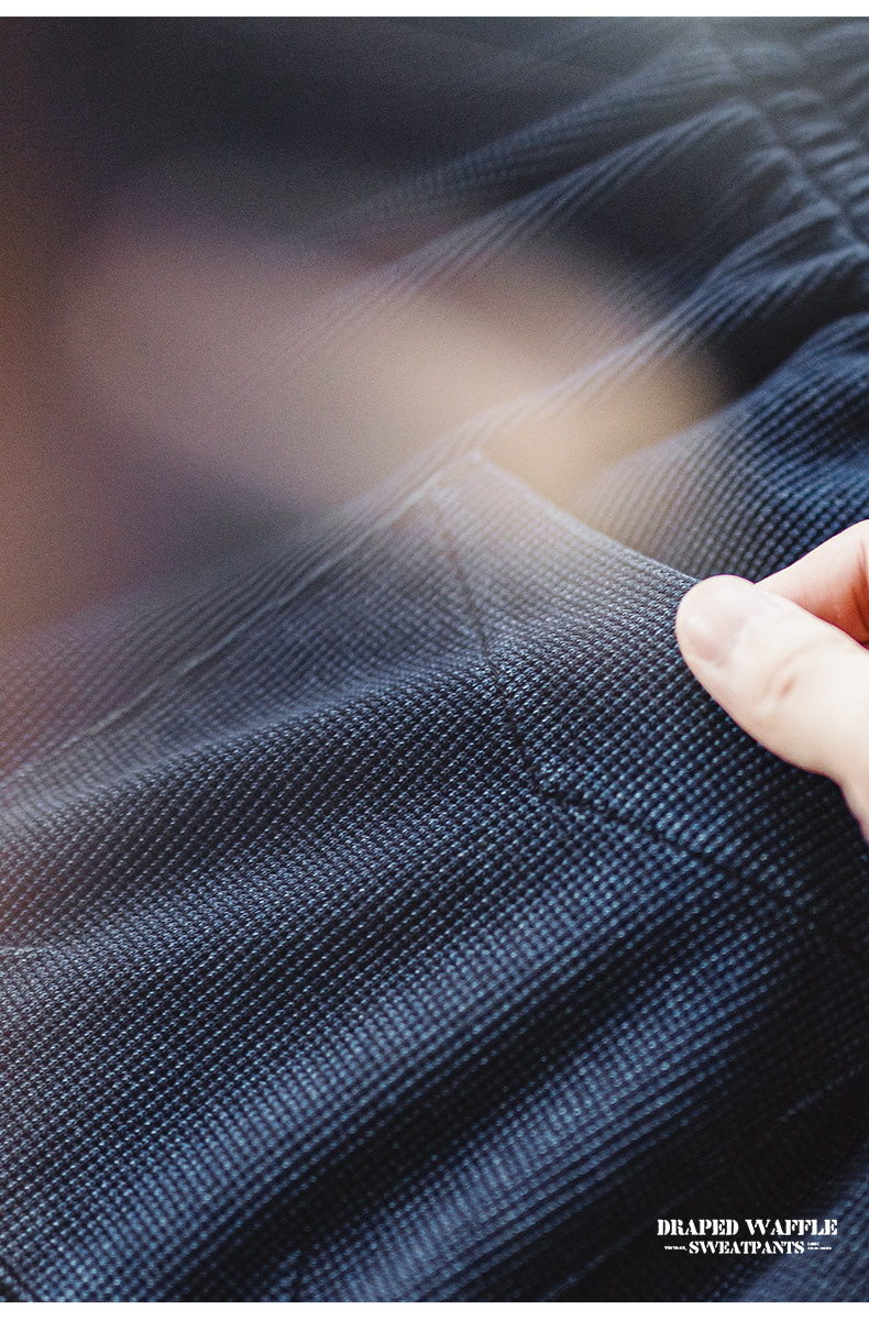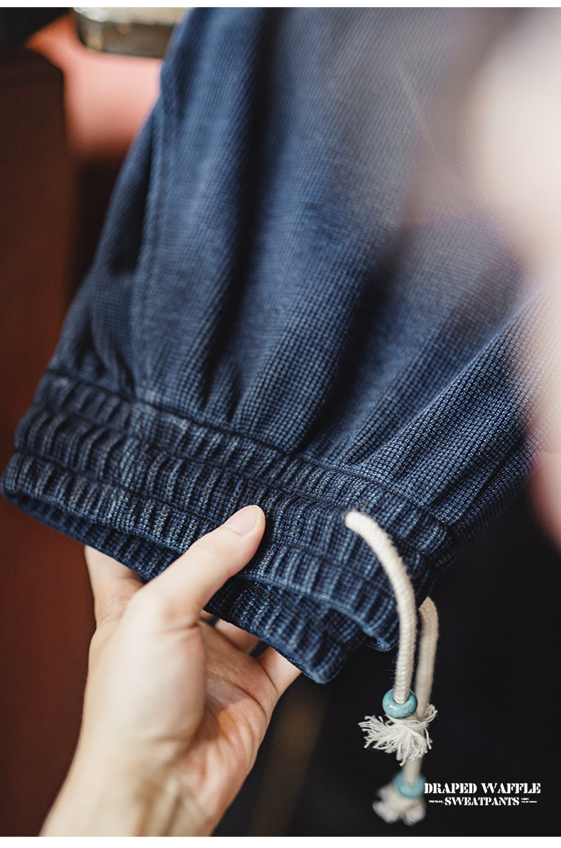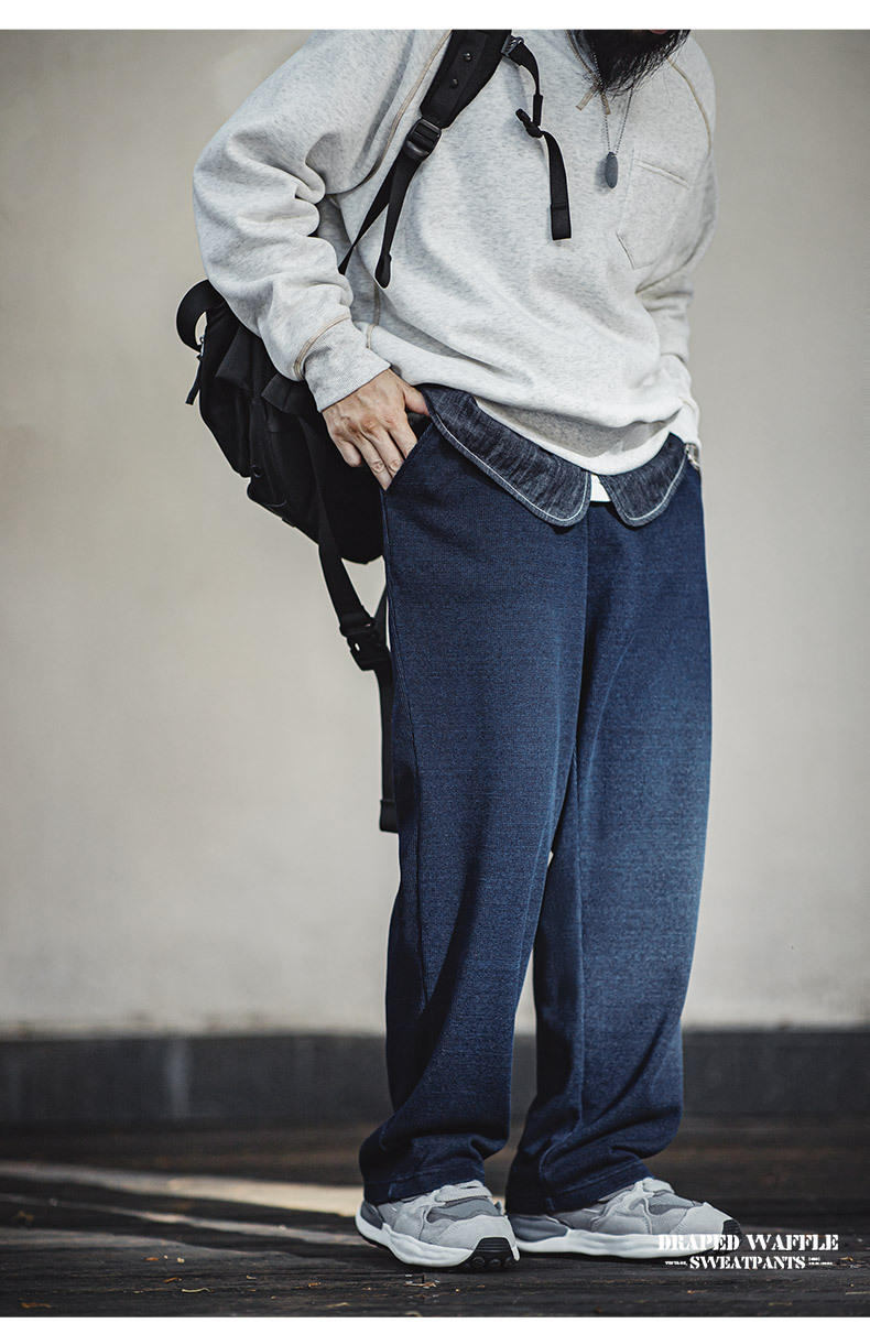 馬登工裝 美式復古針織垂感華夫格衛褲肌理感寬鬆直筒休閒褲子男秋
