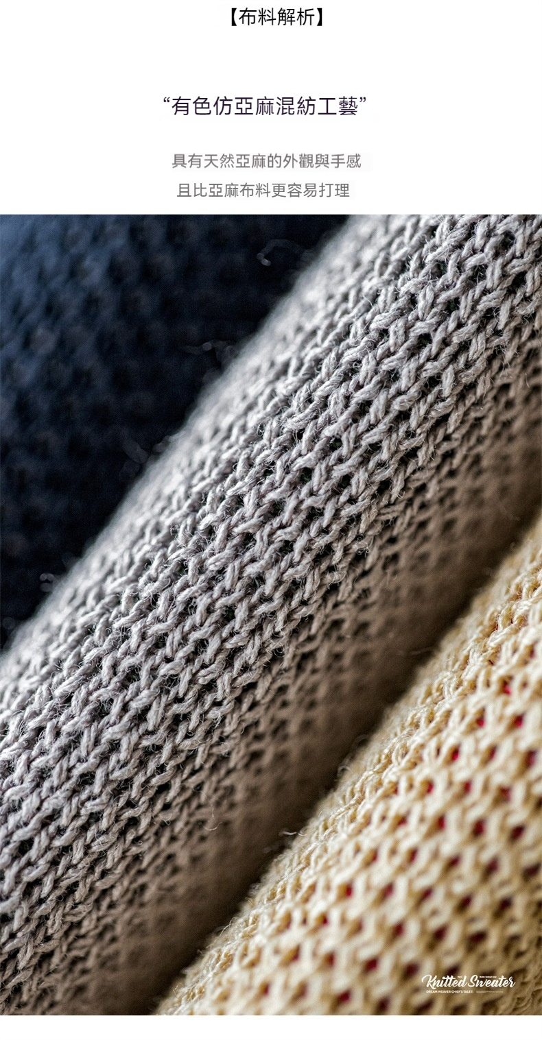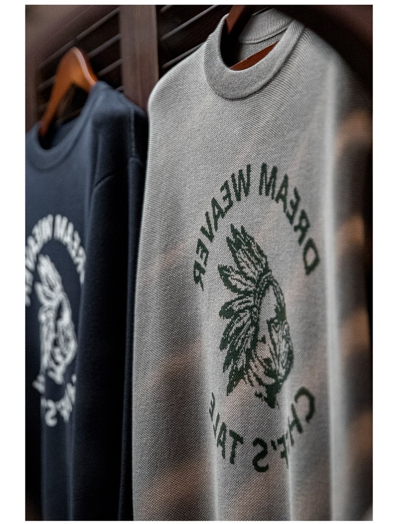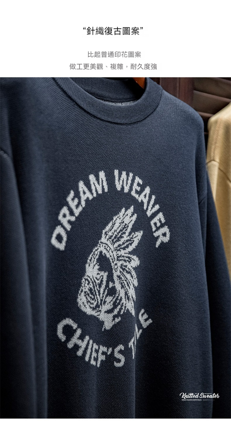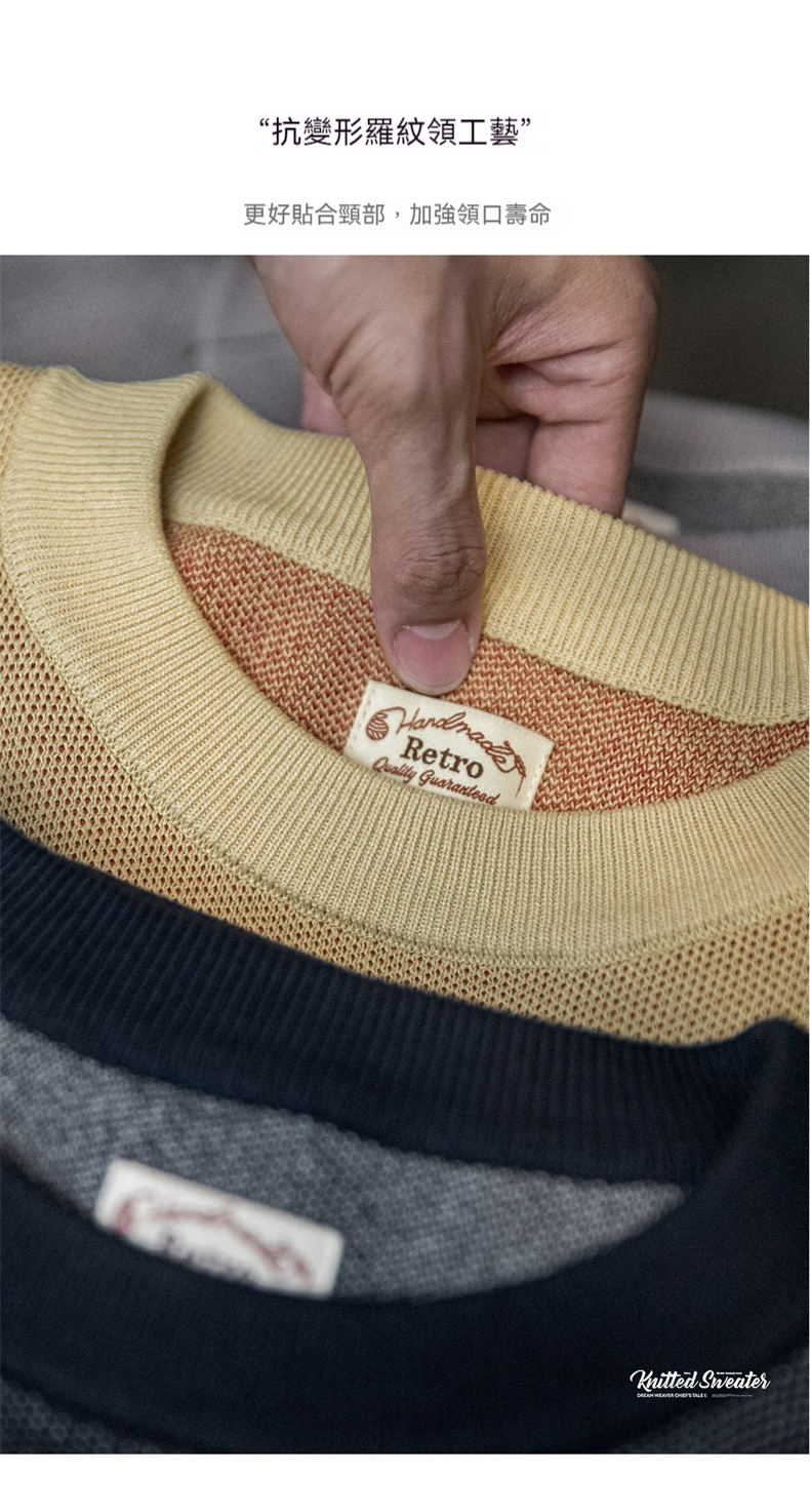 馬登工裝 美式復古仿亞麻字母撞色毛衣阿美哢嘰套頭圓領針織衫男秋冬