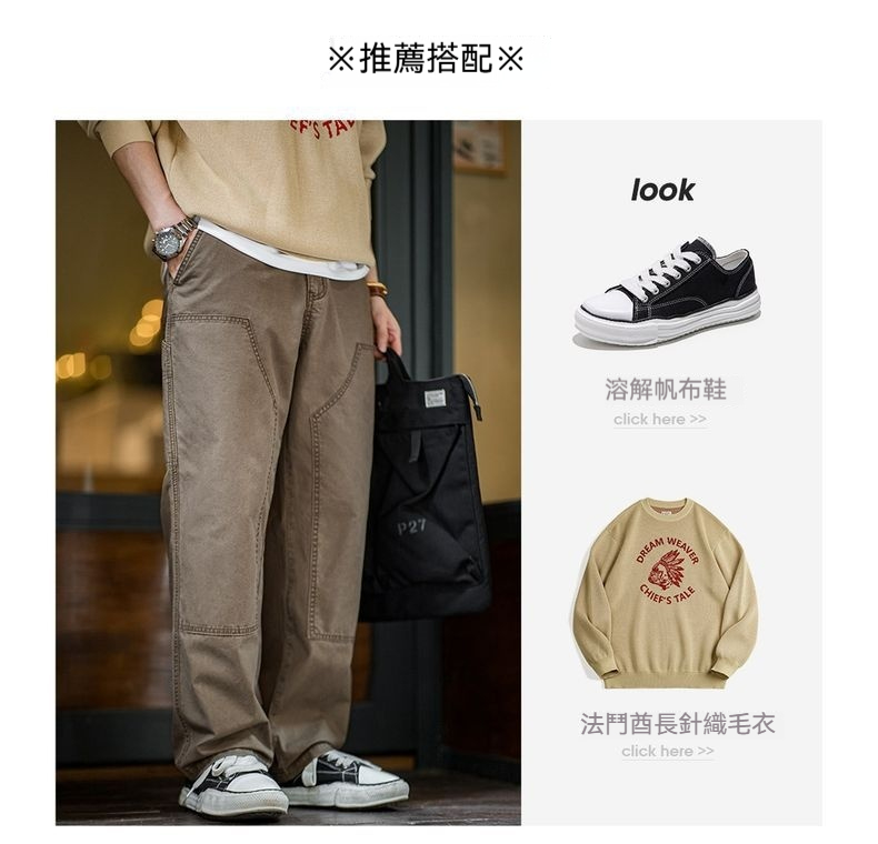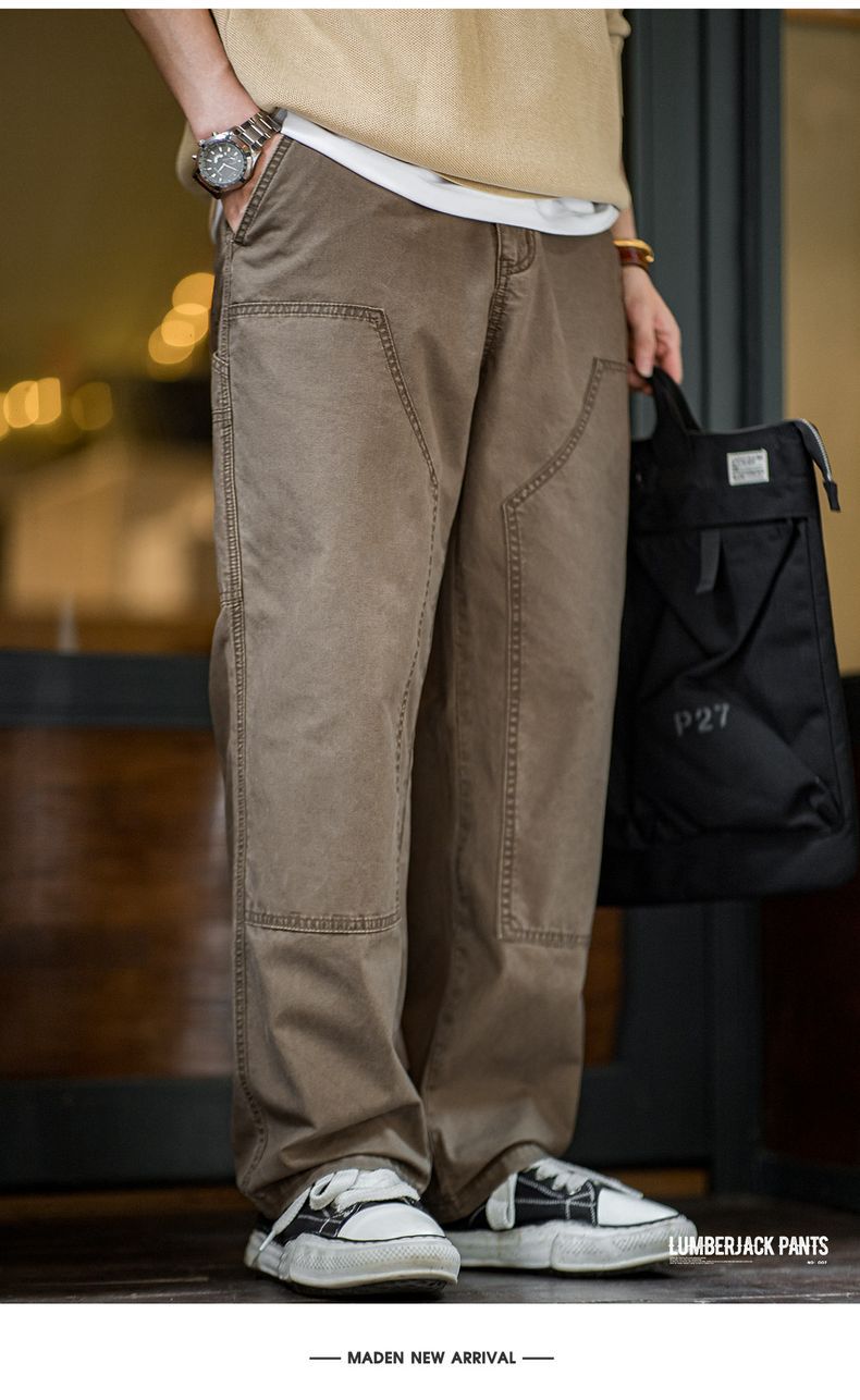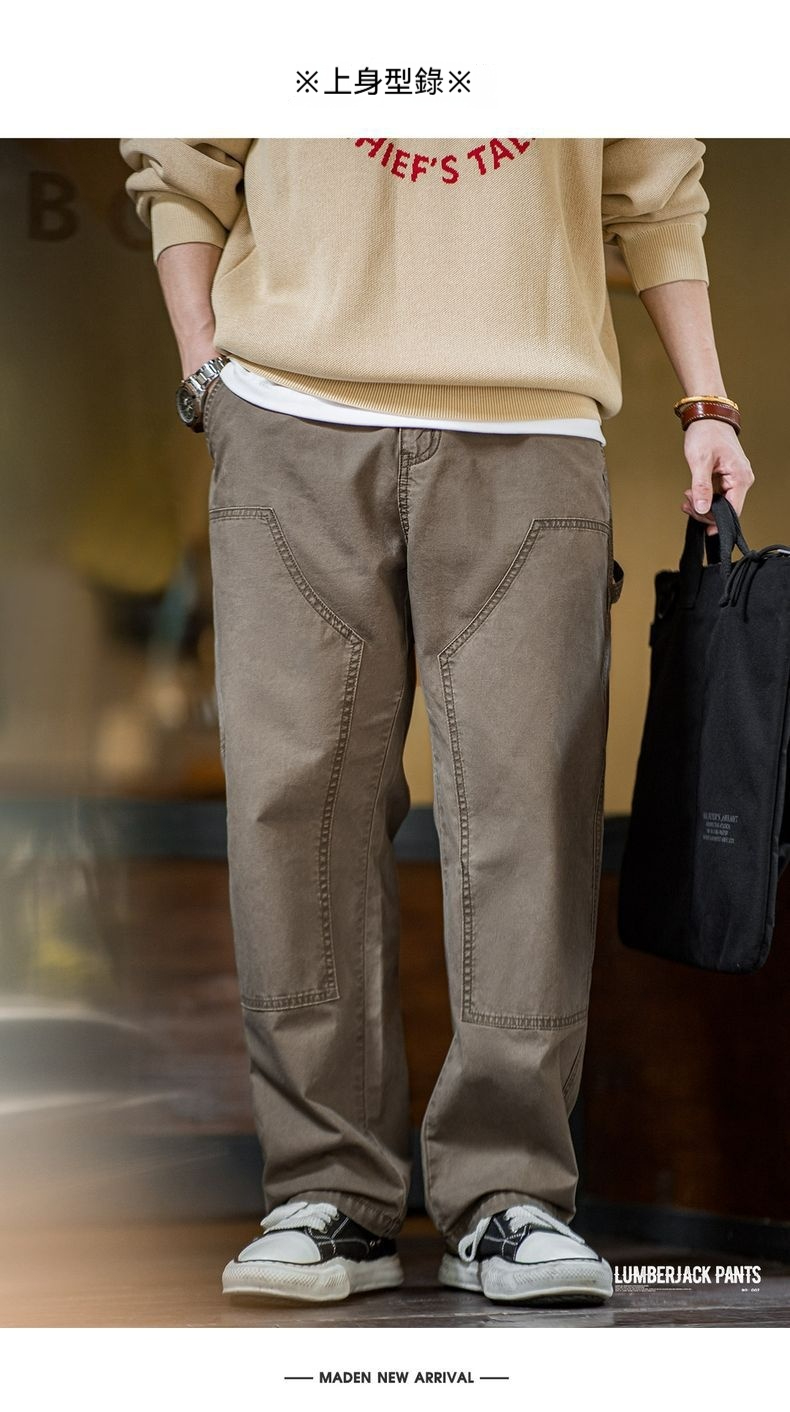 馬登工裝 美式復古雙膝伐木工褲vintage純棉帆布直筒休閒褲男秋冬