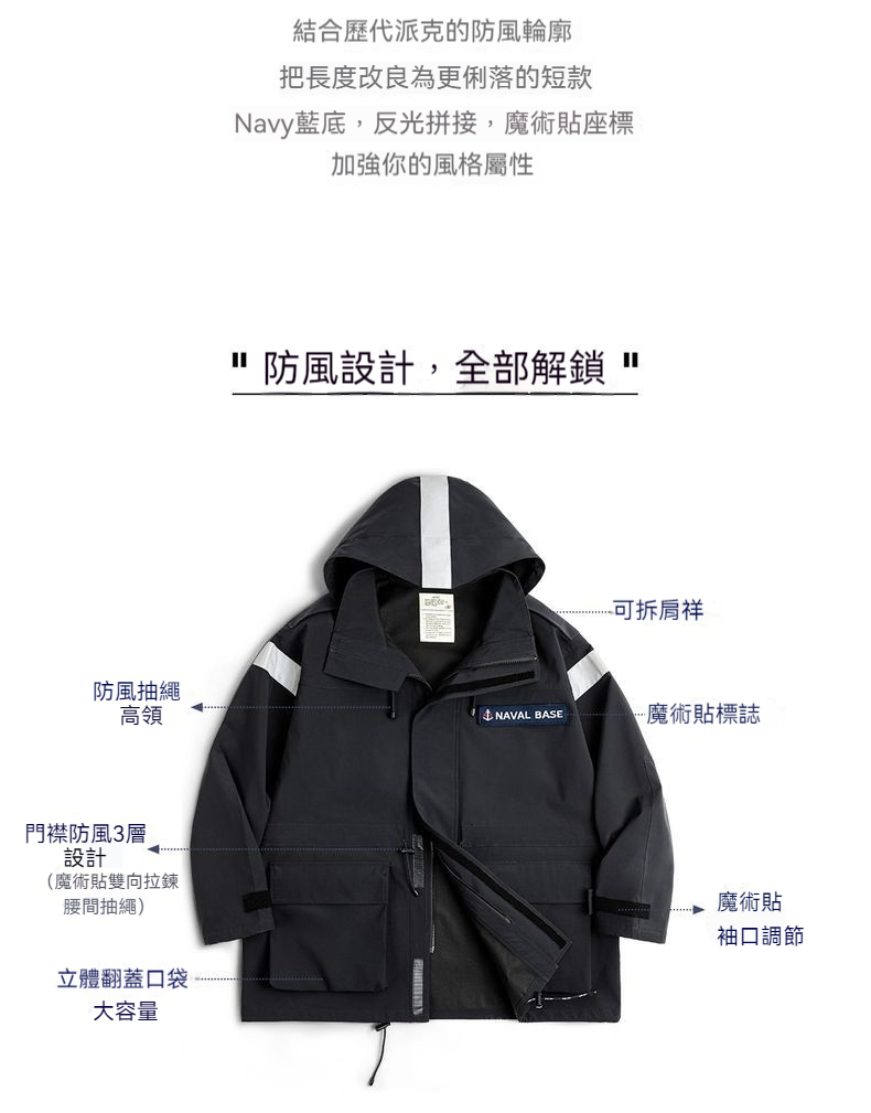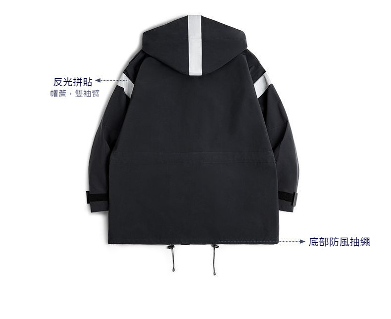 元素: 連帽, 口袋, 魔術貼, 抽繩, 反光條