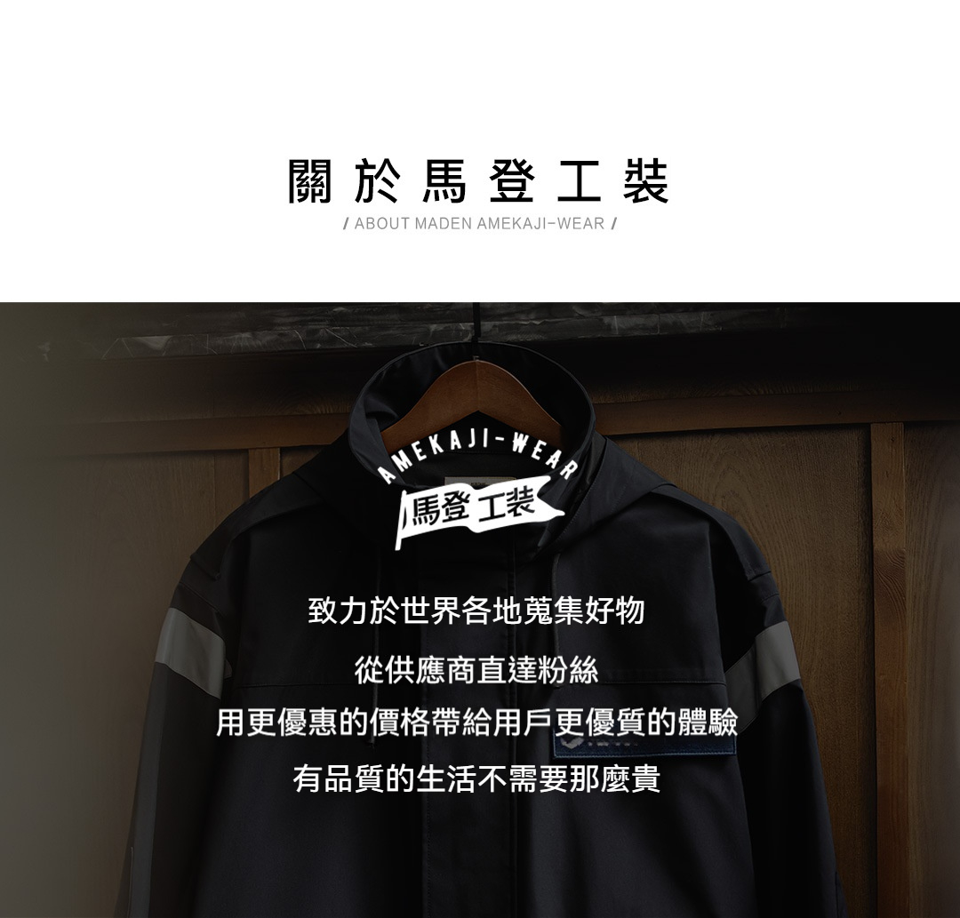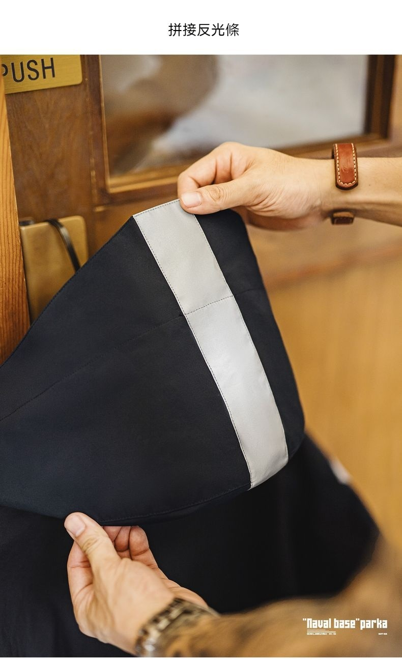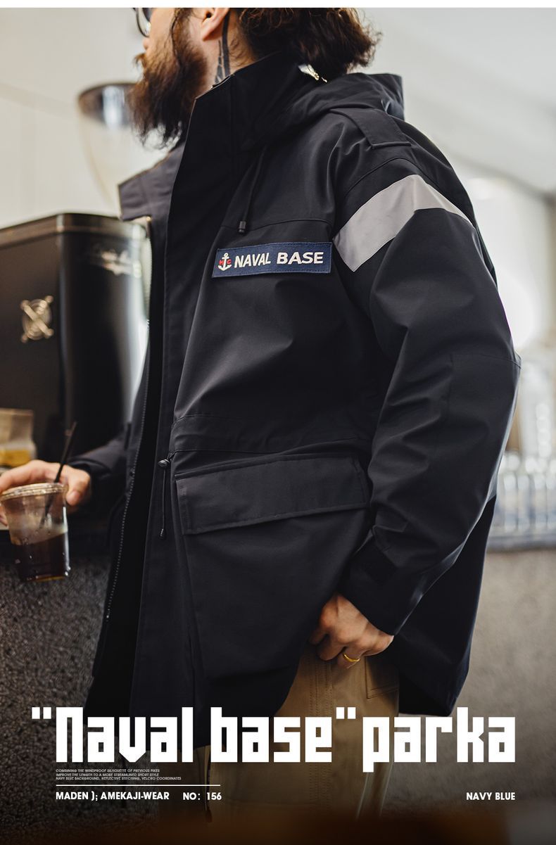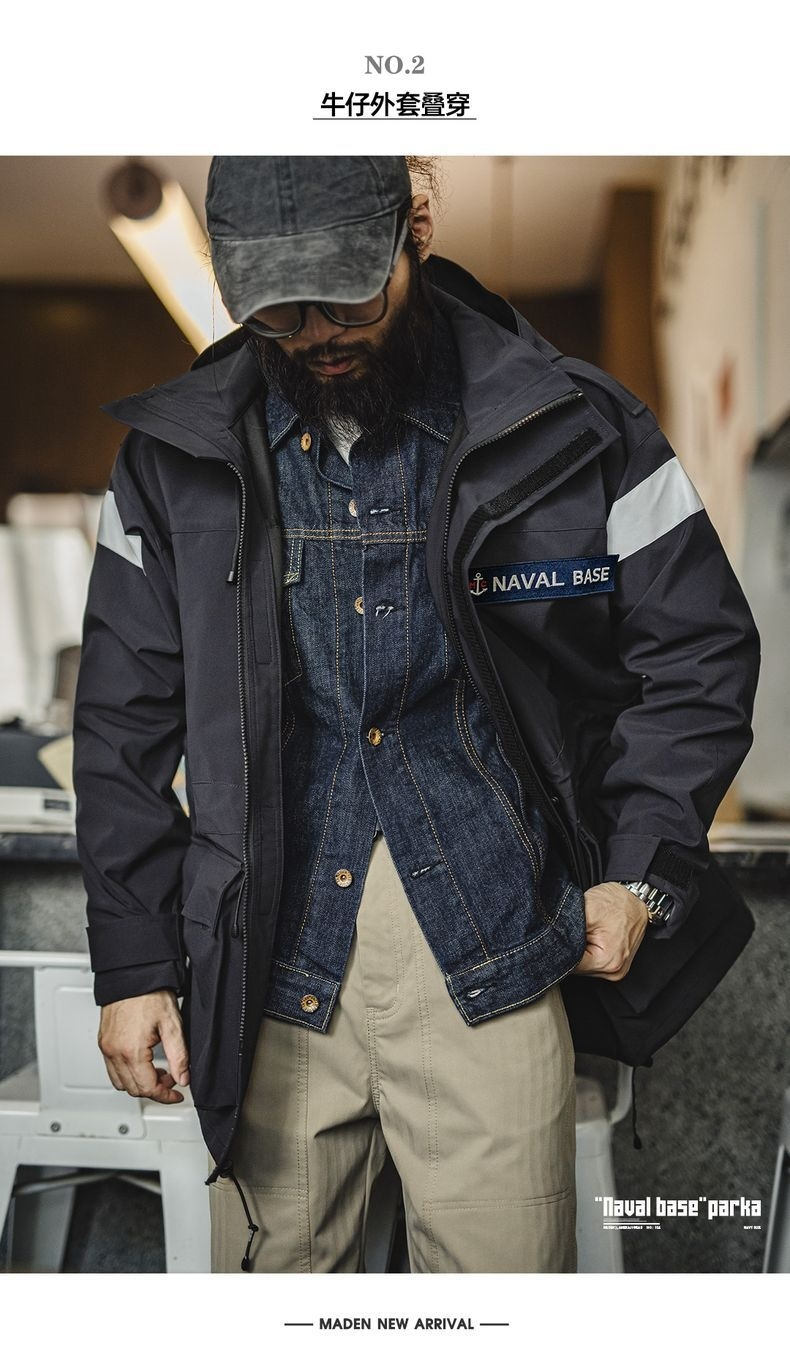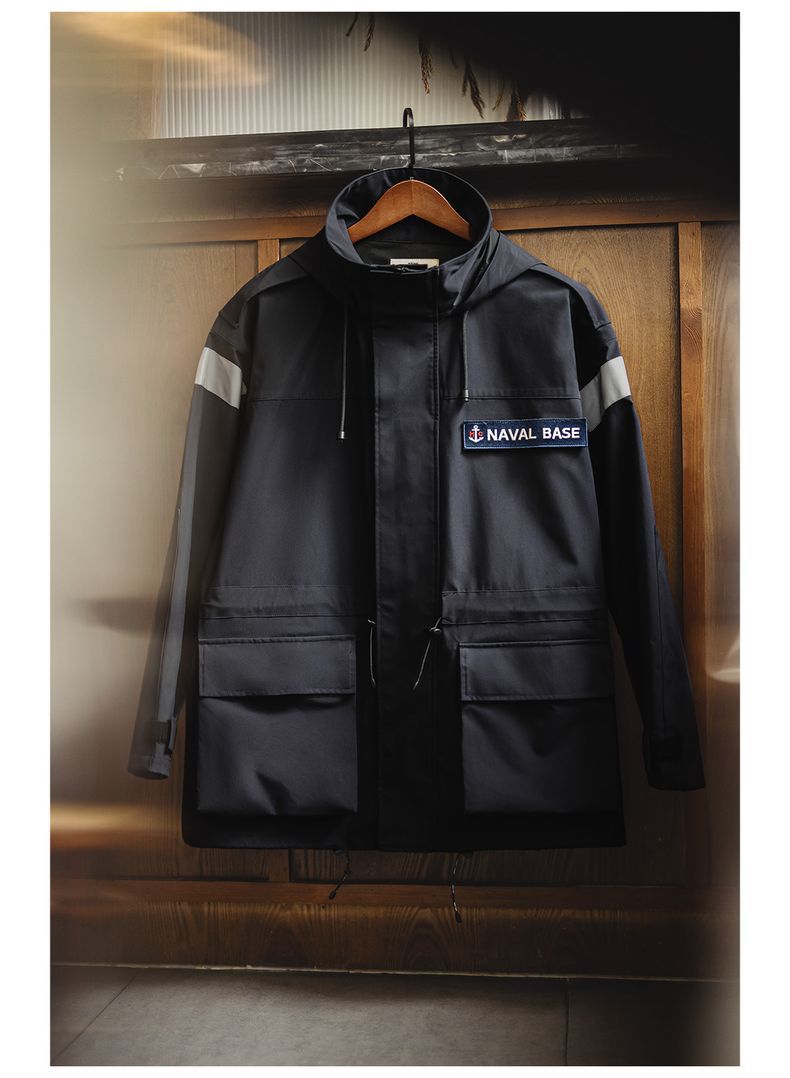 馬登工裝 美式復古中長款海軍派克風衣寬鬆防風連帽夾克外套男秋冬