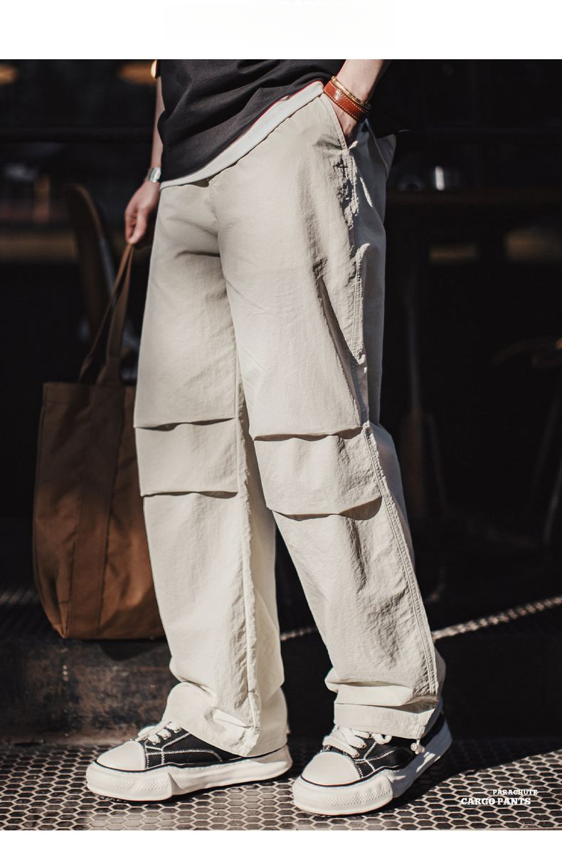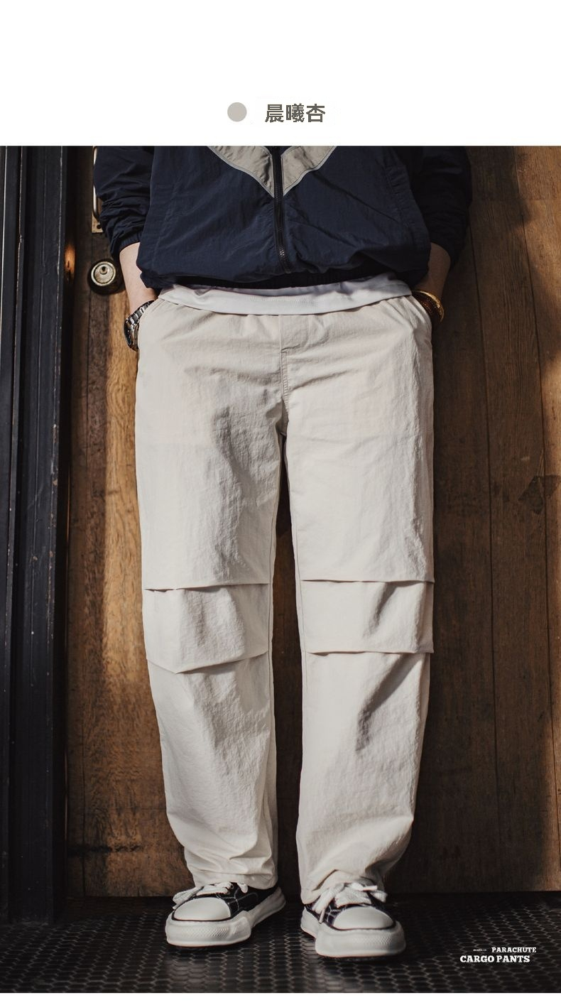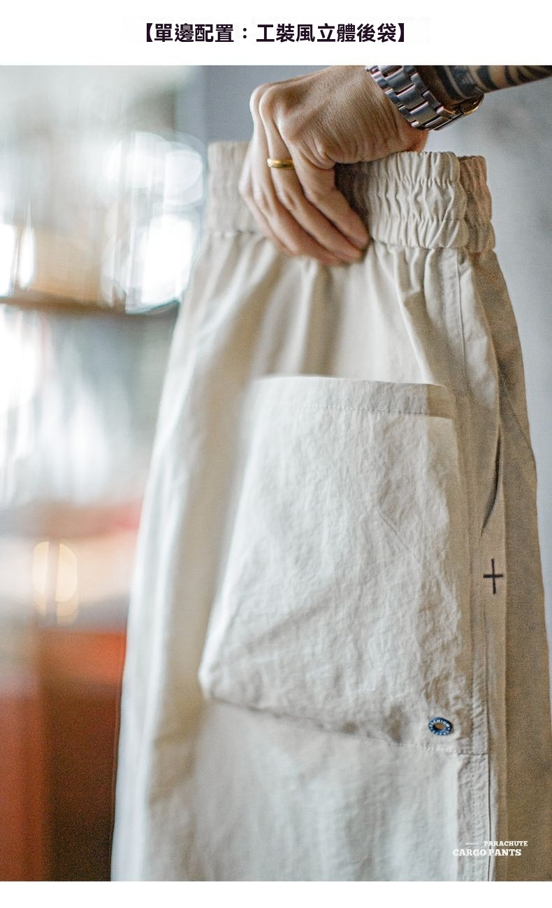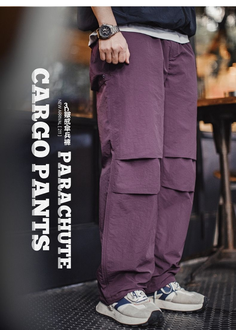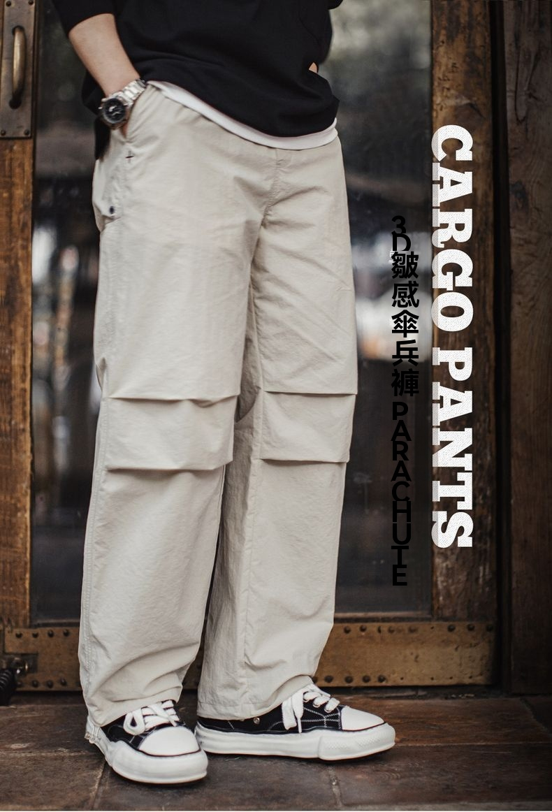 馬登工裝 美式復古3d褶皺傘兵褲尼龍肌理感休閒褲vibe直筒長褲男春