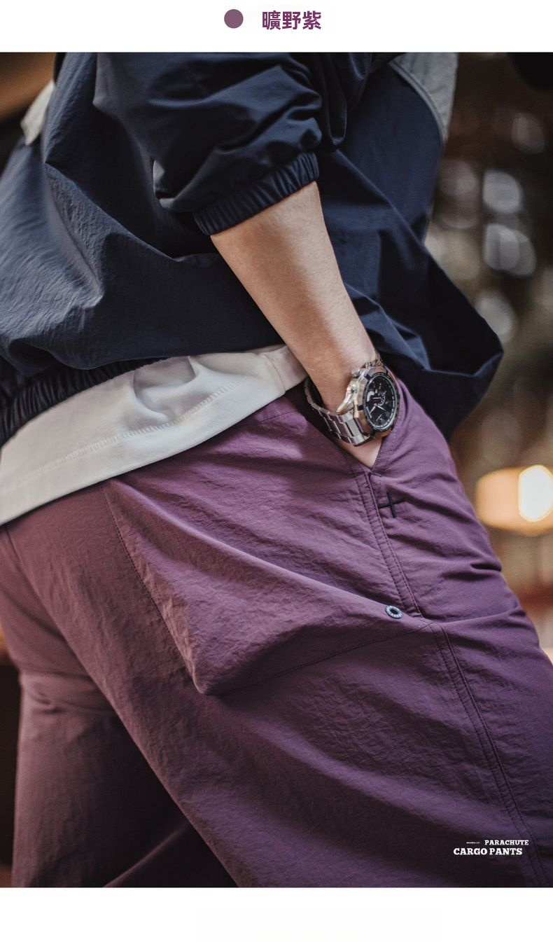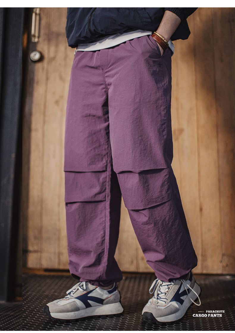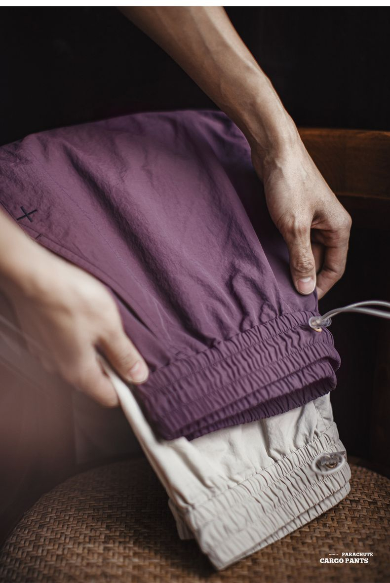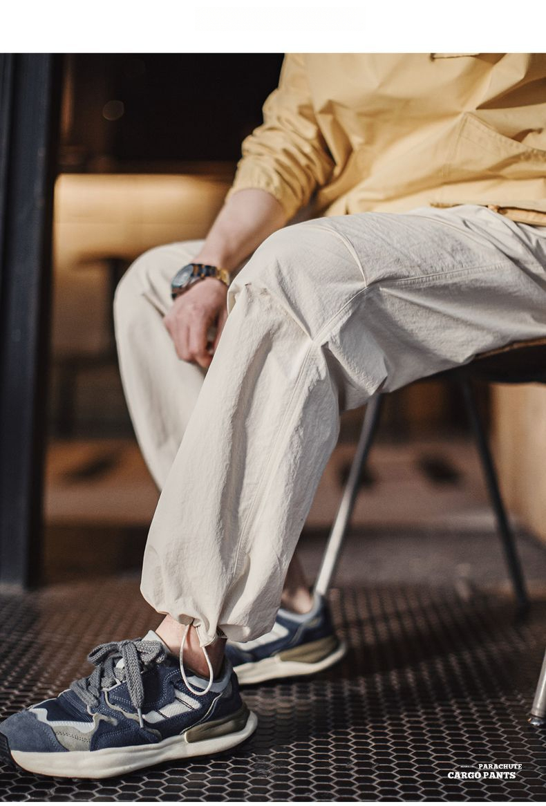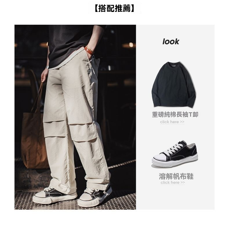 馬登工裝 美式復古3d褶皺傘兵褲尼龍肌理感休閒褲vibe直筒長褲男春