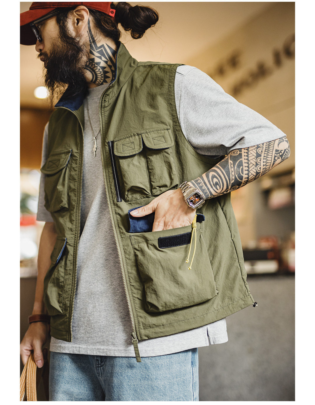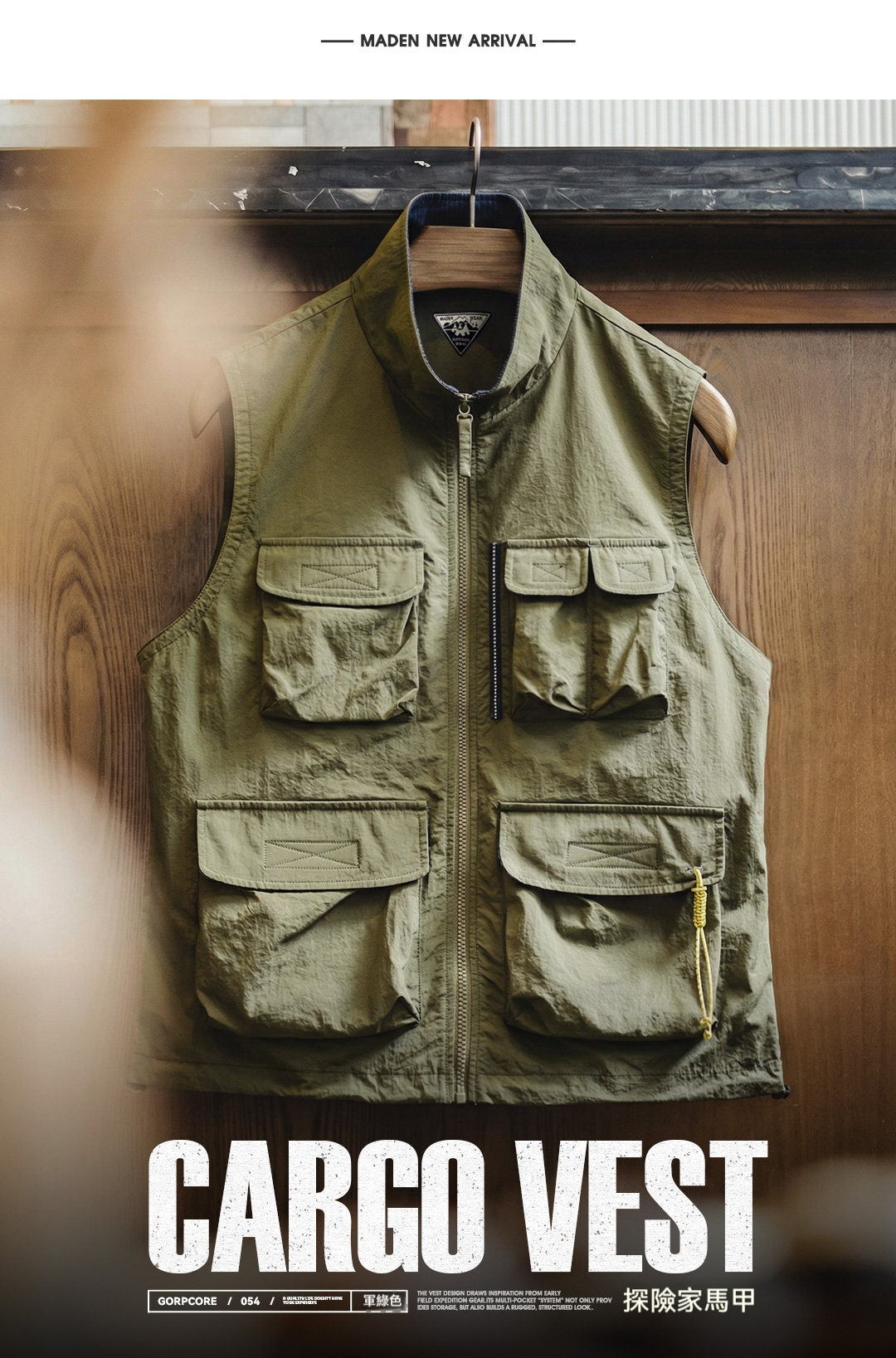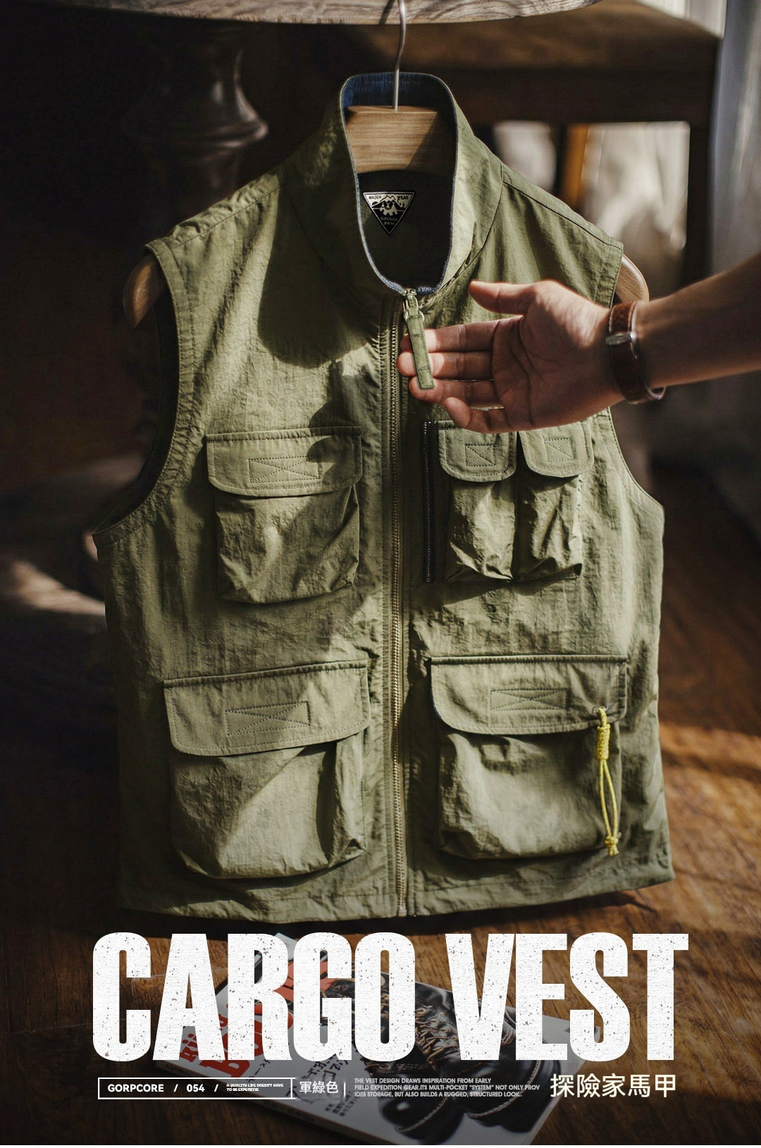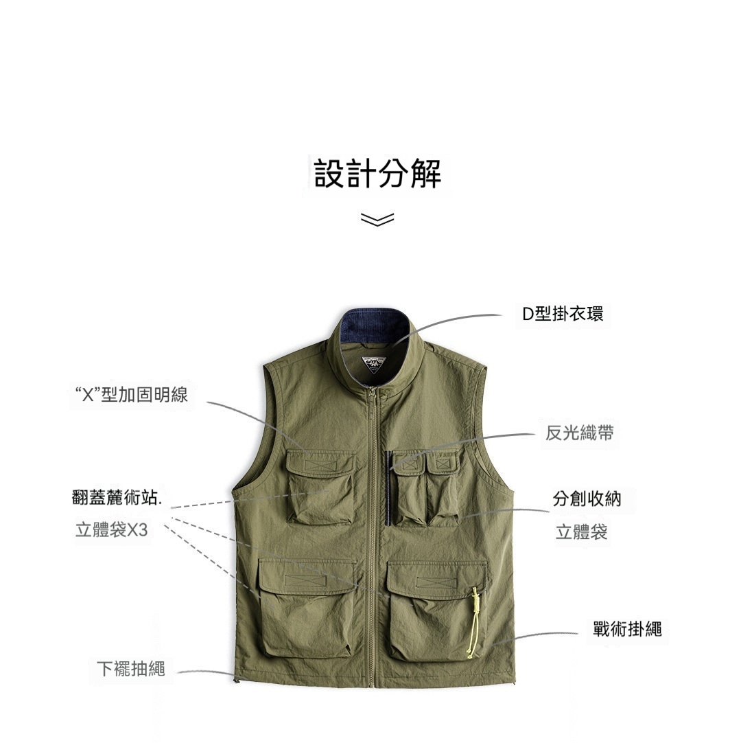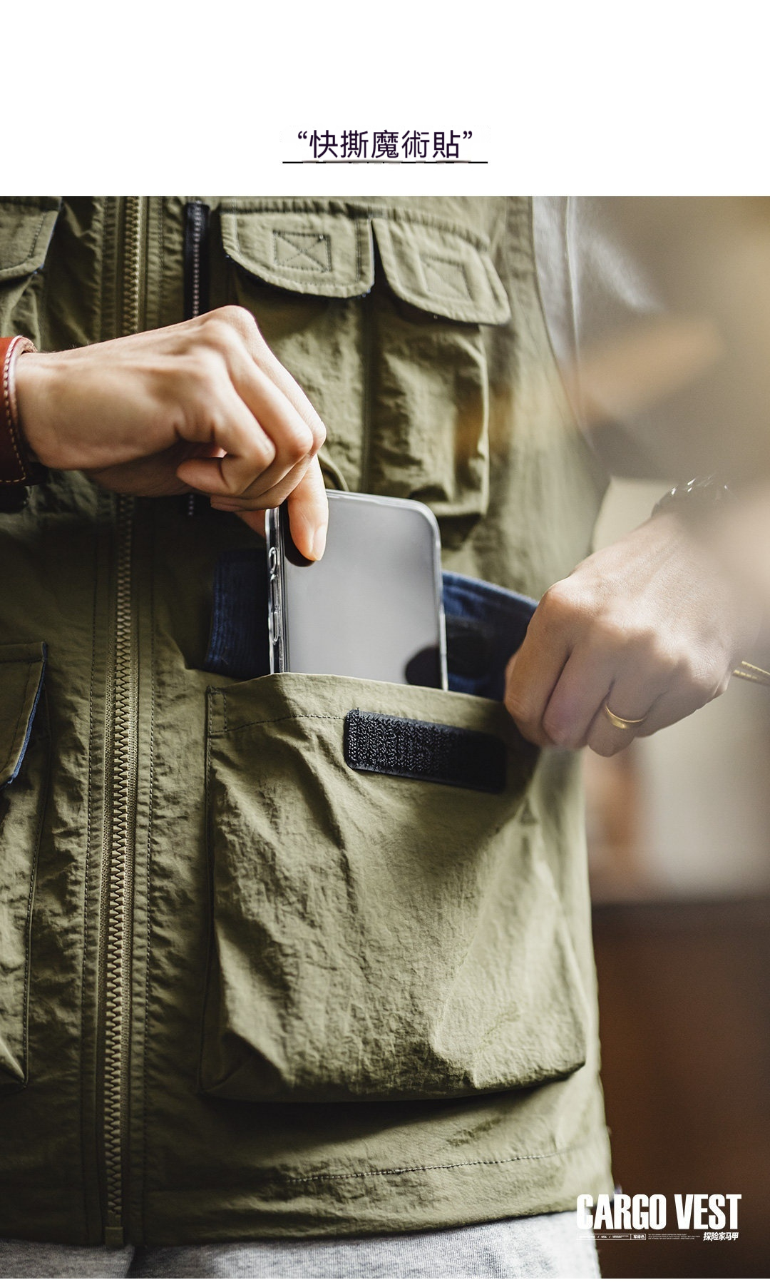 馬登工裝 美式山系戶外馬甲軍綠色Gorpcore輕薄工裝背心徒步外套男春