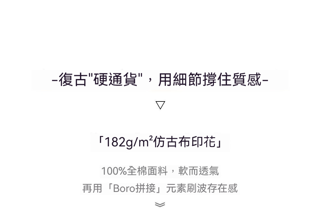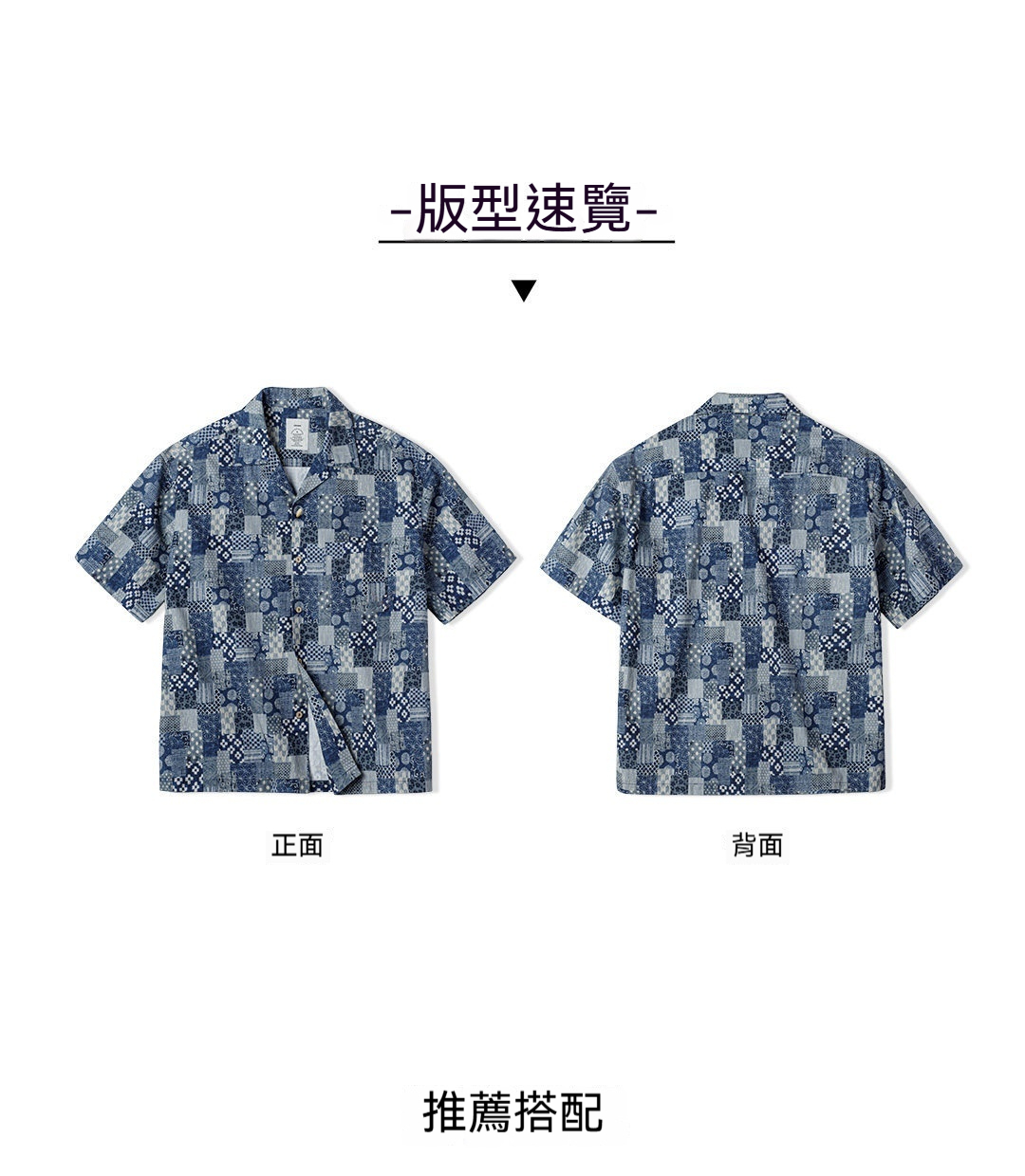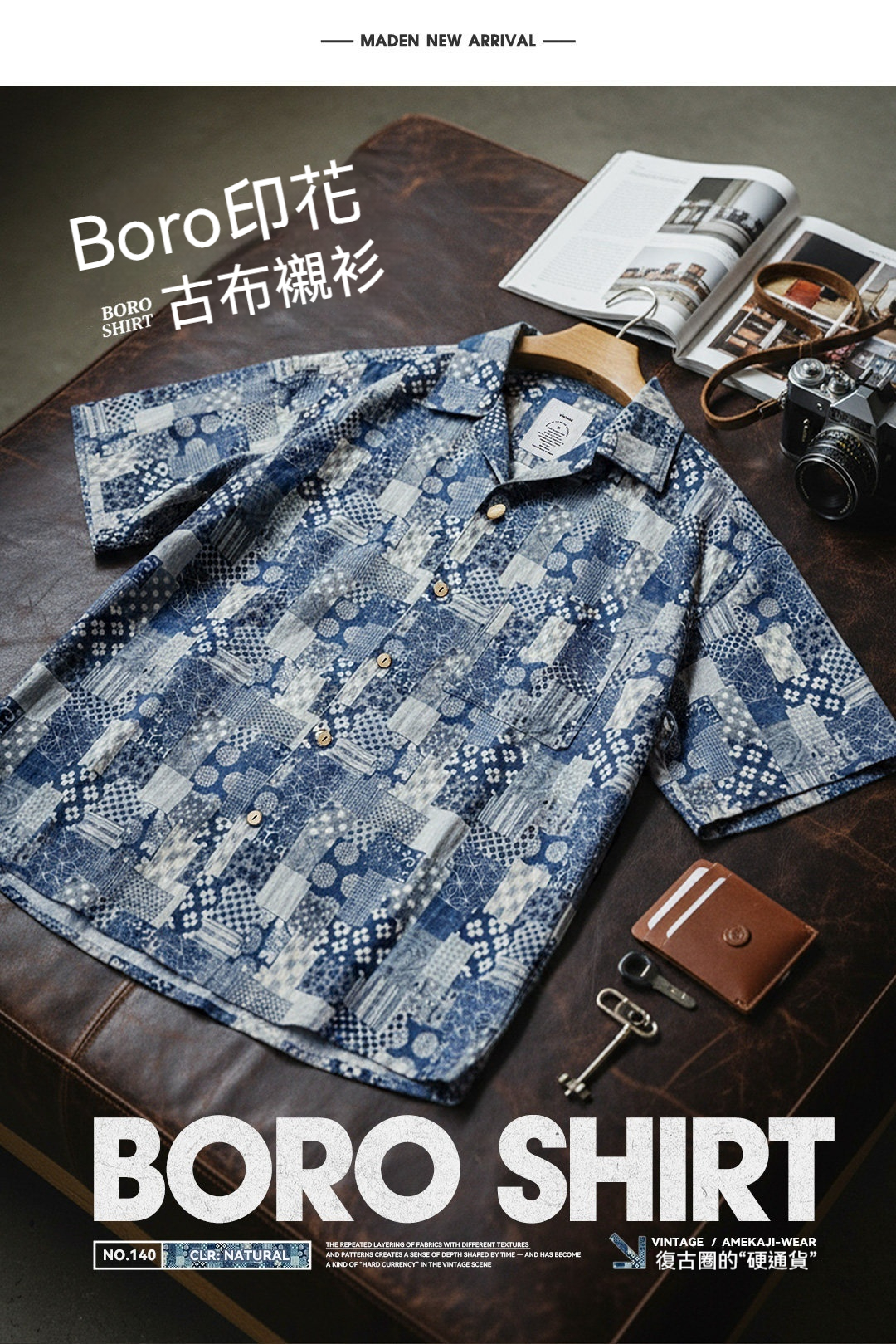 馬登工裝 美式復古Boro古布短袖襯衫vintage印花牛仔襯衣外套男夏