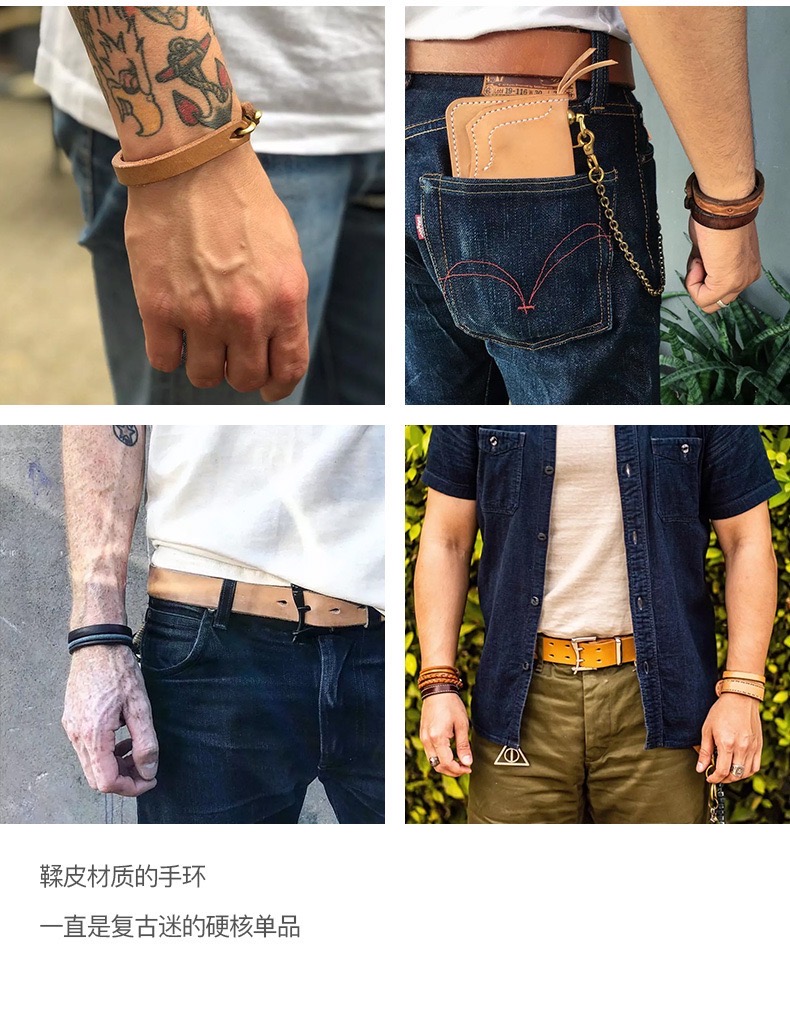馬登工裝 復古一生之環植鞣皮手環手鐲阿美咔嘰首飾配飾男女