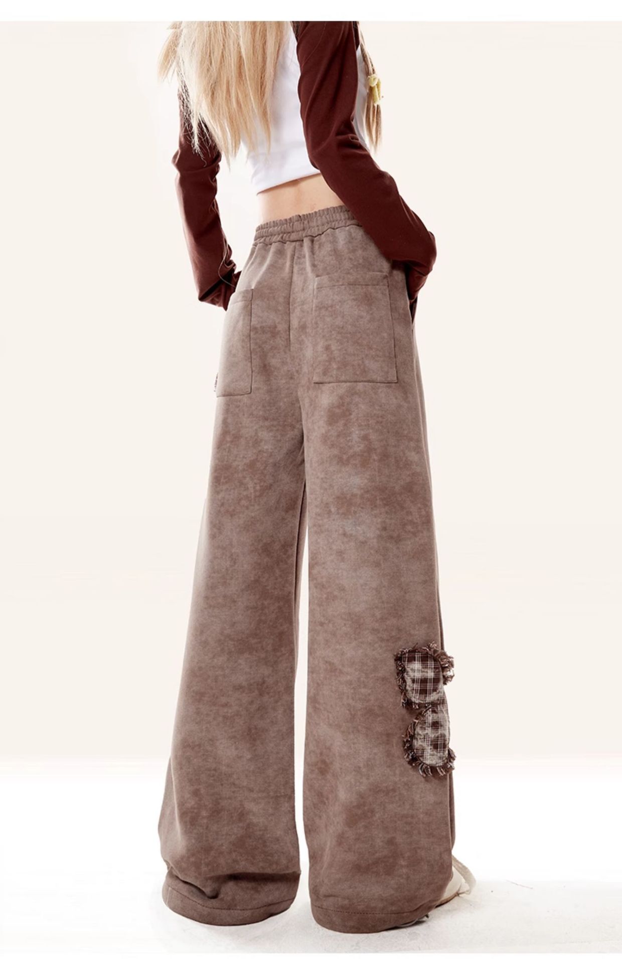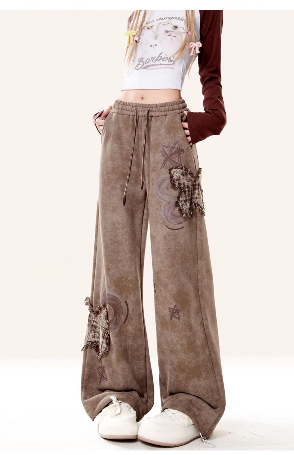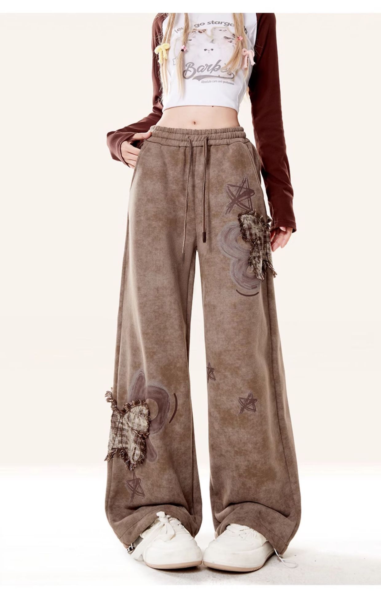 美式復古蝴蝶貼布繡衛褲秋冬設計感休閒寬鬆闊腿運動褲