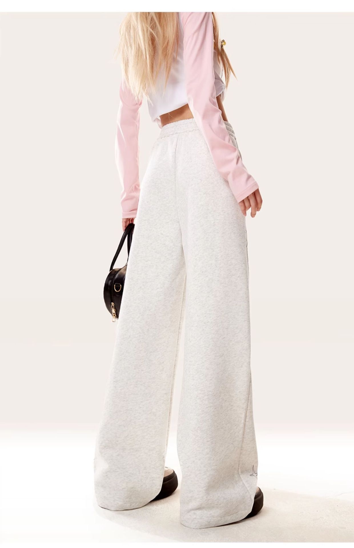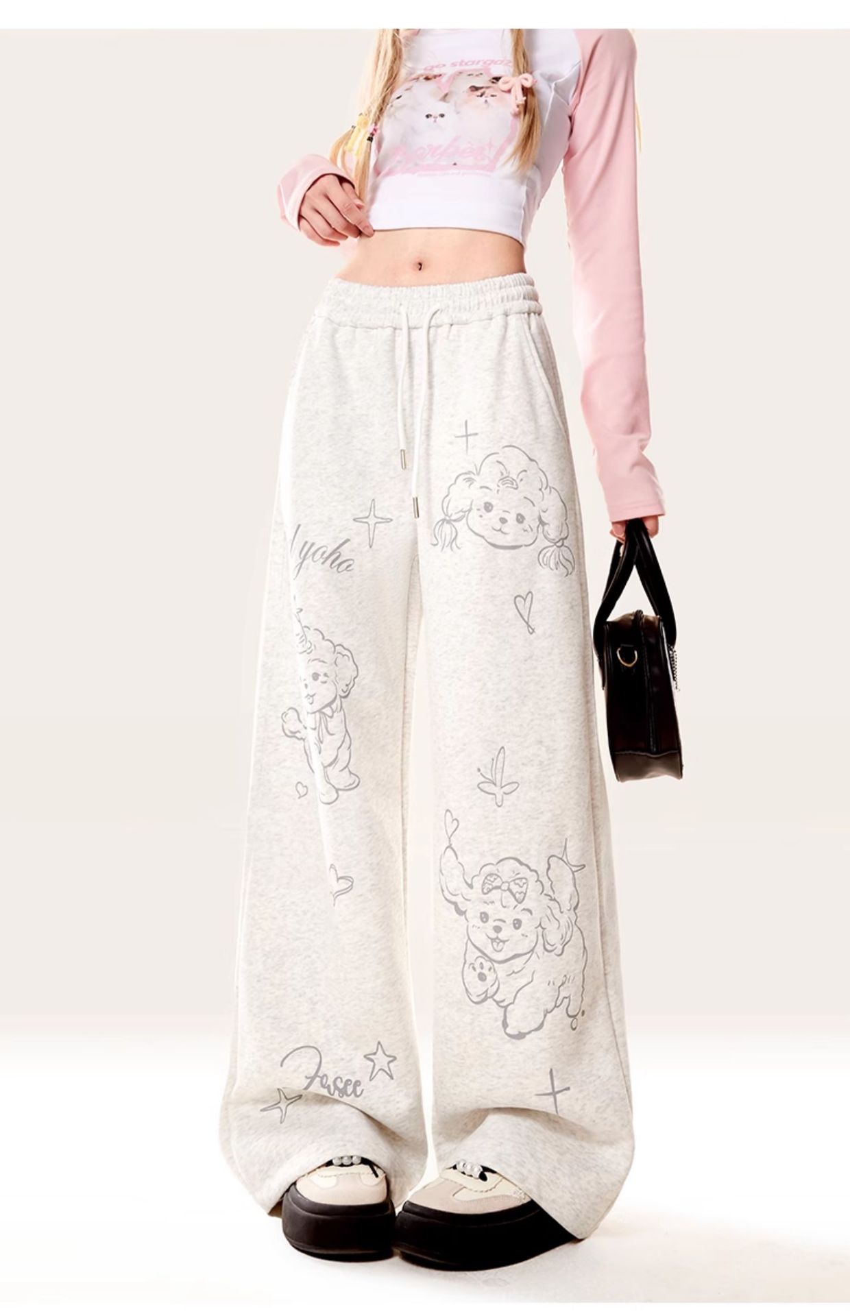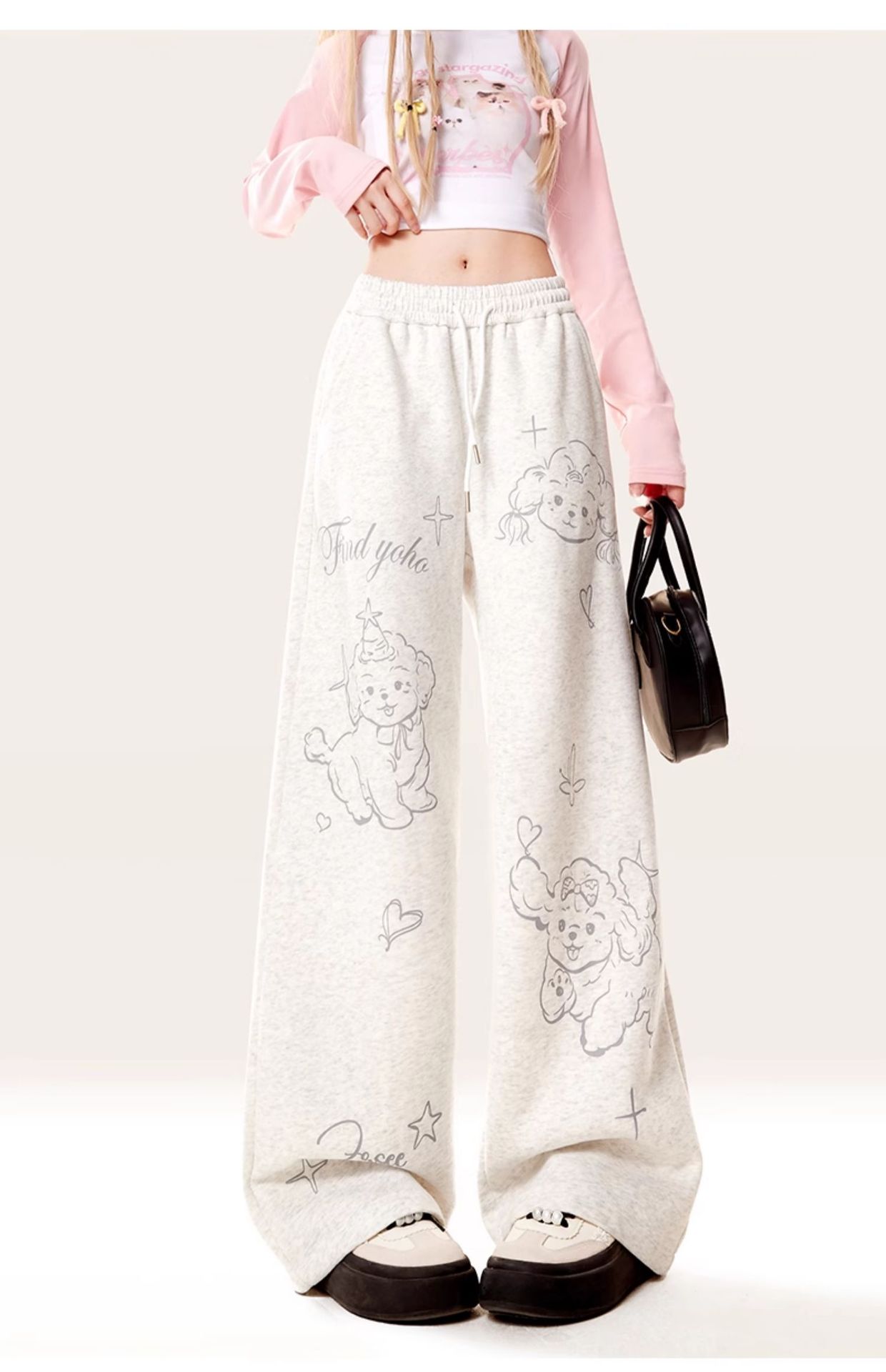 美式復古可愛小狗印花休閒衛褲秋冬季直筒寬鬆運動闊腿褲子