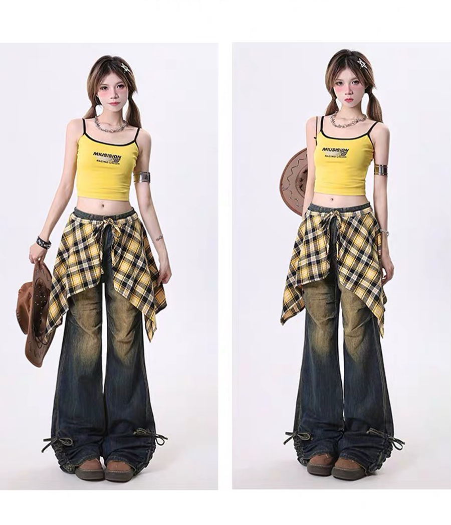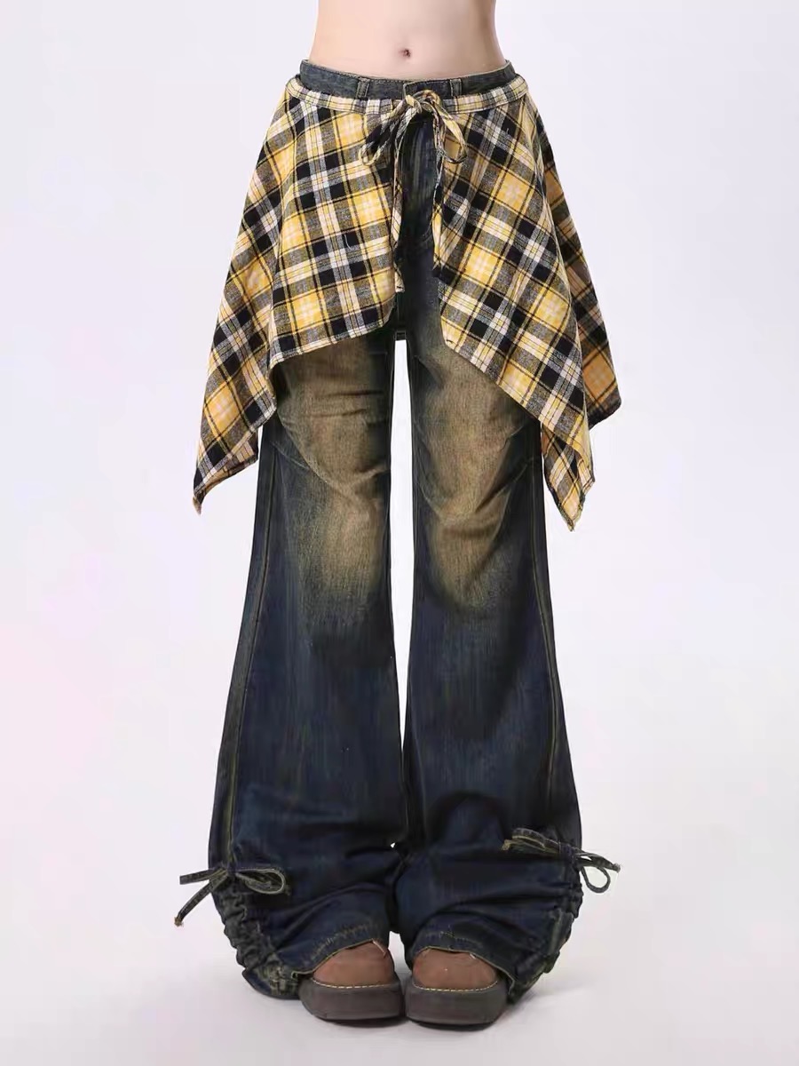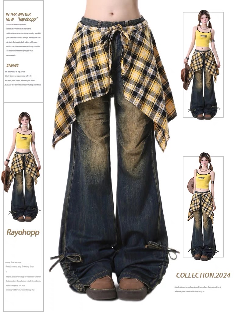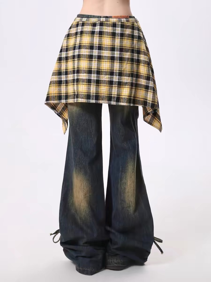 元素: 做舊牛仔, 綁帶設計, 格子裙擺