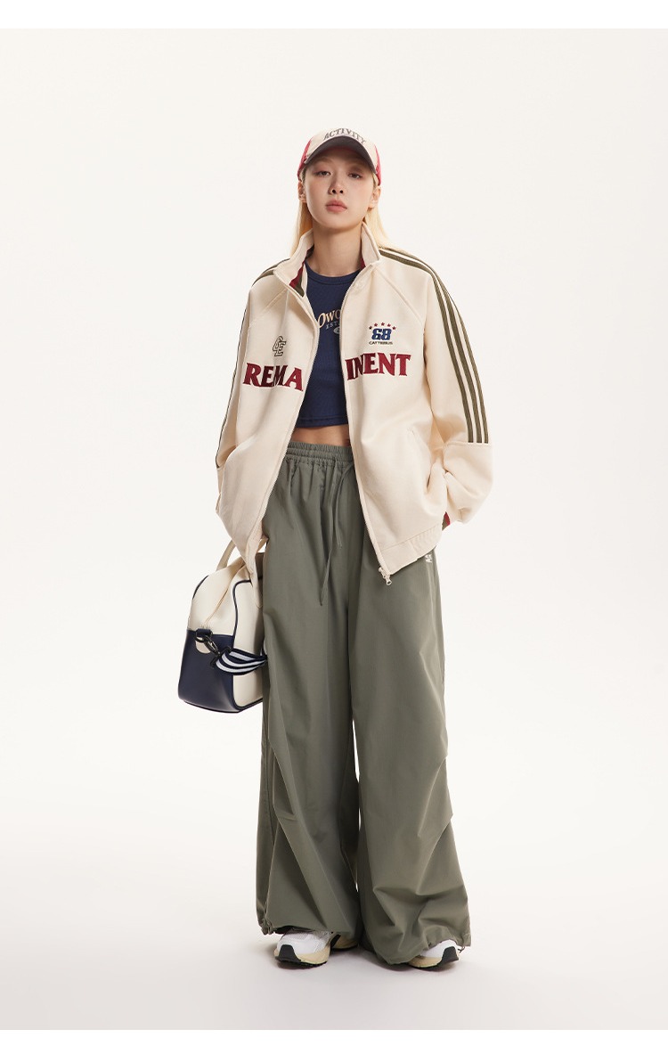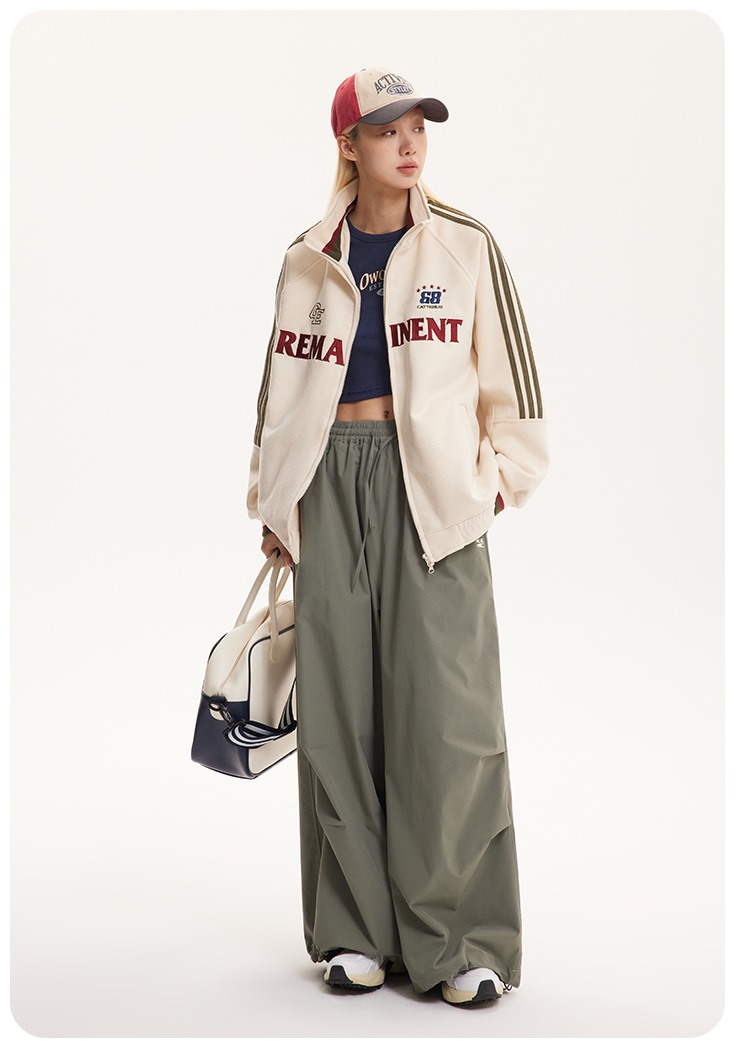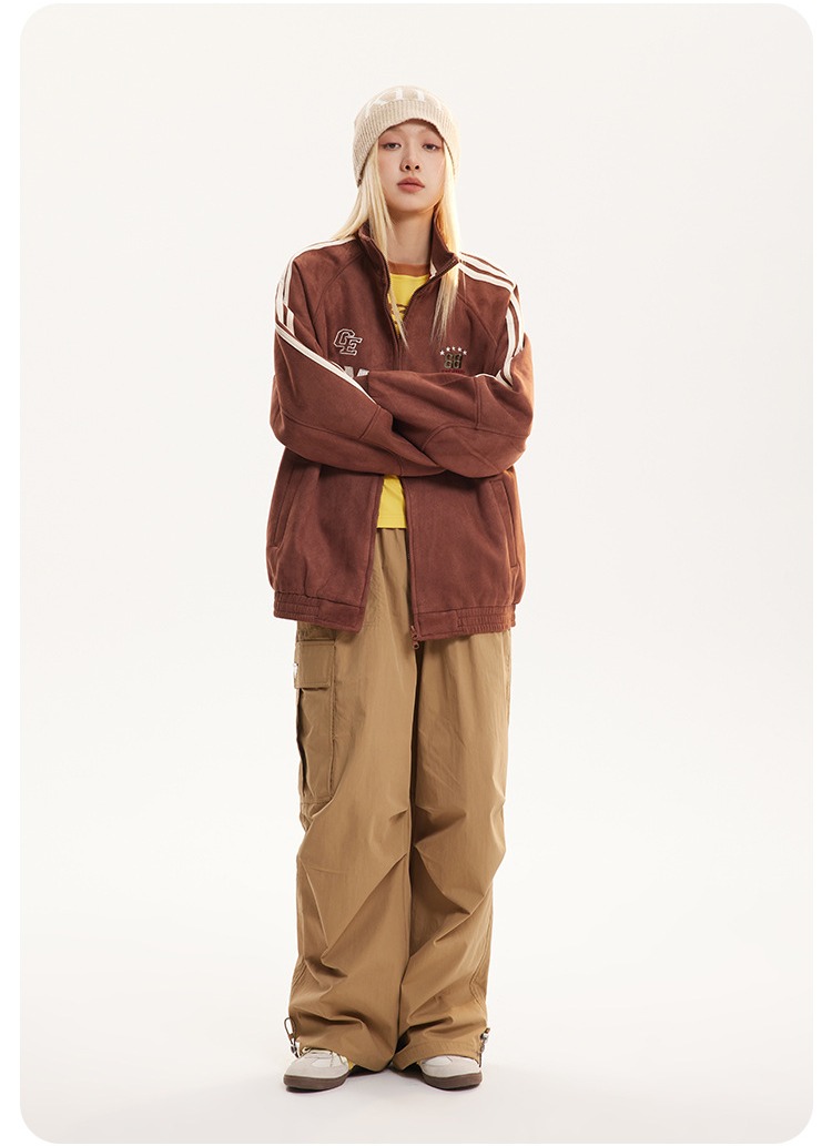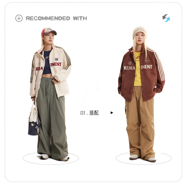 美式復古字母刺繡麂皮絨棒球服寬鬆學院風情侶夾克外套