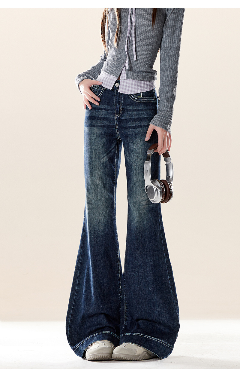 美式復古微喇牛仔褲秋冬季水洗做舊小眾設計感修身顯瘦喇叭褲