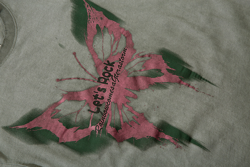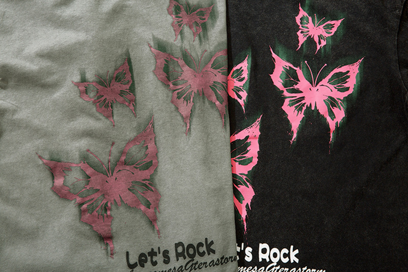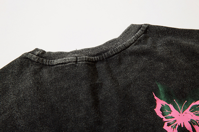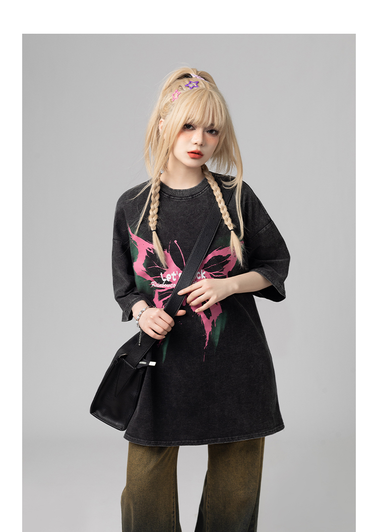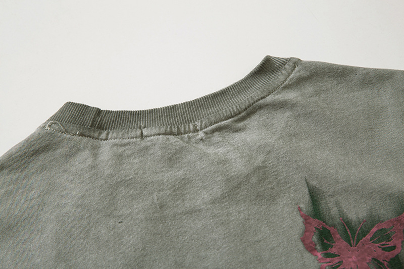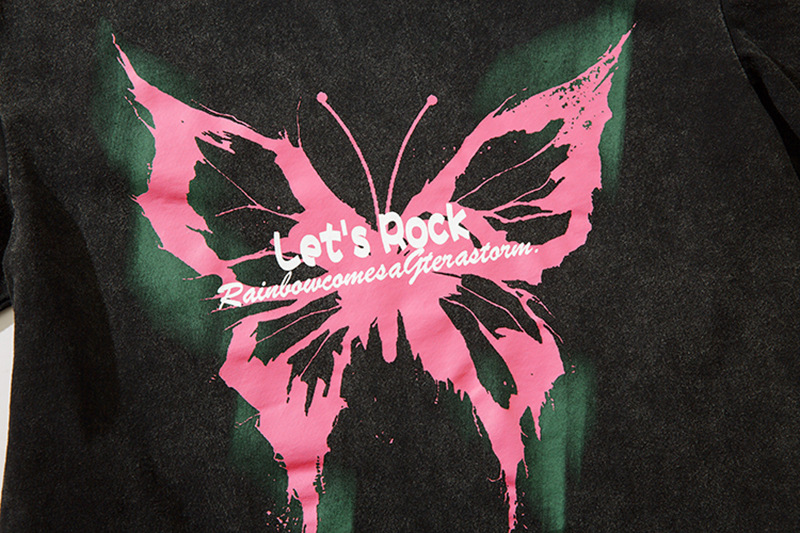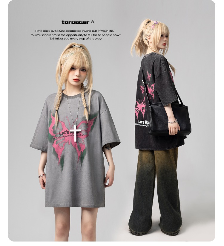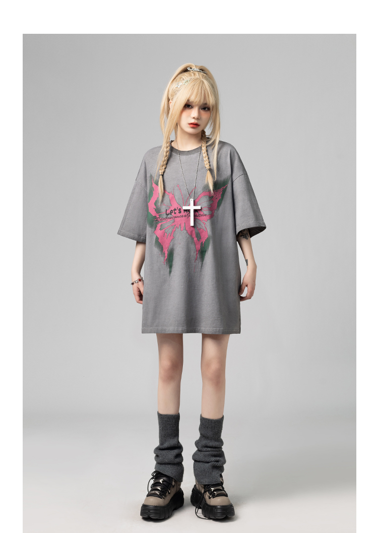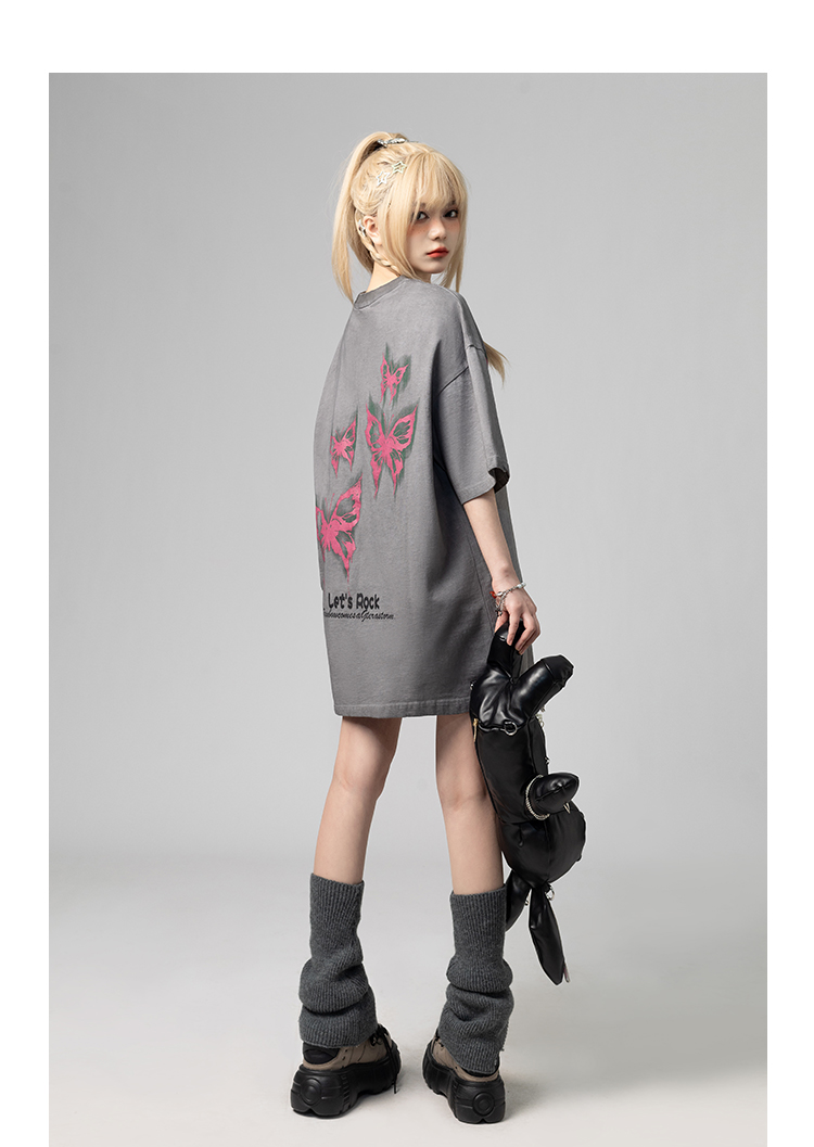 美式復古哥特風蝴蝶印花Chic寬鬆T恤潮流設計感情侶短袖上衣