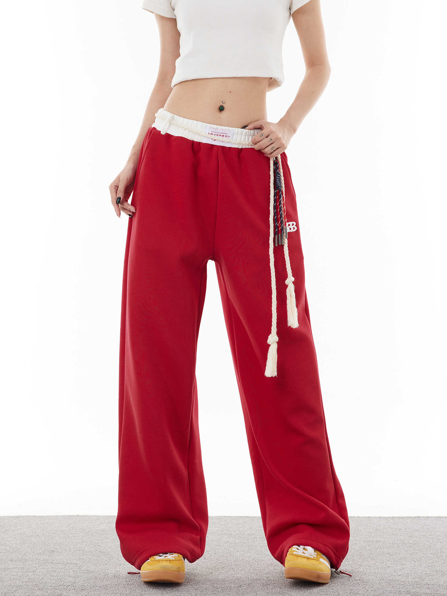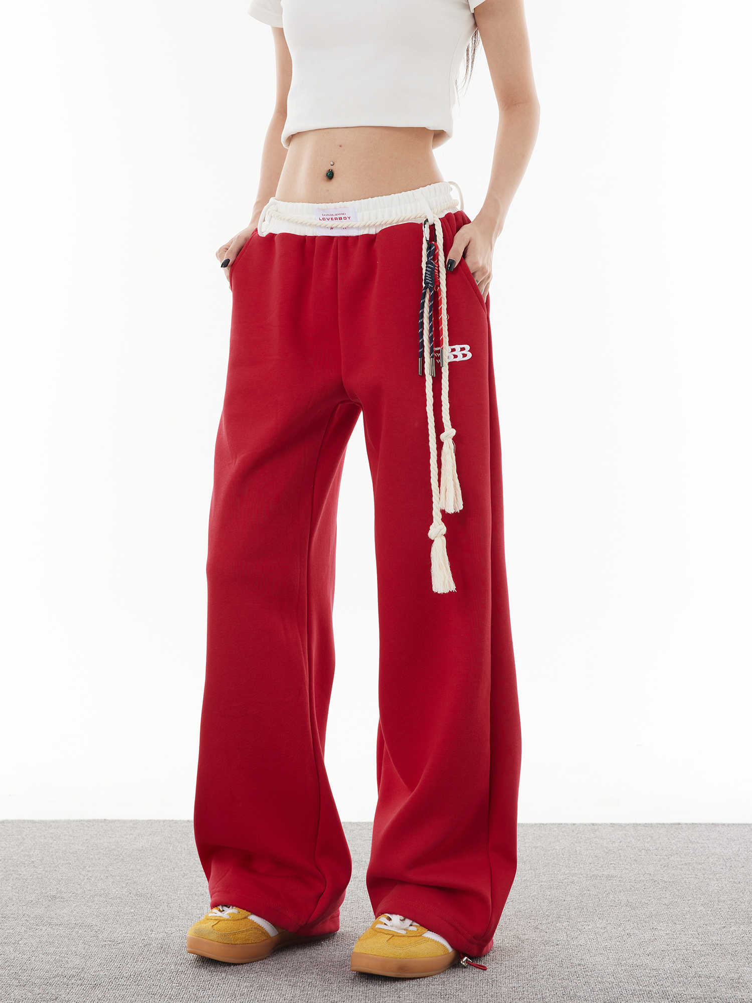 美式復古嘻哈綁帶運動褲寬鬆闊腿衛褲情侶垂感直筒休閒褲