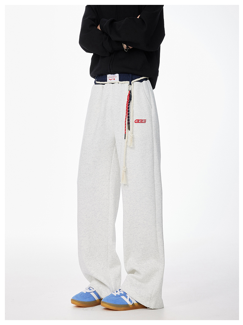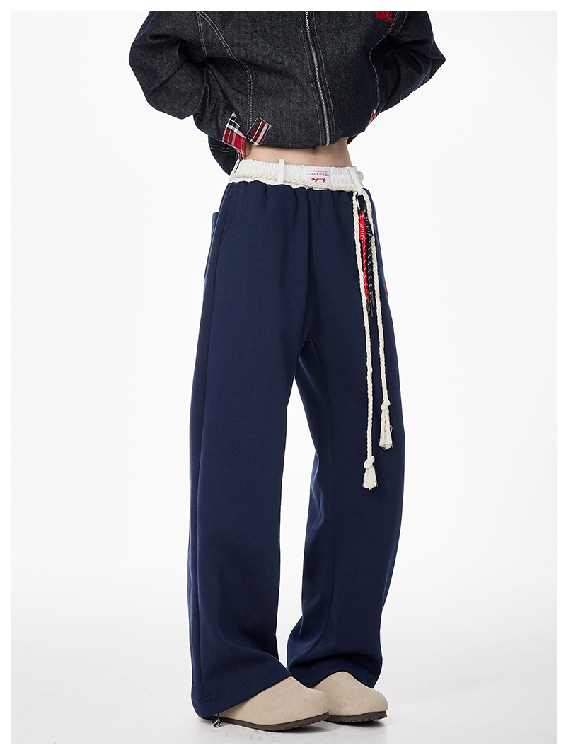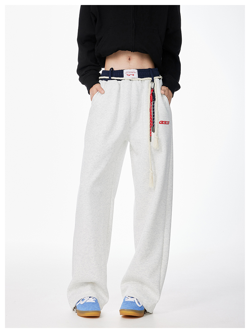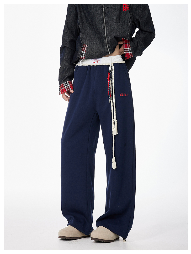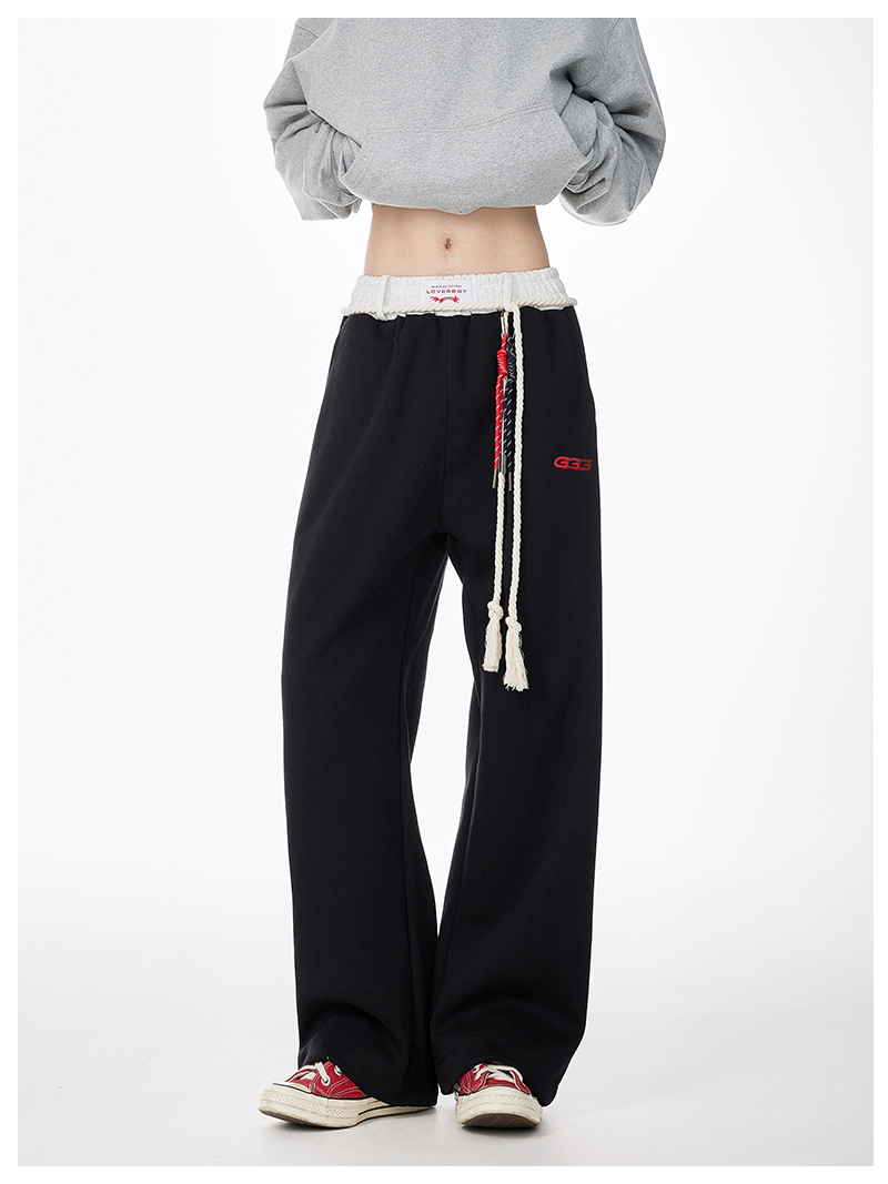 美式復古嘻哈綁帶運動衛褲寬鬆闊腿褲情侶垂感直筒休閒褲