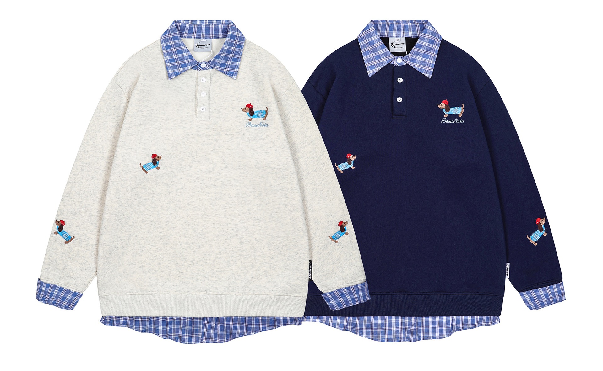 元素: 格紋, 刺繡, 假兩件設計
