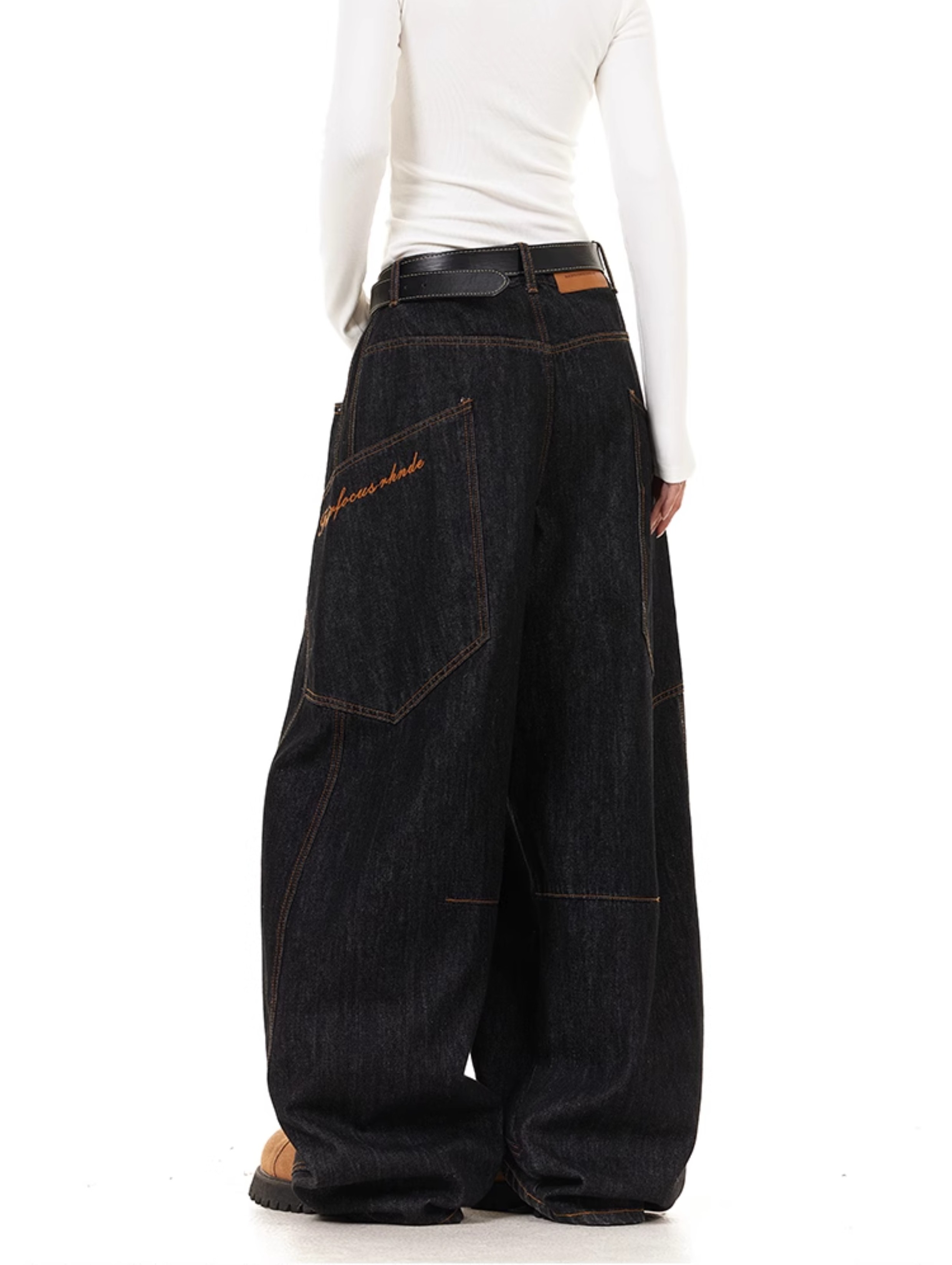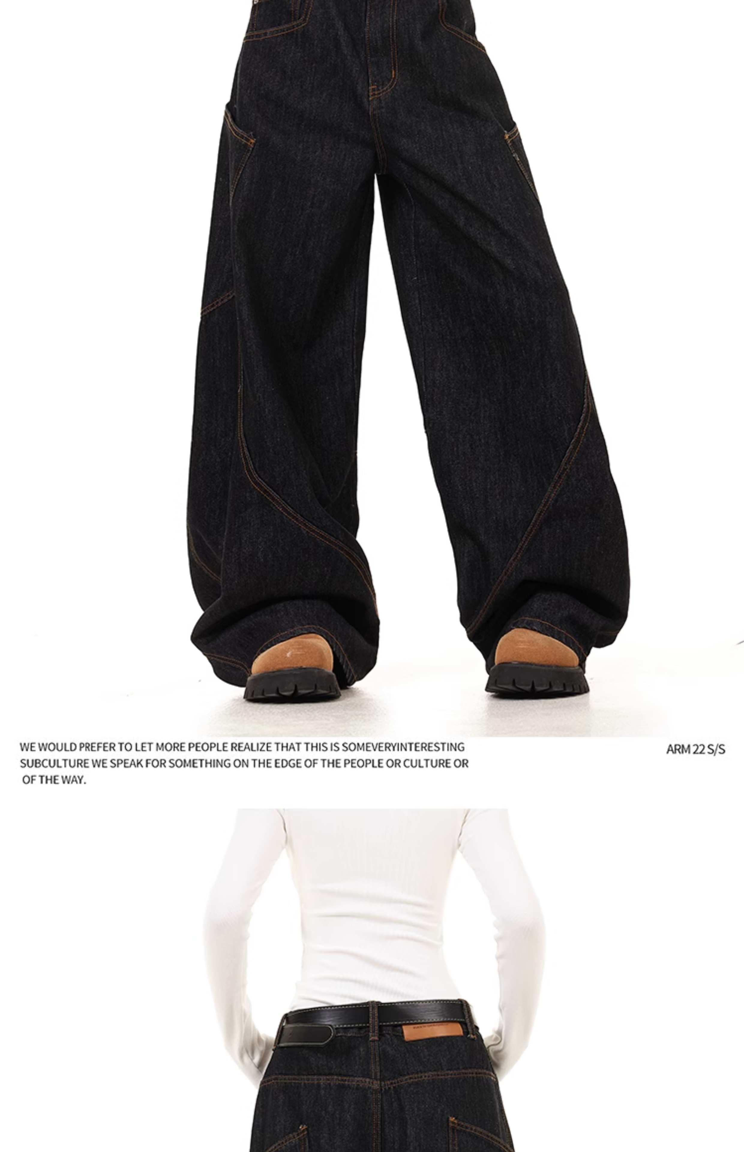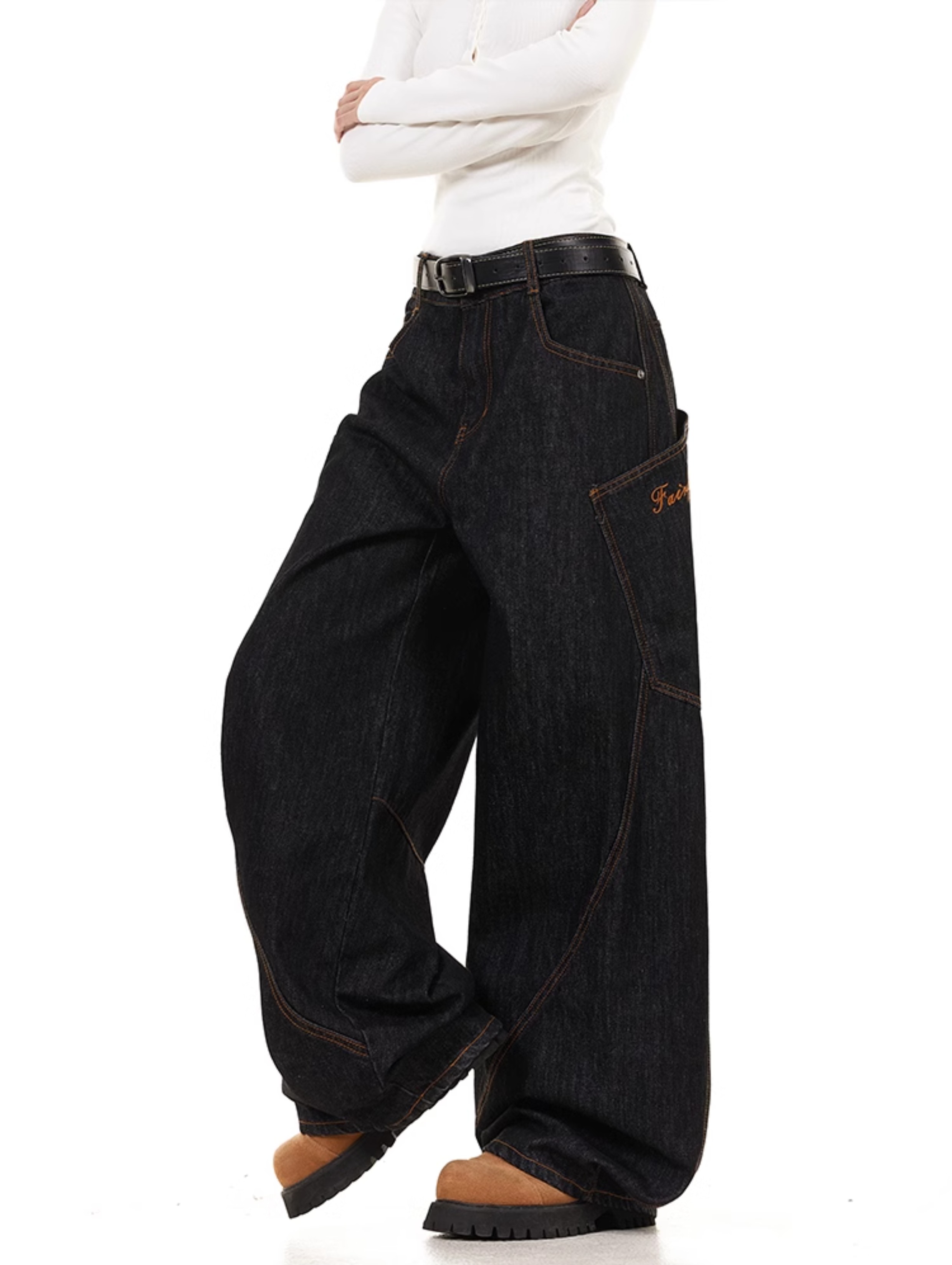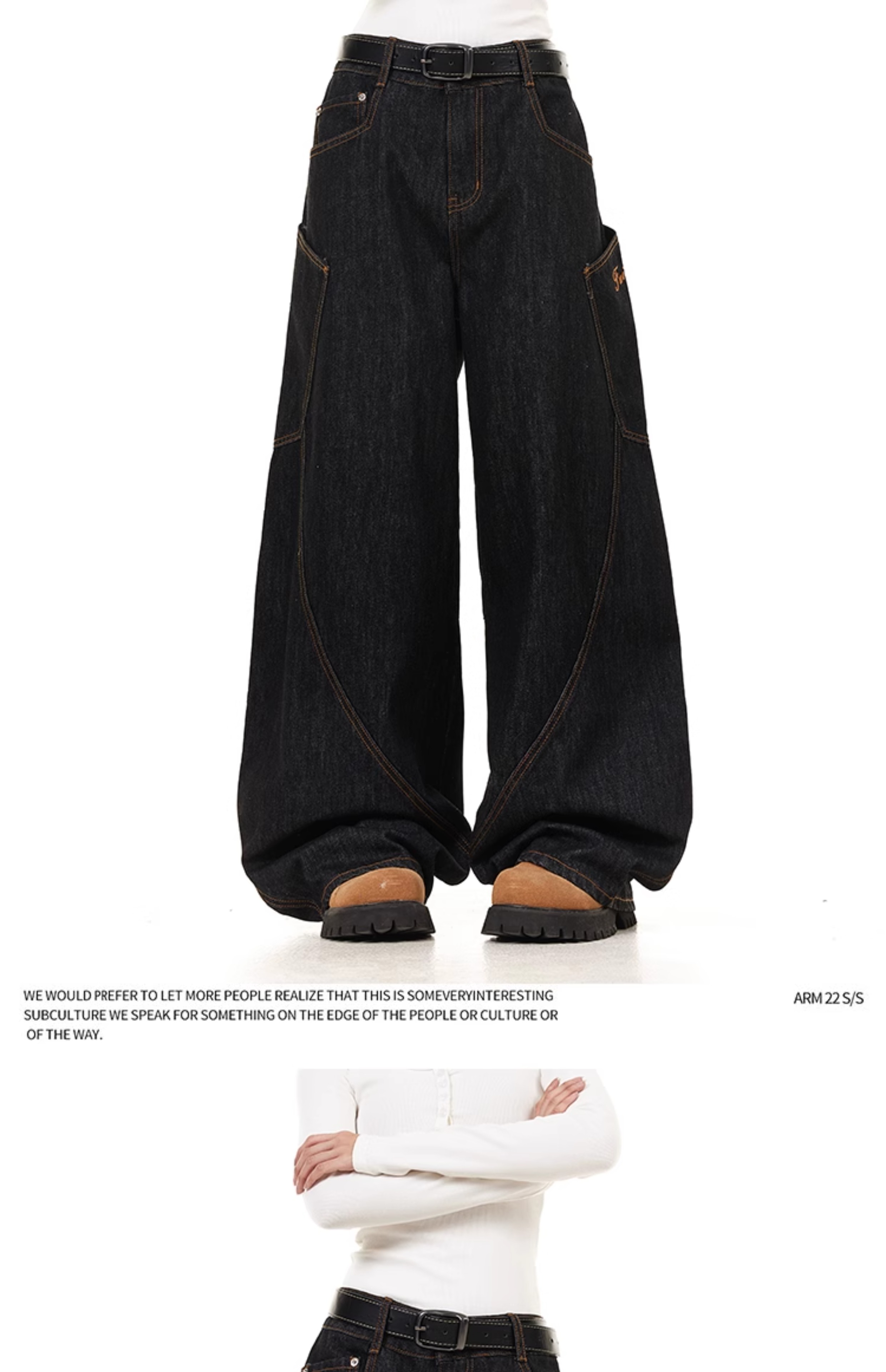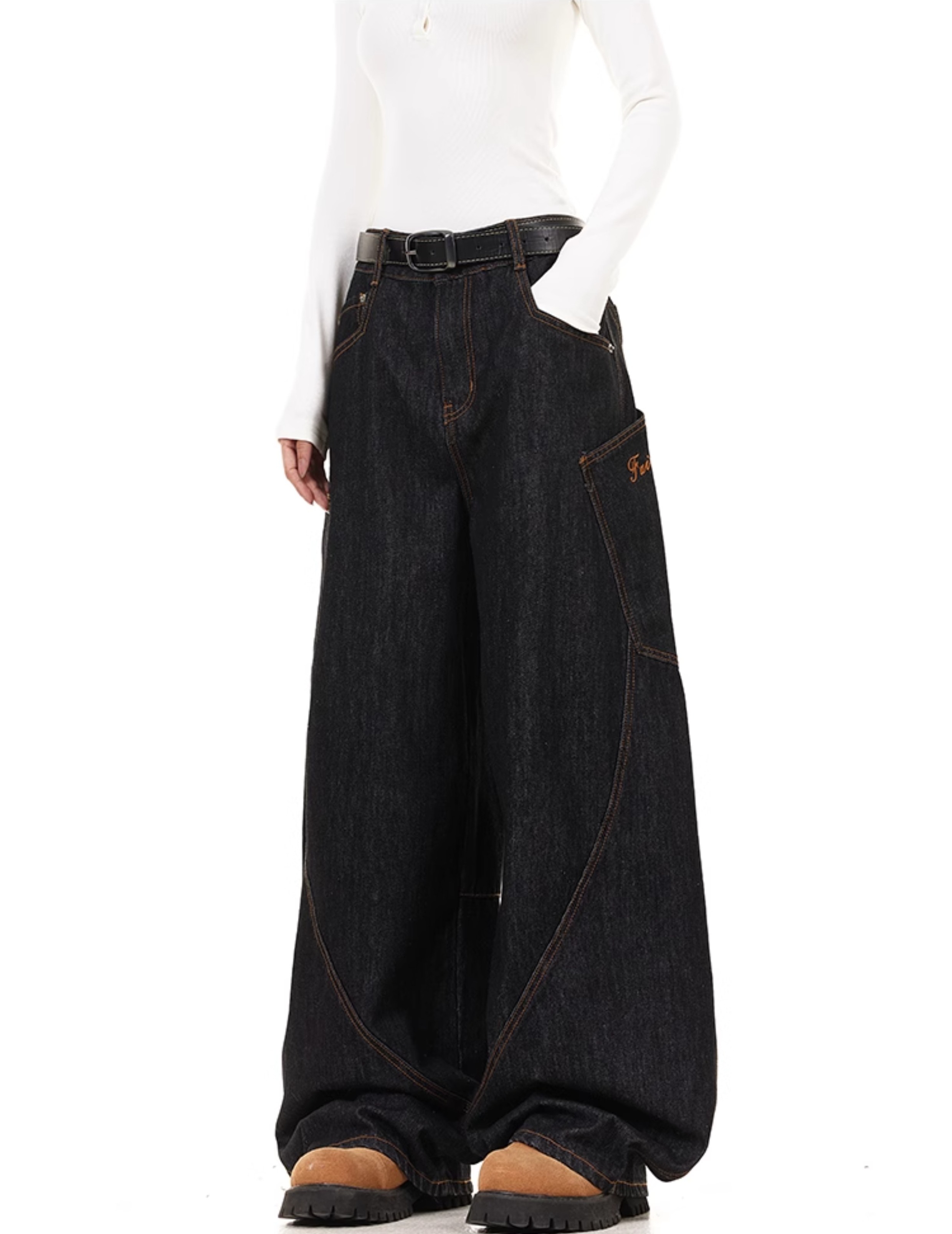 美式街頭潮牌大口袋彎刀牛仔褲小眾設計感辣妹拖地長褲