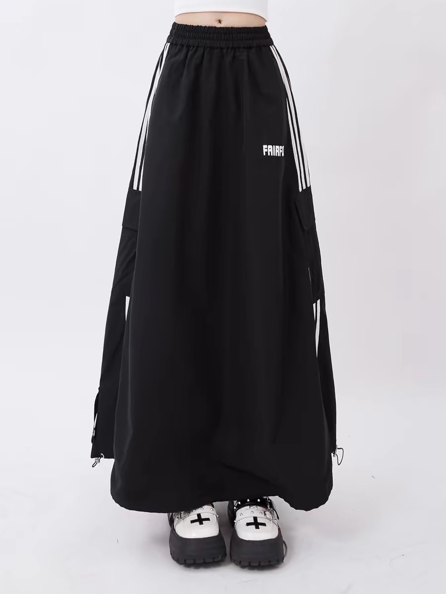 美式復古高街開叉半身裙ins寬鬆休閒百搭工裝裙設計感A字裙