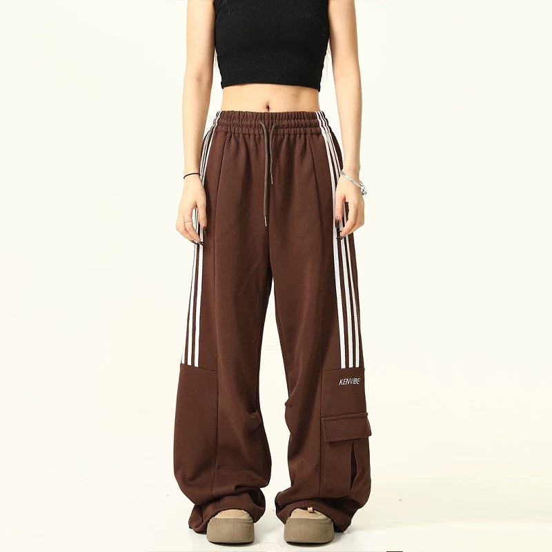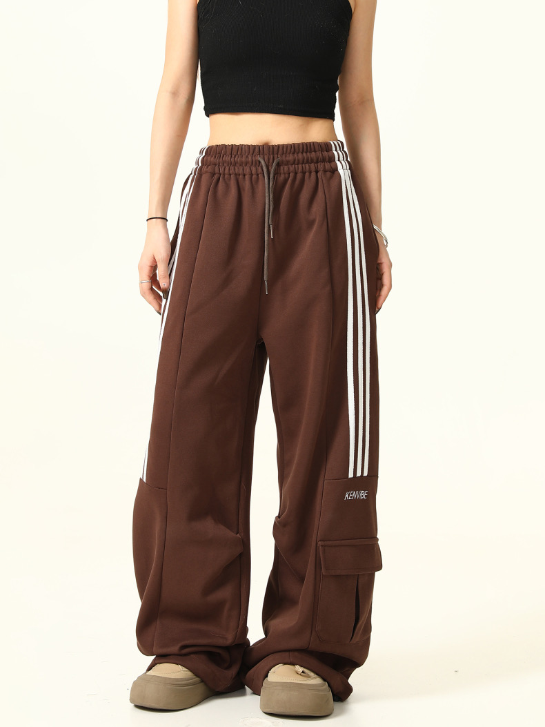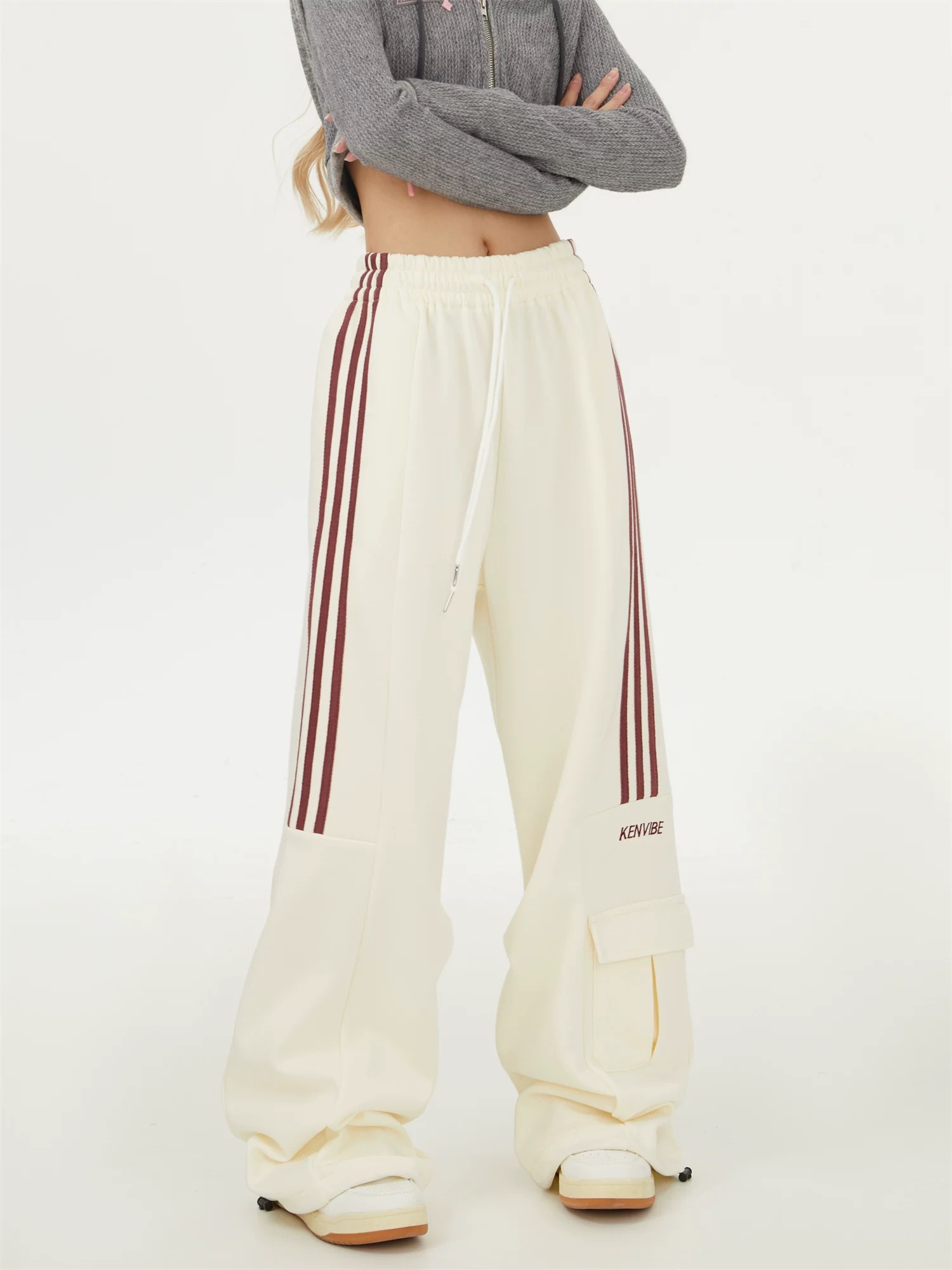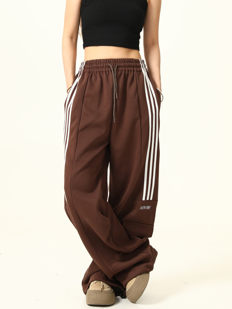 美式復古三條槓運動休閒褲寬鬆闊腿工裝褲情侶垂感直筒褲