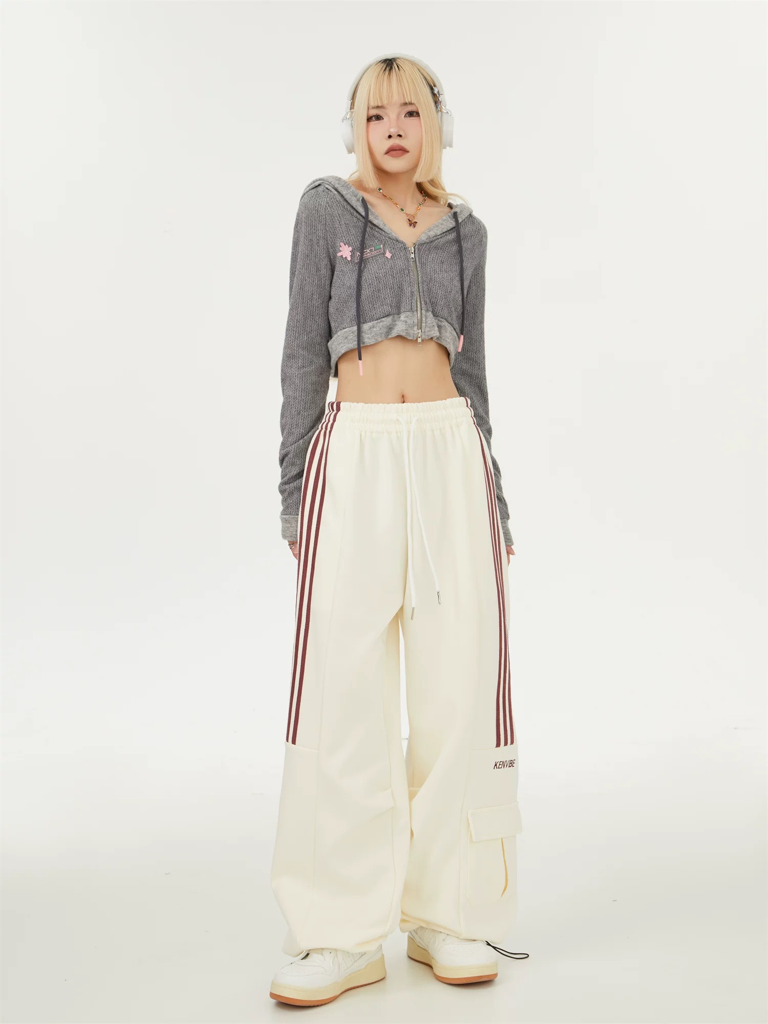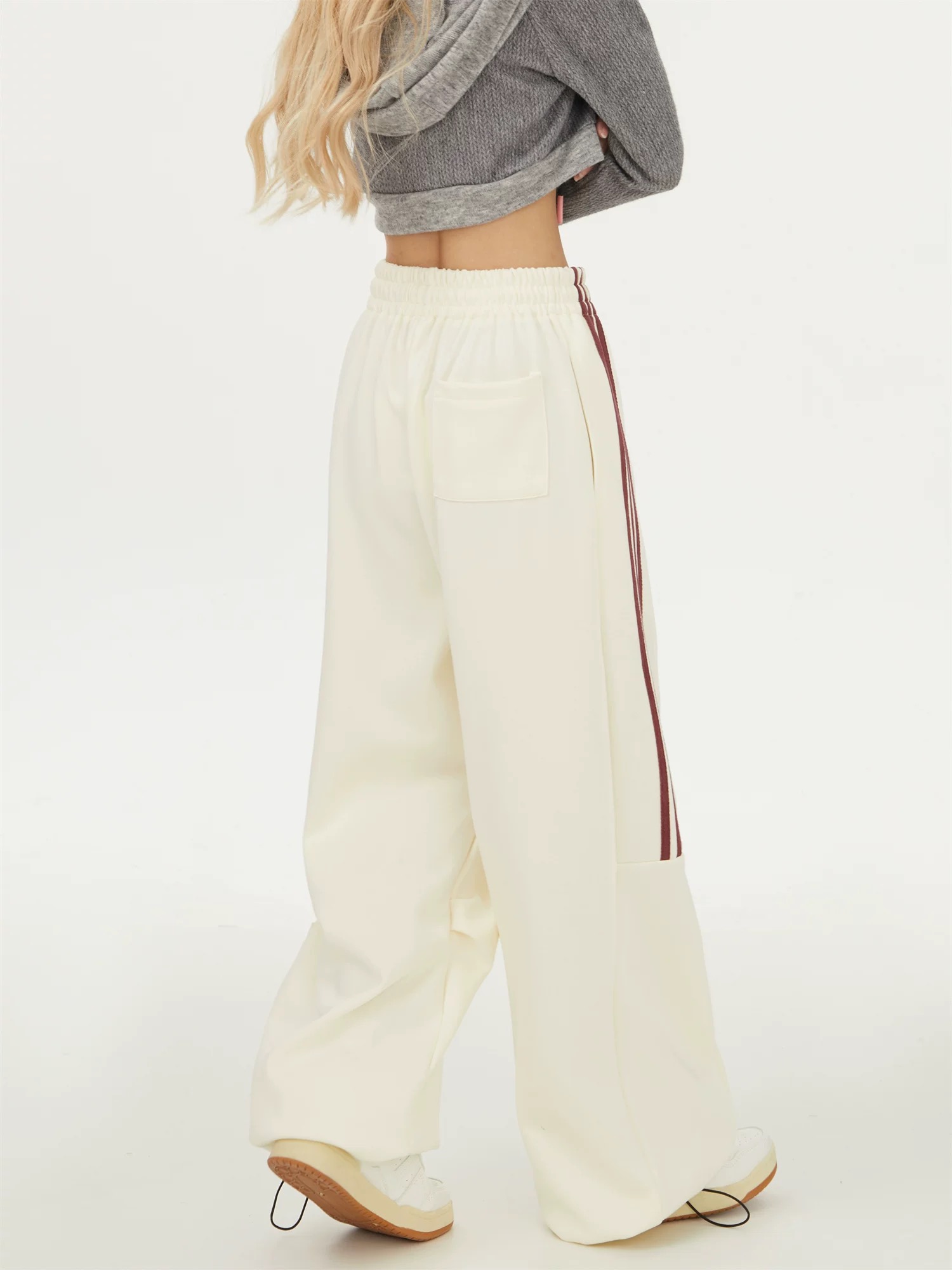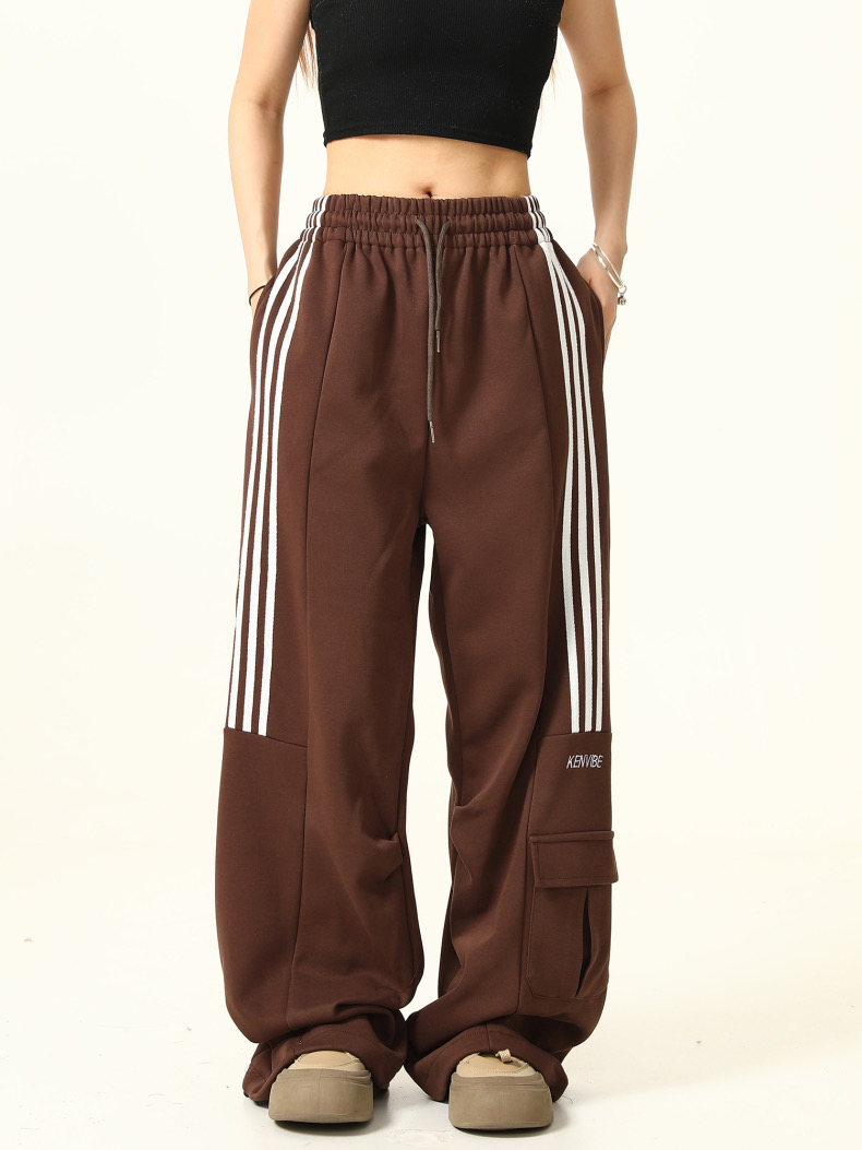 美式復古三條槓運動休閒褲寬鬆闊腿工裝褲情侶垂感直筒褲