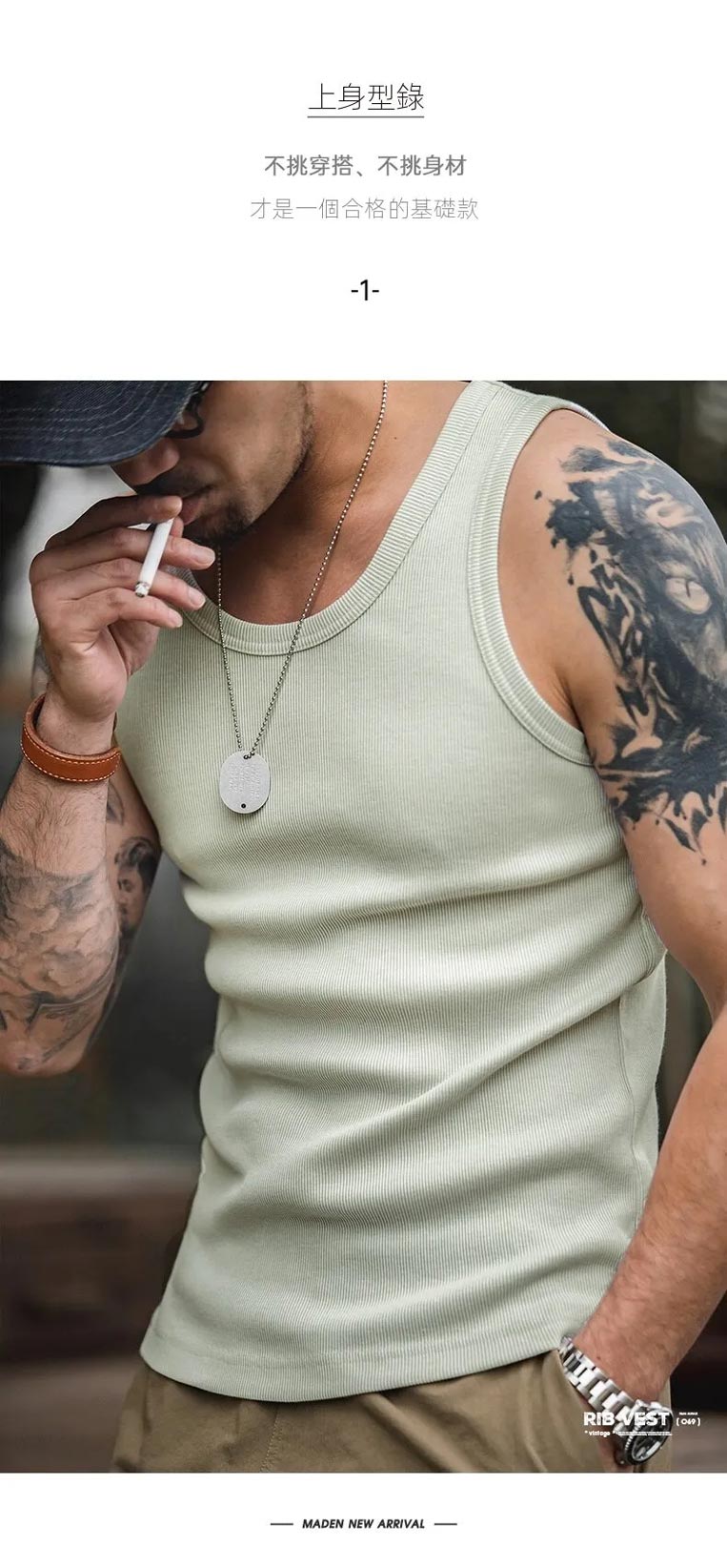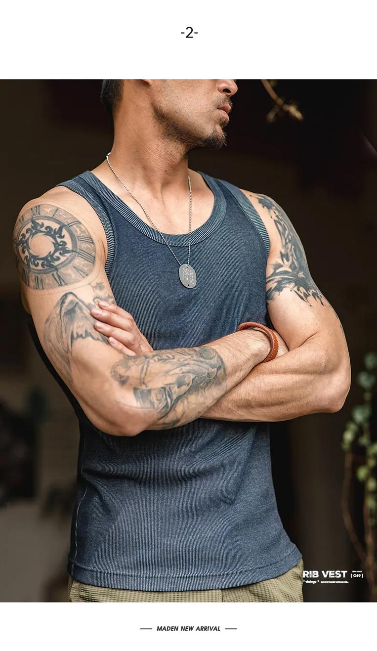 馬登工裝 復古純色修身無袖棉肌肉背心T卹運動健身戶外內穿打底衫