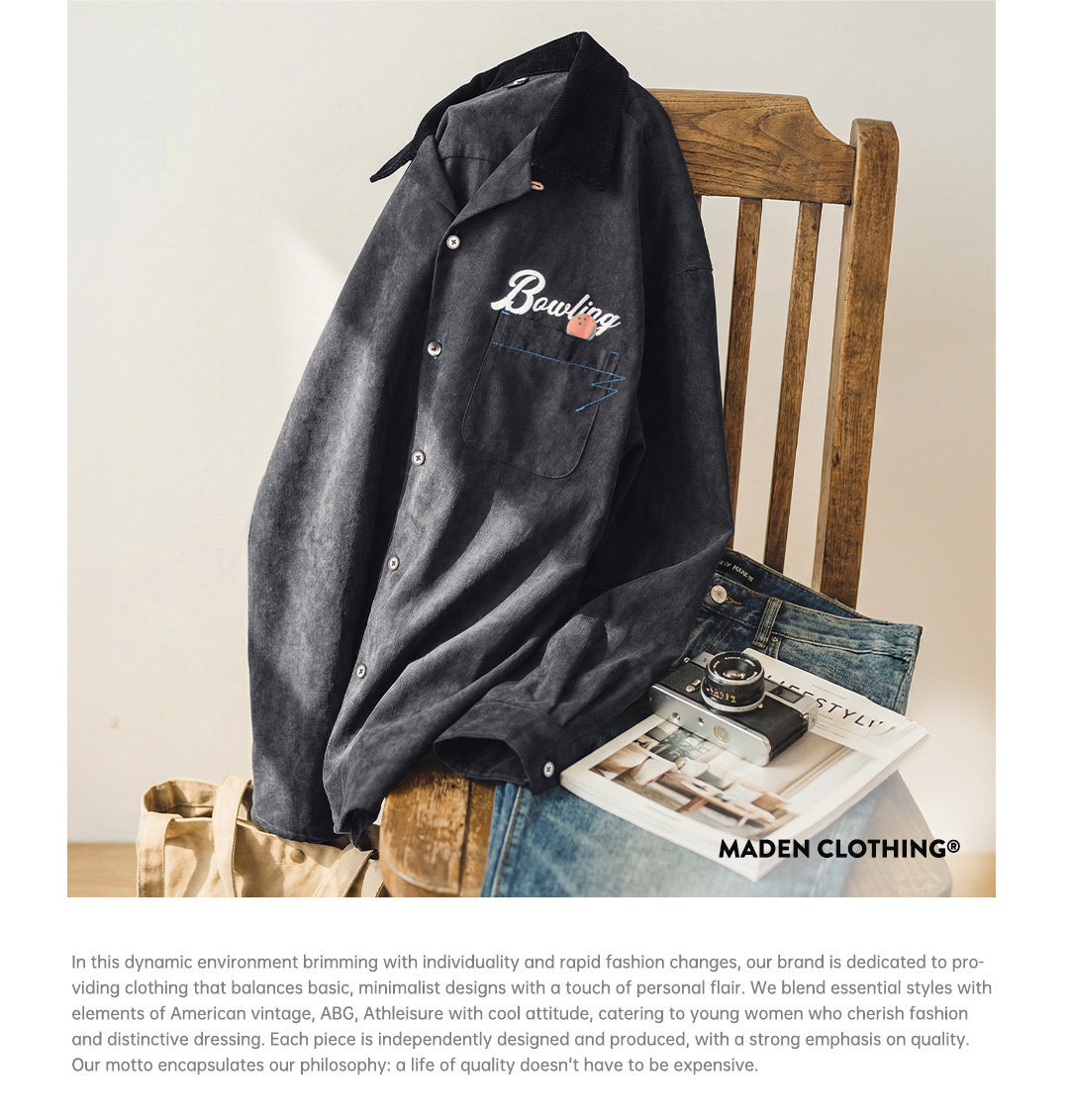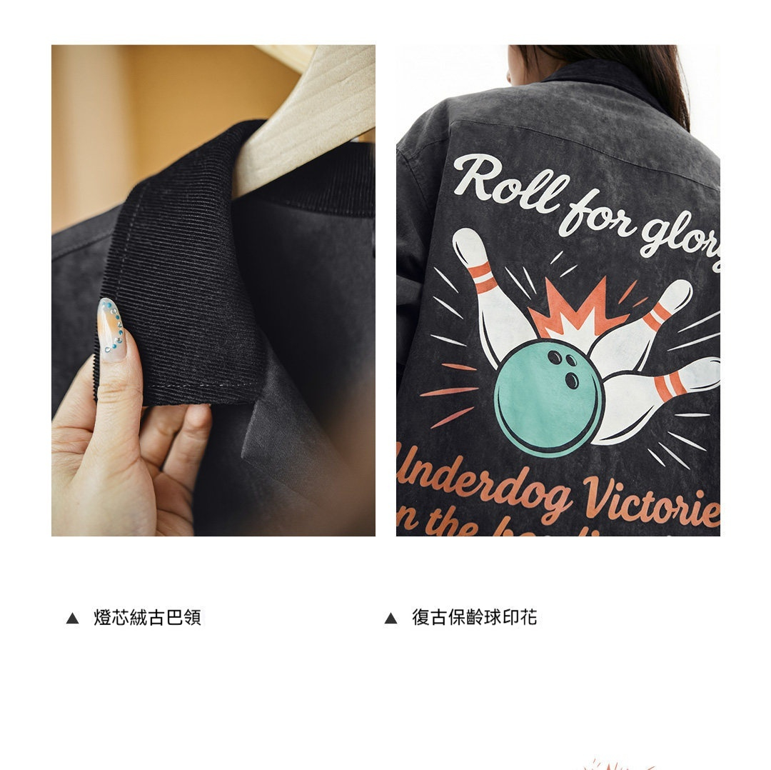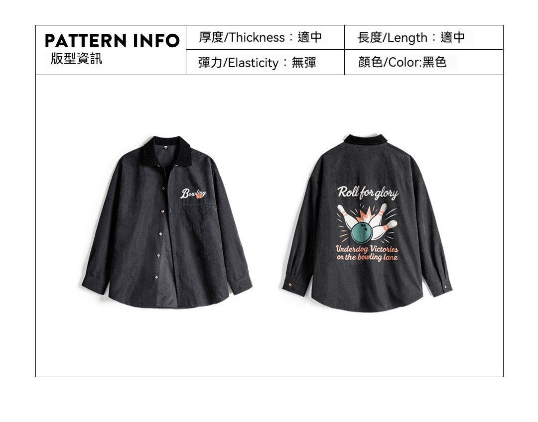 馬登女裝 黑色復古桃皮絨古巴領襯衫印花外套長袖襯衣內搭疊穿女士春